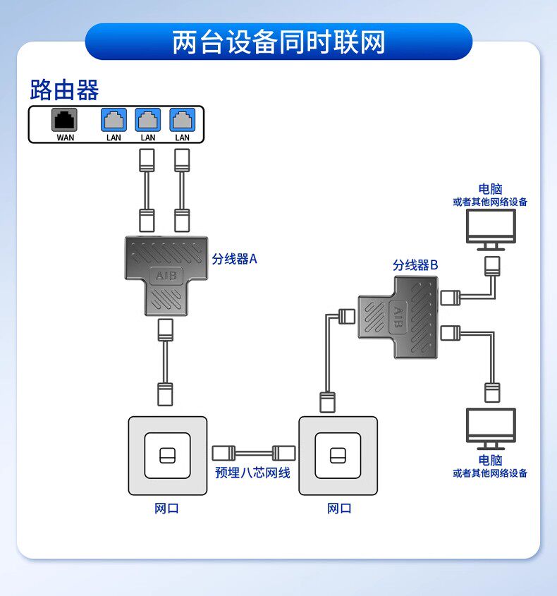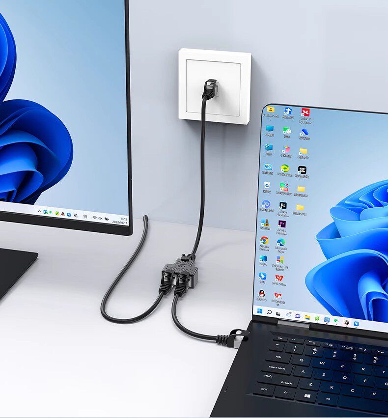Rj45 Converter Connector Network Splitter, Network Cable Splitter, One-To-Two Connector, Simultaneous Connection to the Internet, Network Cable Adapter, One-To-Two, One-To-Four Extender, Multi-Interface Network Splitter Box