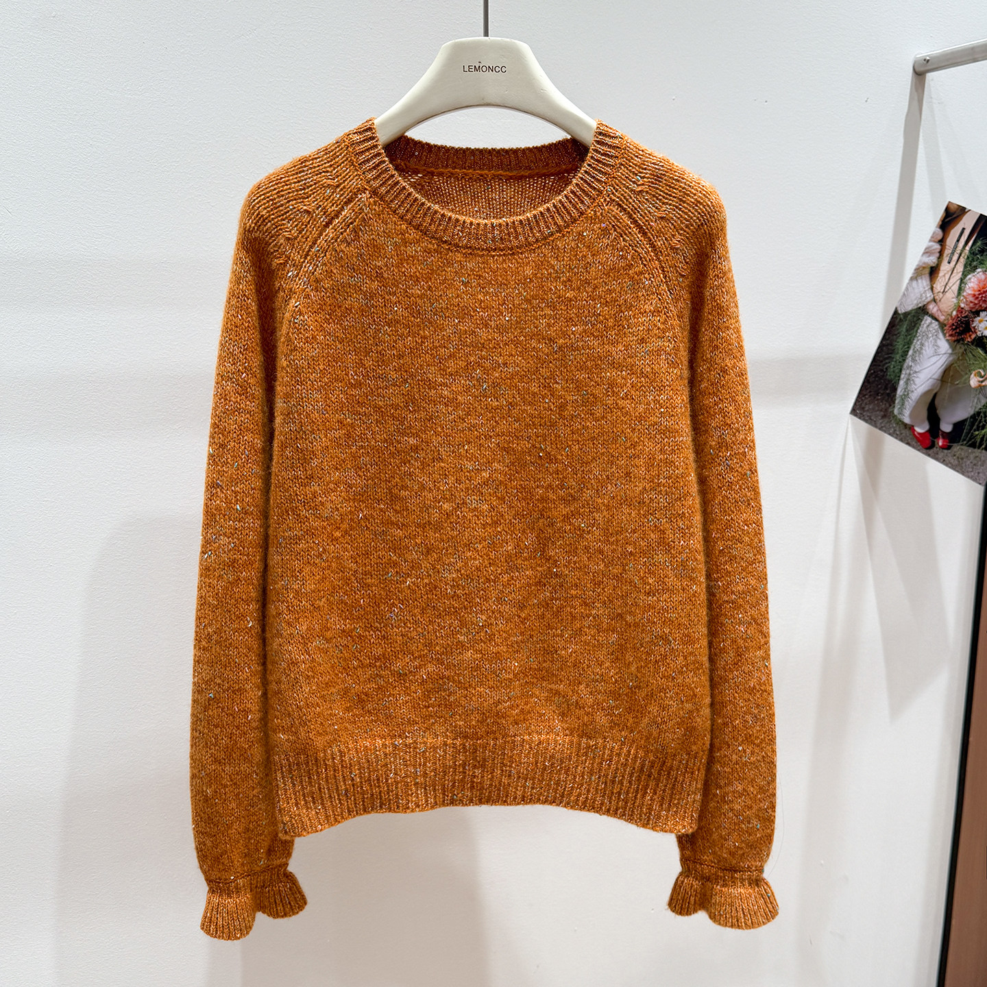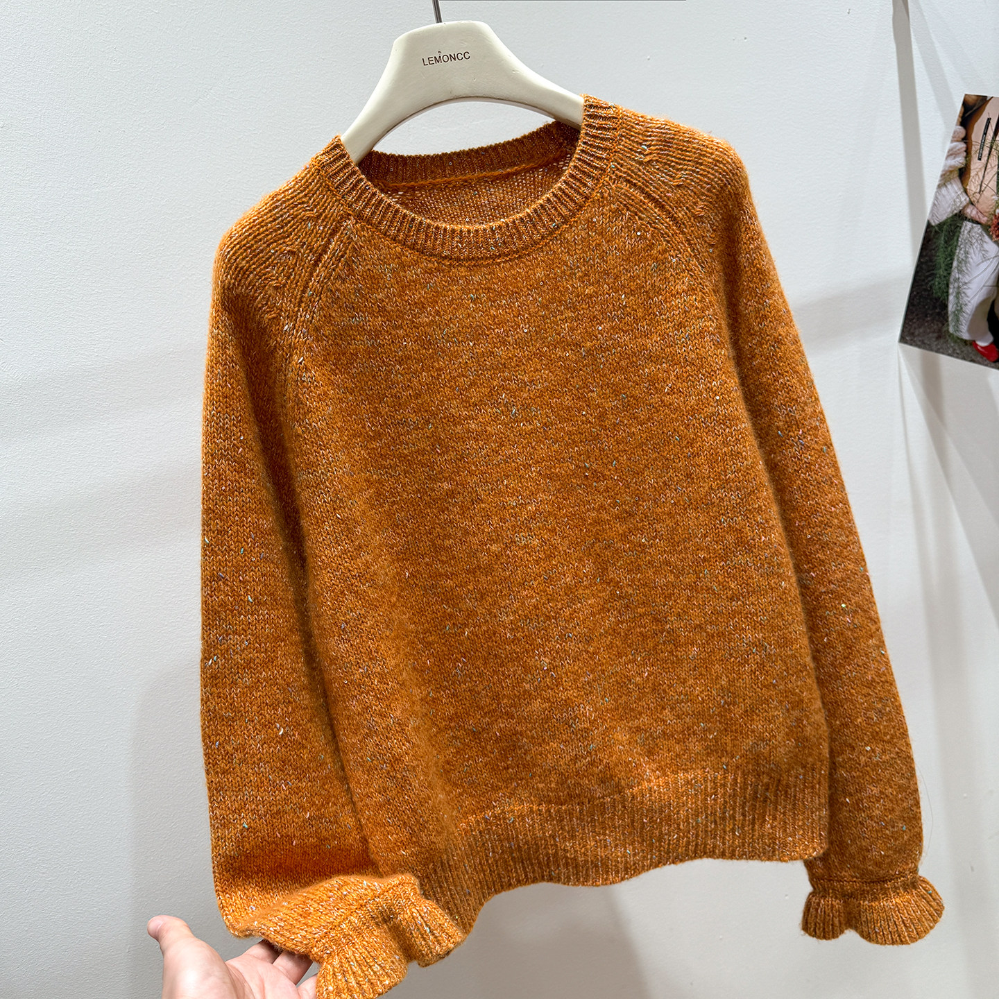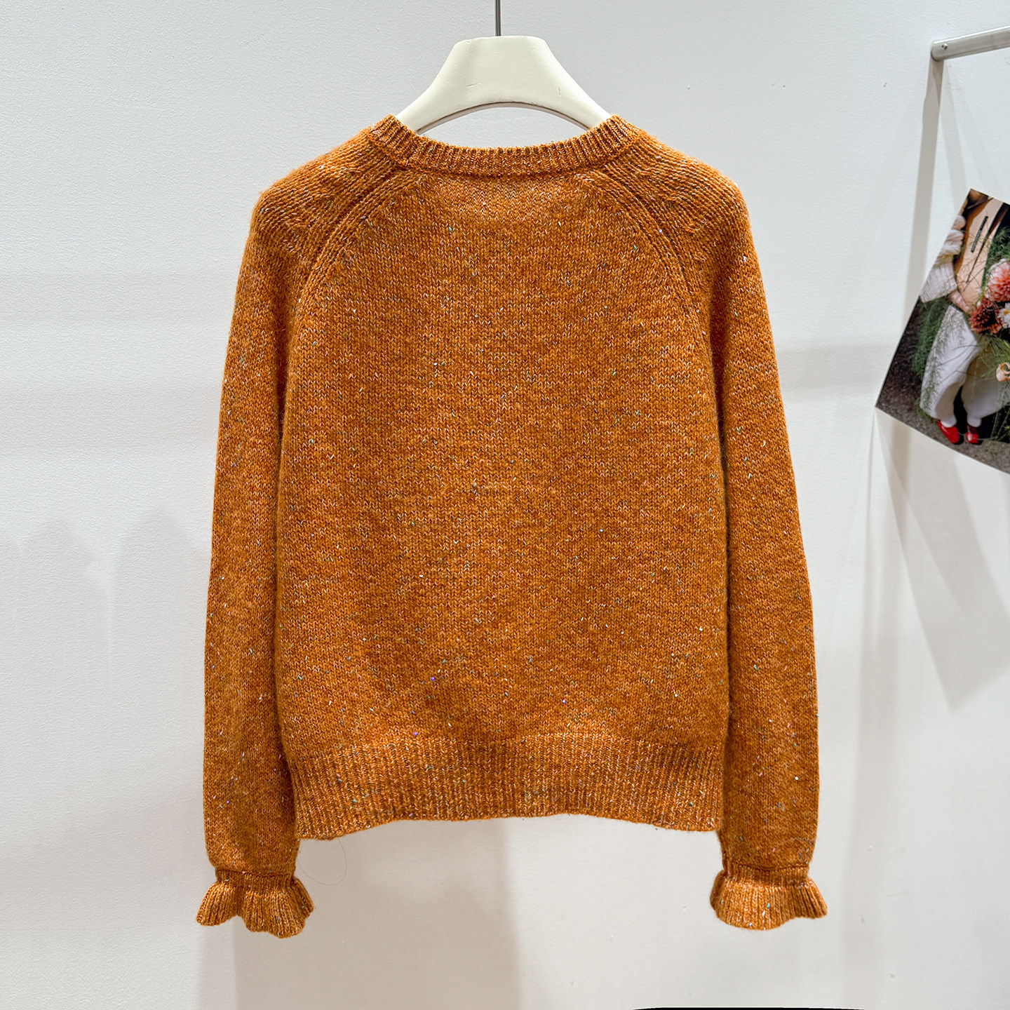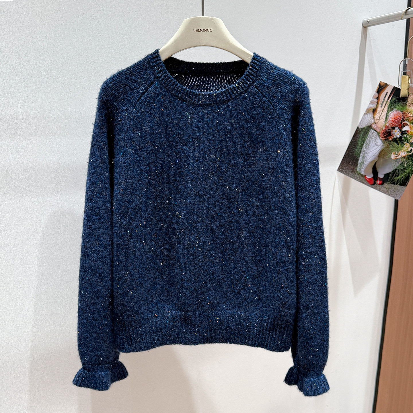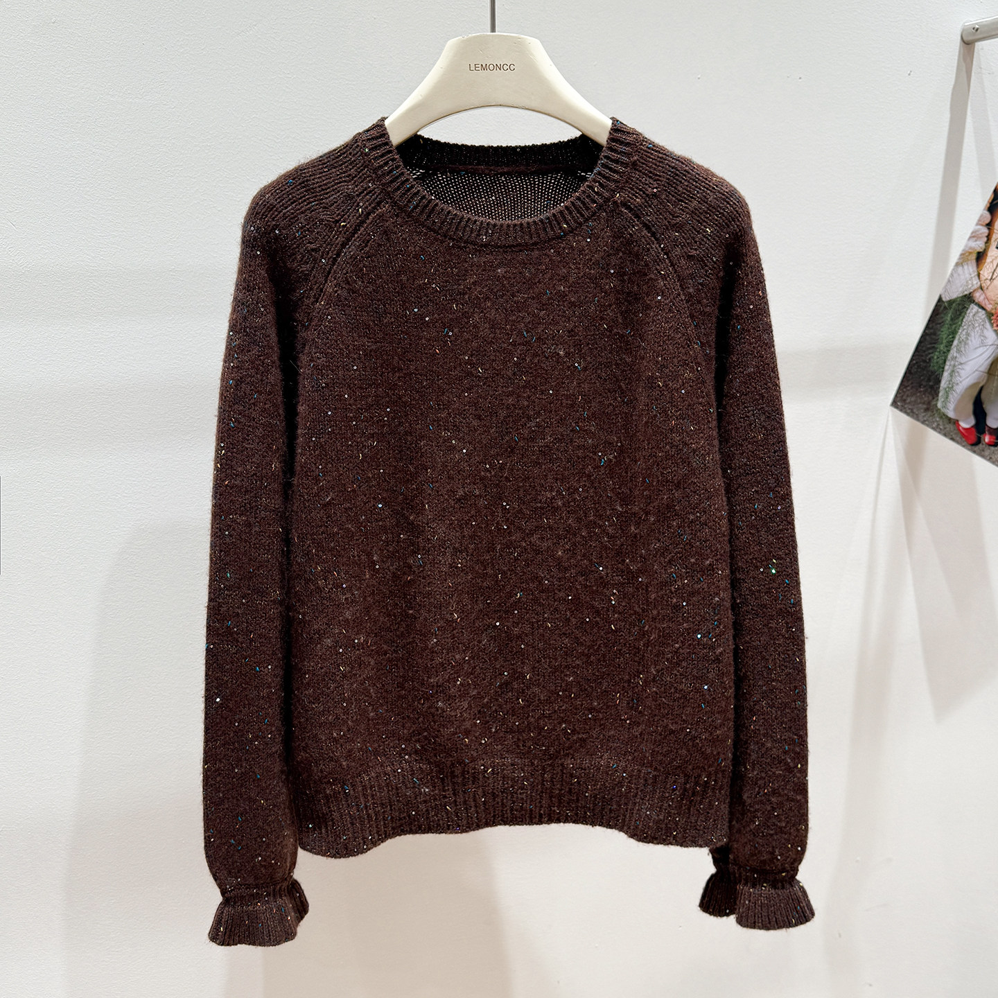 Korean-Style Winter Round-Neck Raglan Sleeve "Sequin Floral Yarn" Ruffle Sleeve Gentle and Elegant Honey Bear Velvet Women's Knitted Pullover