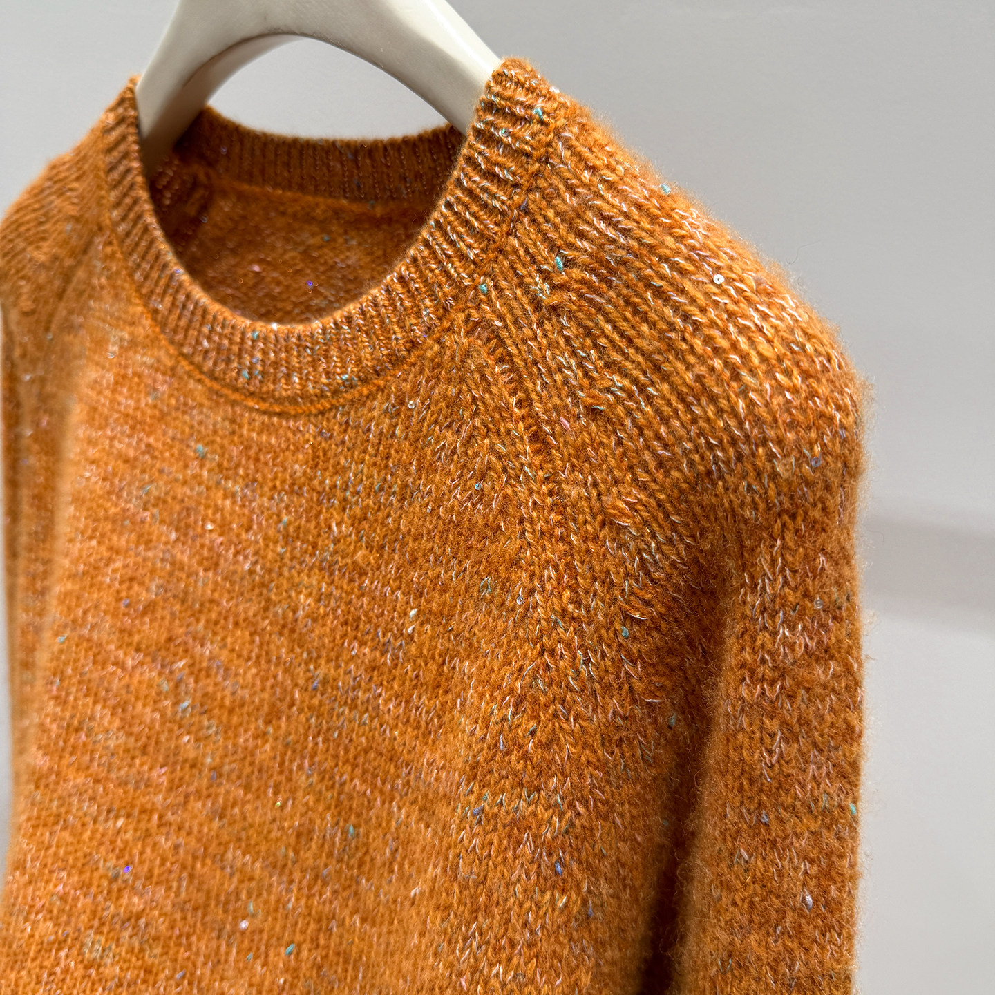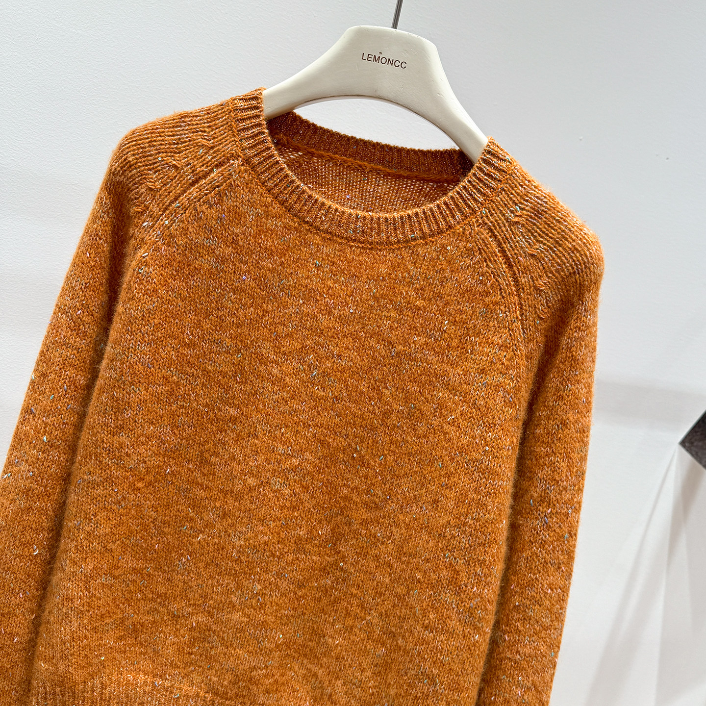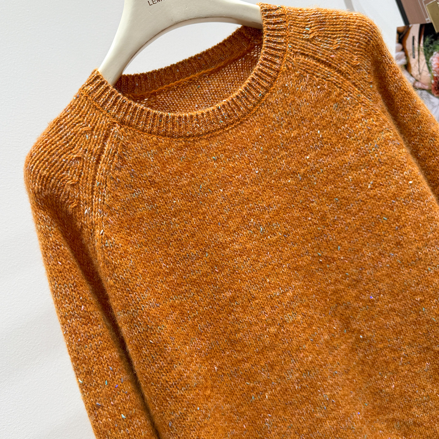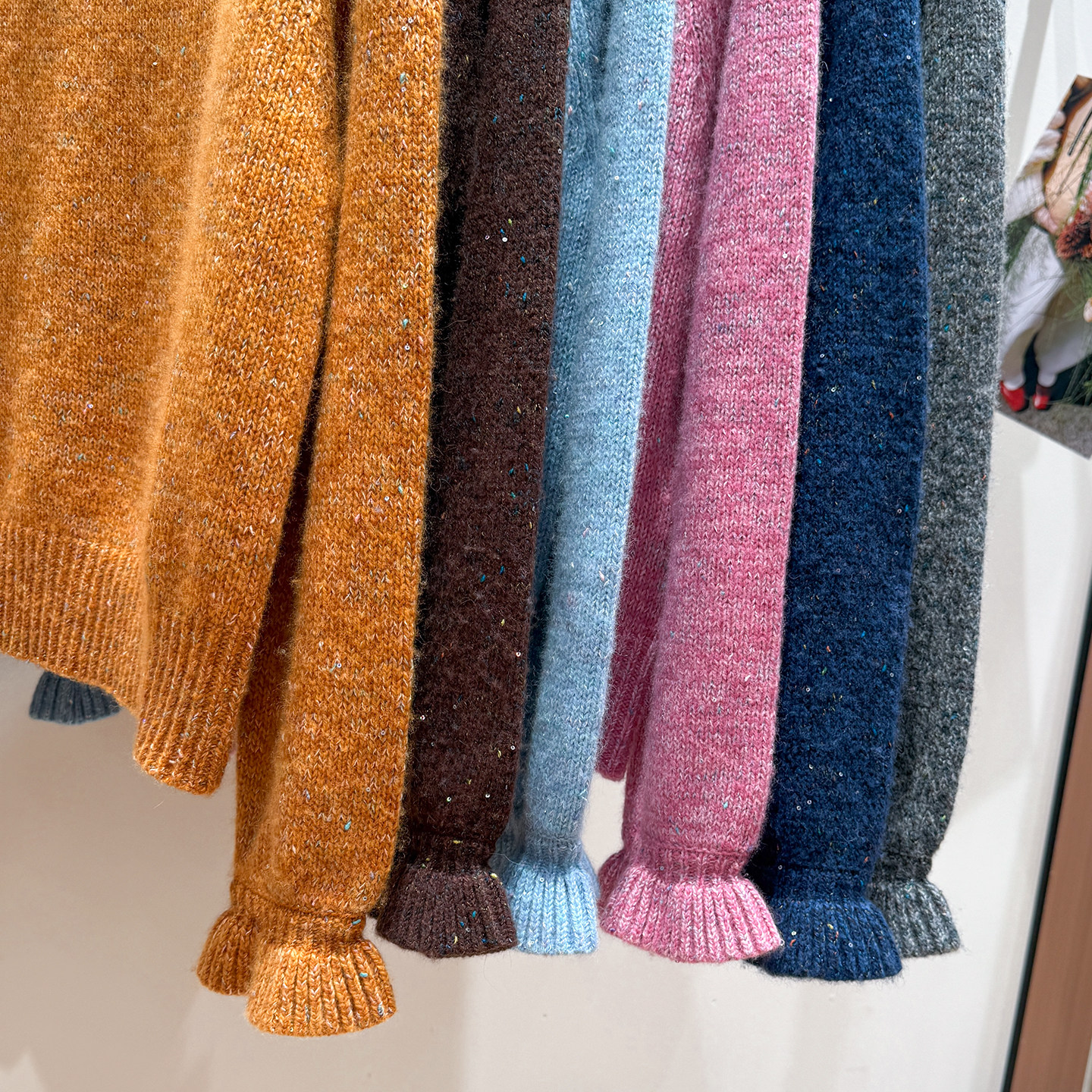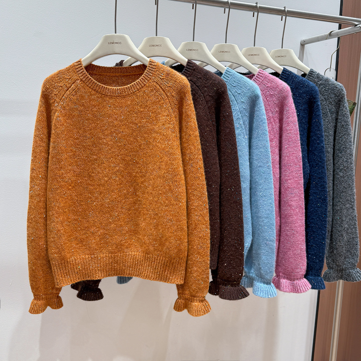 Korean-Style Winter Round-Neck Raglan Sleeve "Sequin Floral Yarn" Ruffle Sleeve Gentle and Elegant Honey Bear Velvet Women's Knitted Pullover