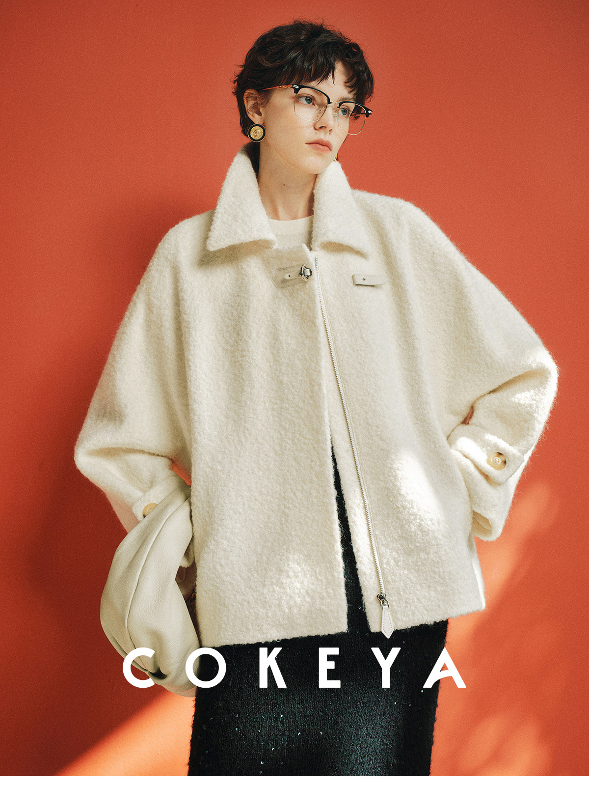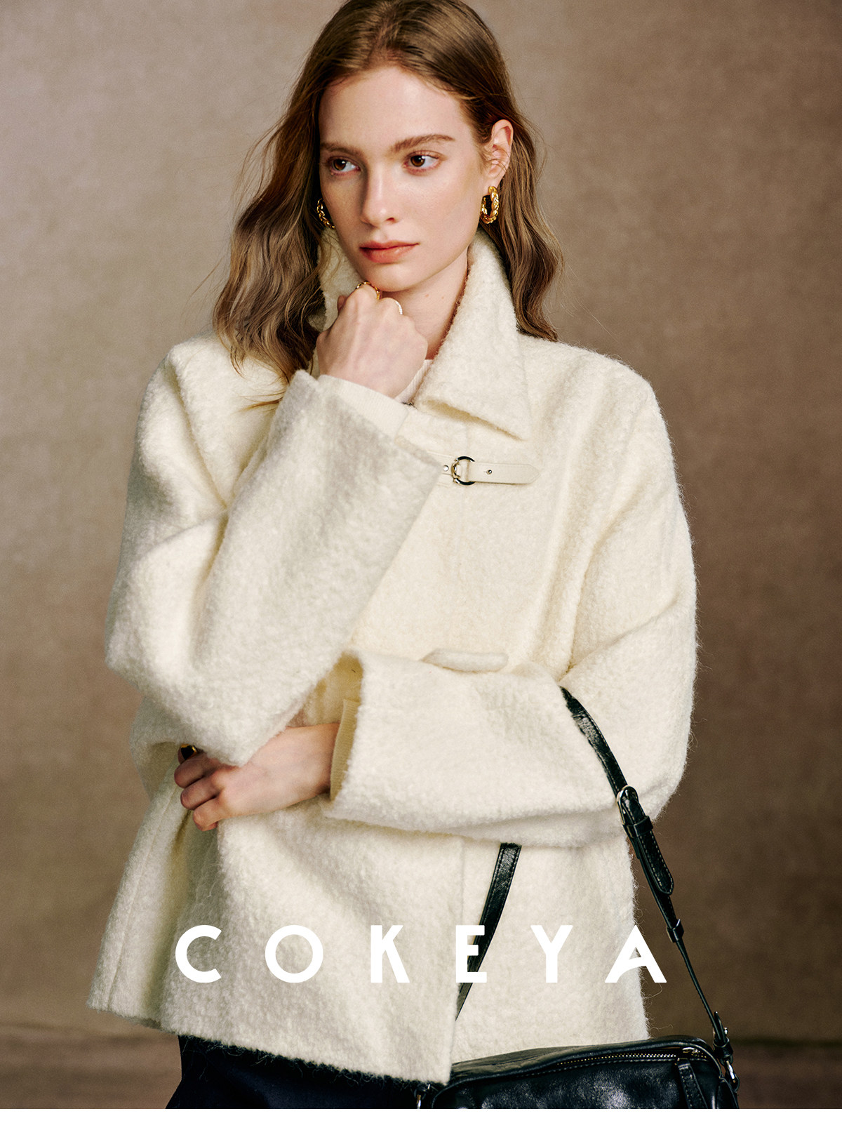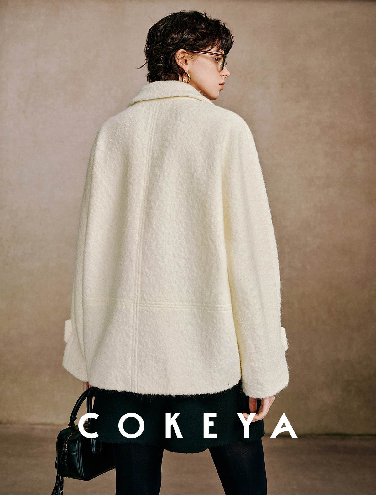 Cokeya/Cangshan Muxue~ White Alpaca Wool Lapel Short Jacket Woolen Coat Women's Winter