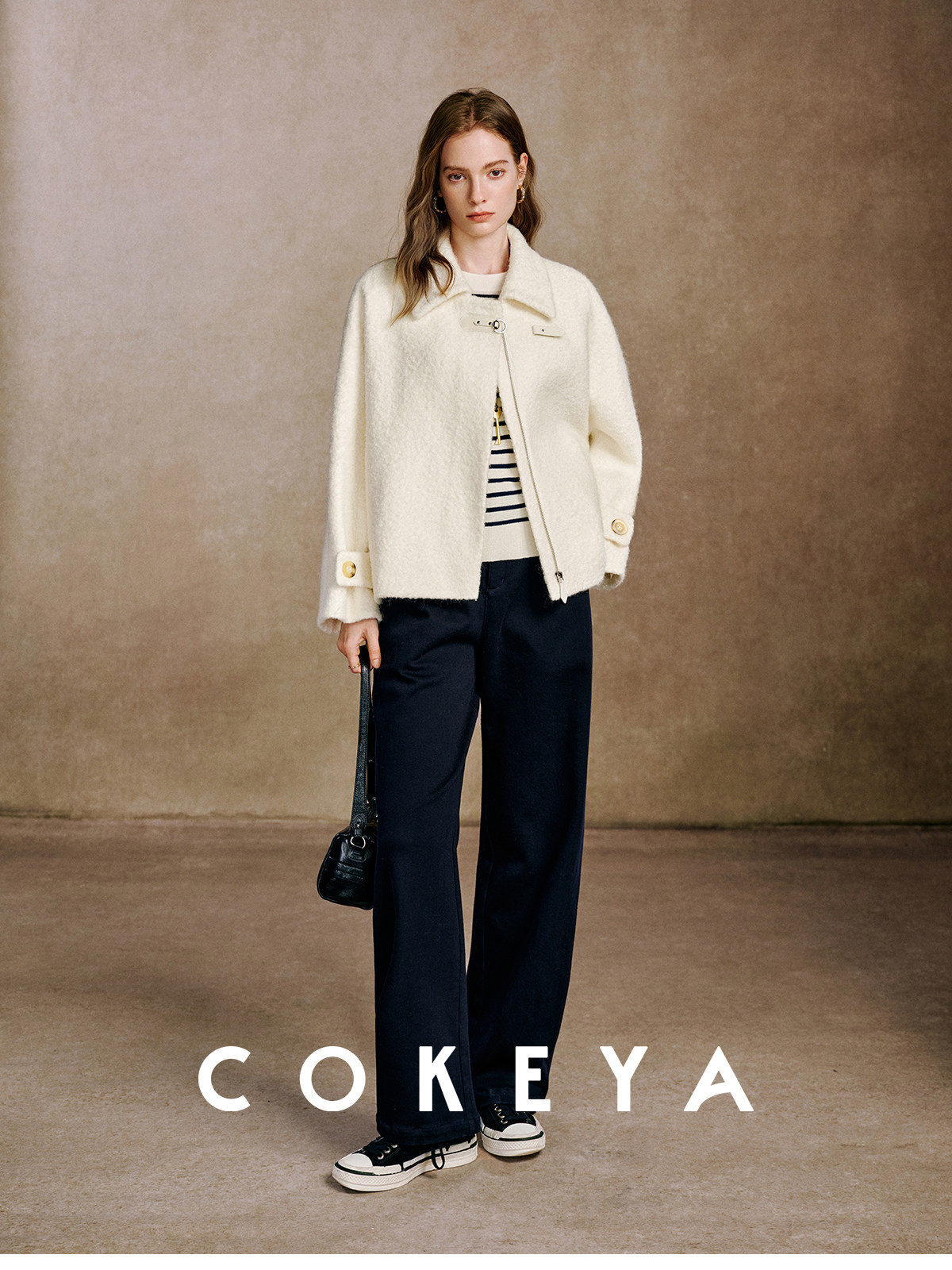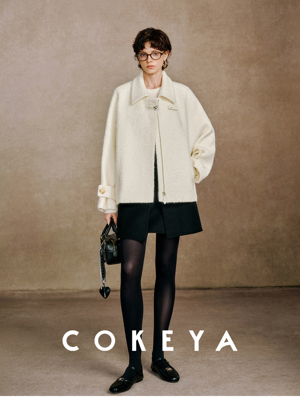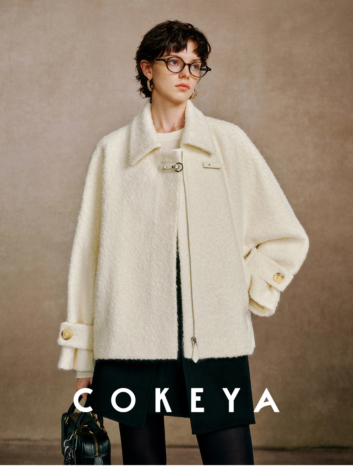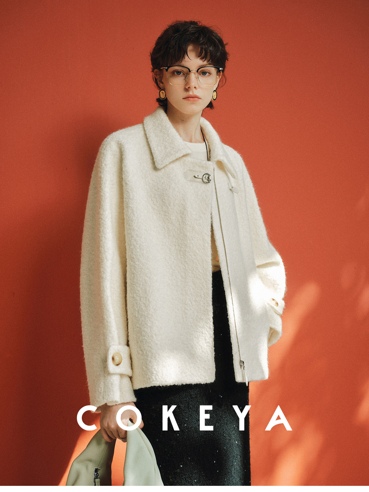 Cokeya/Cangshan Muxue~ White Alpaca Wool Lapel Short Jacket Woolen Coat Women's Winter