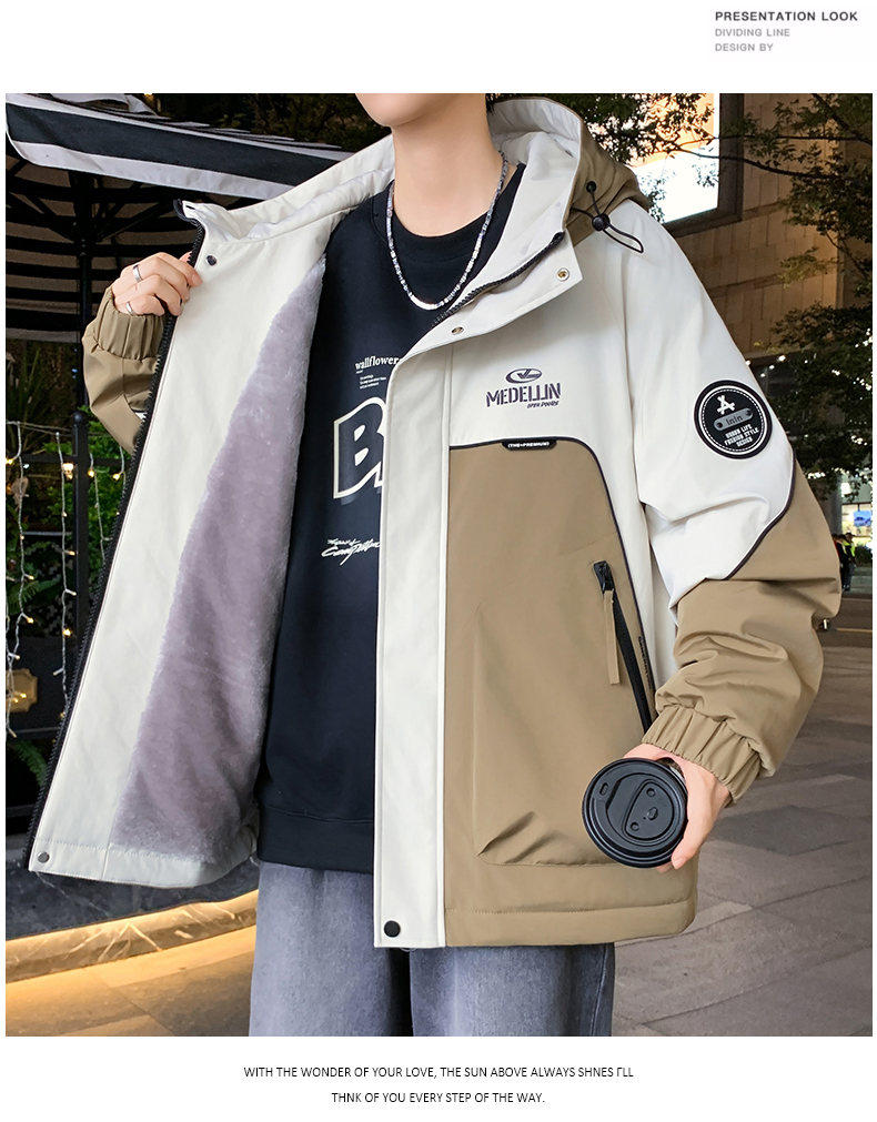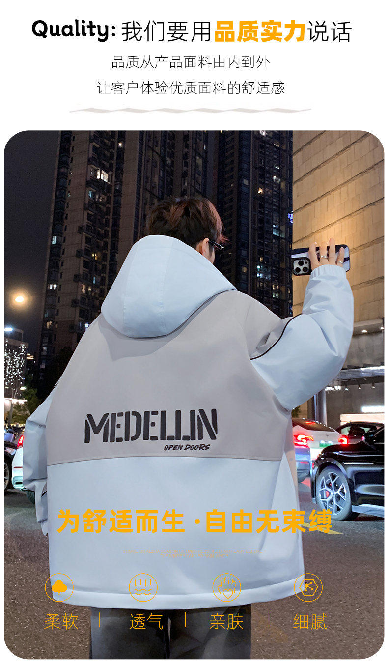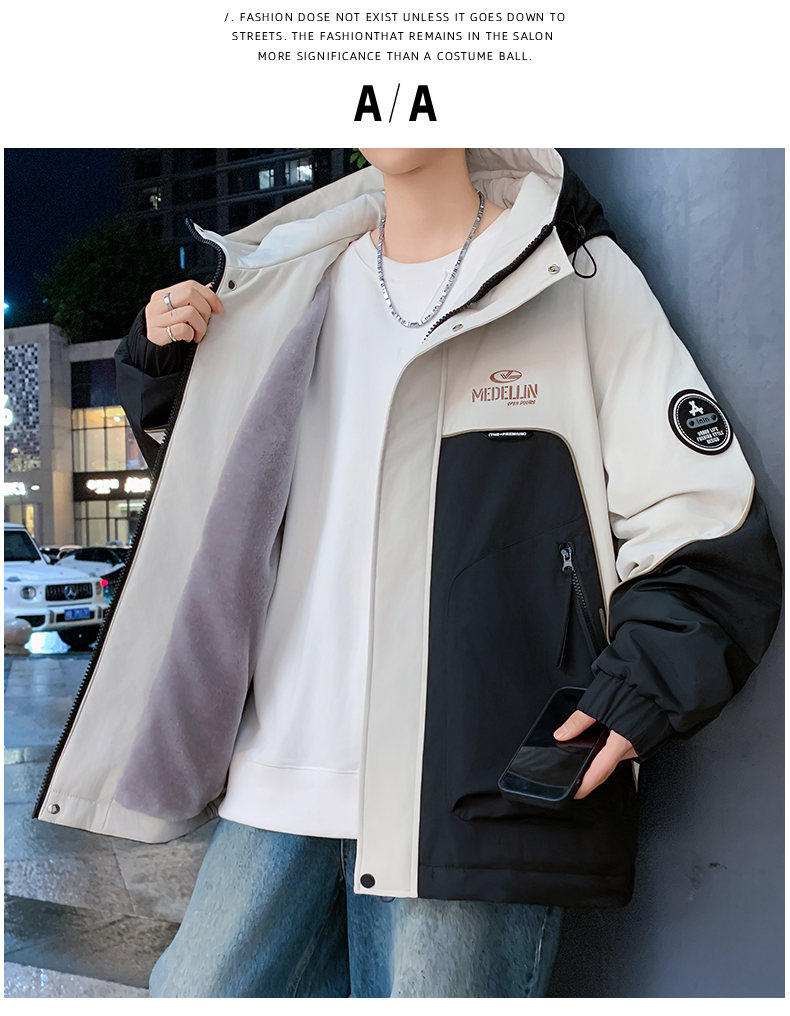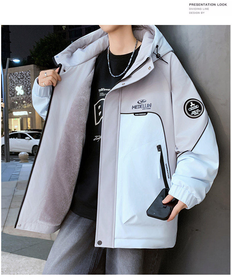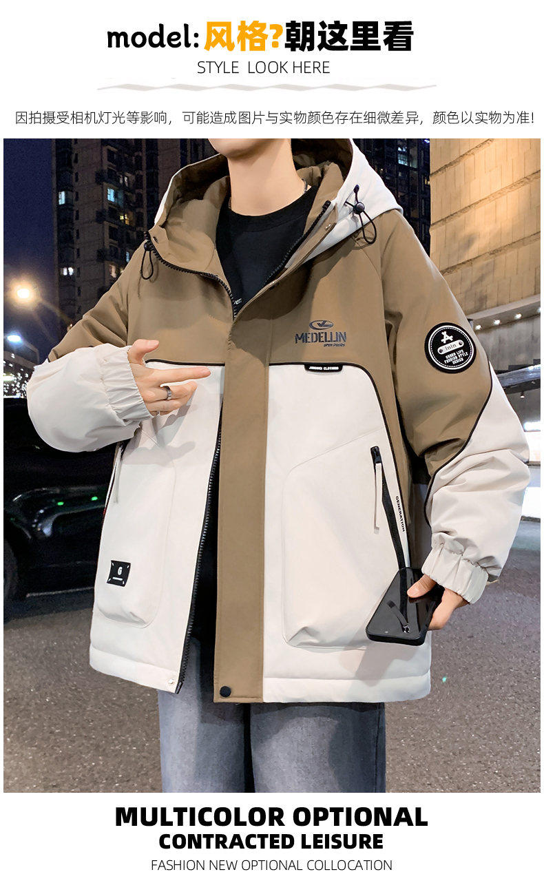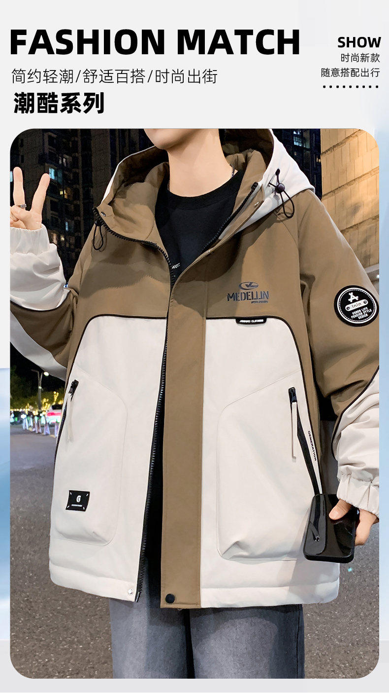 Woodpecker work jacket men's 2025 new autumn and winter velvet thickened jacket junior high school and high school student cotton coat