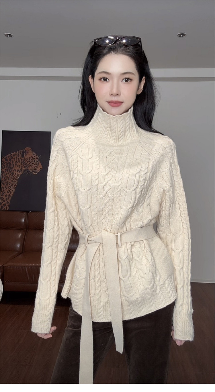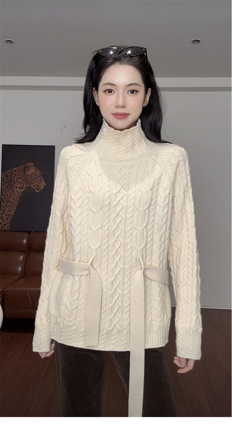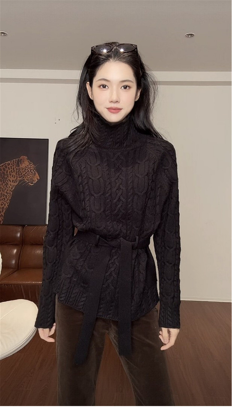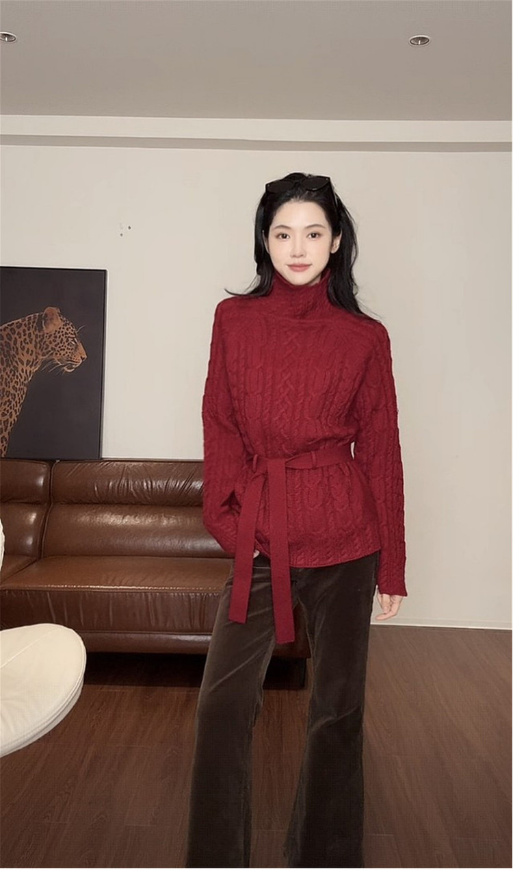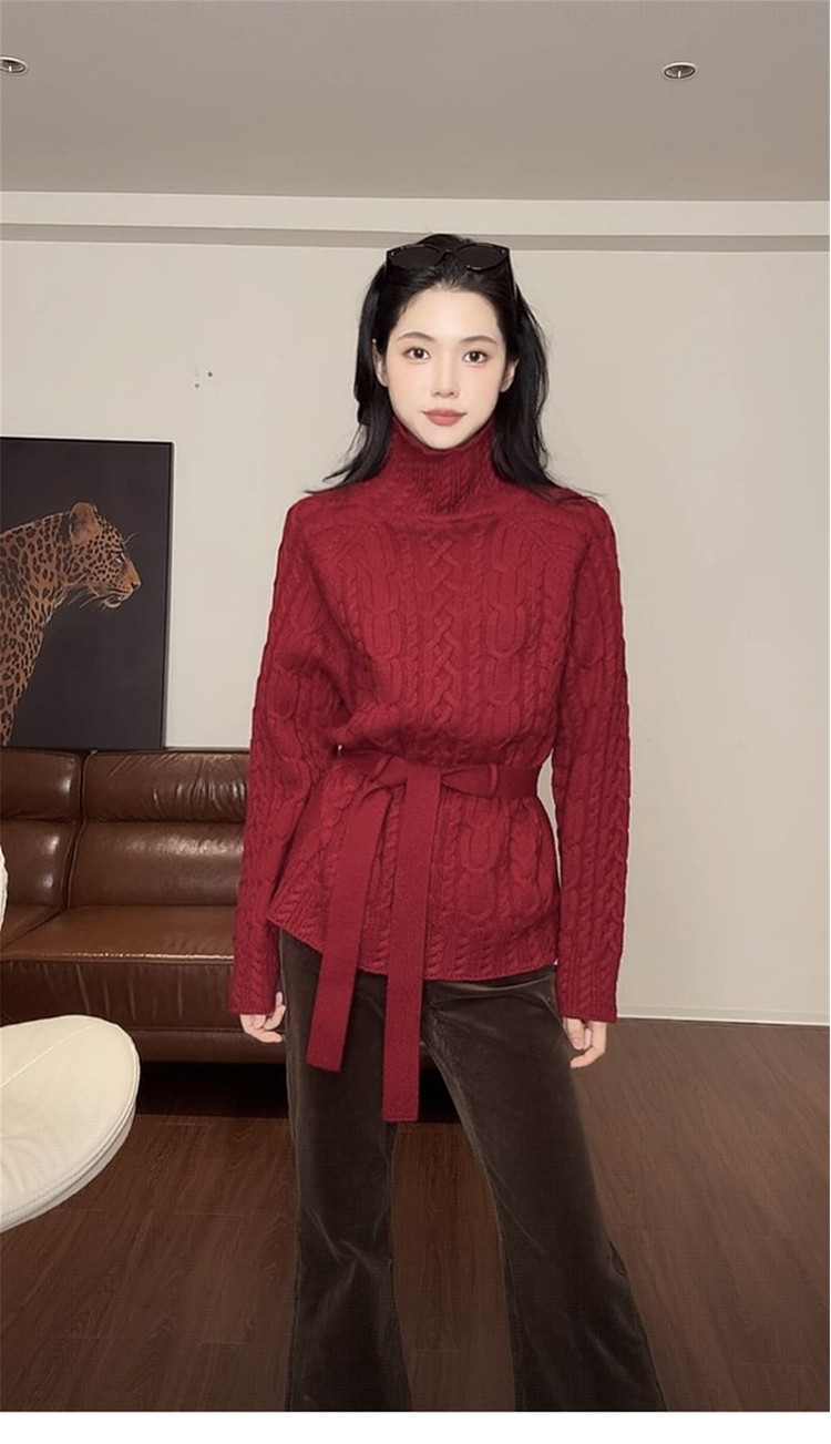 Turtleneck red sweater for women in autumn and winter 2026 new style lazy high-end thickened sweater top New Year's wear