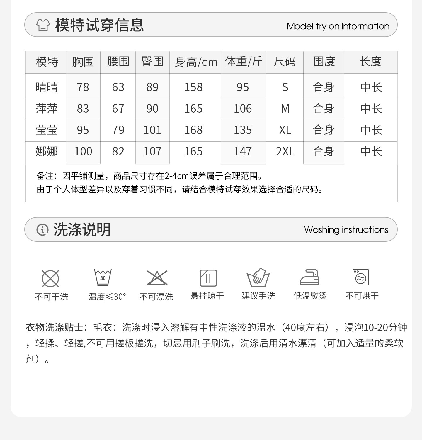 China (cm) 160-165/84-86 165-170 / 88-90 167-172 / 92-96 168-173 / 98-102 170-176 / 106-110