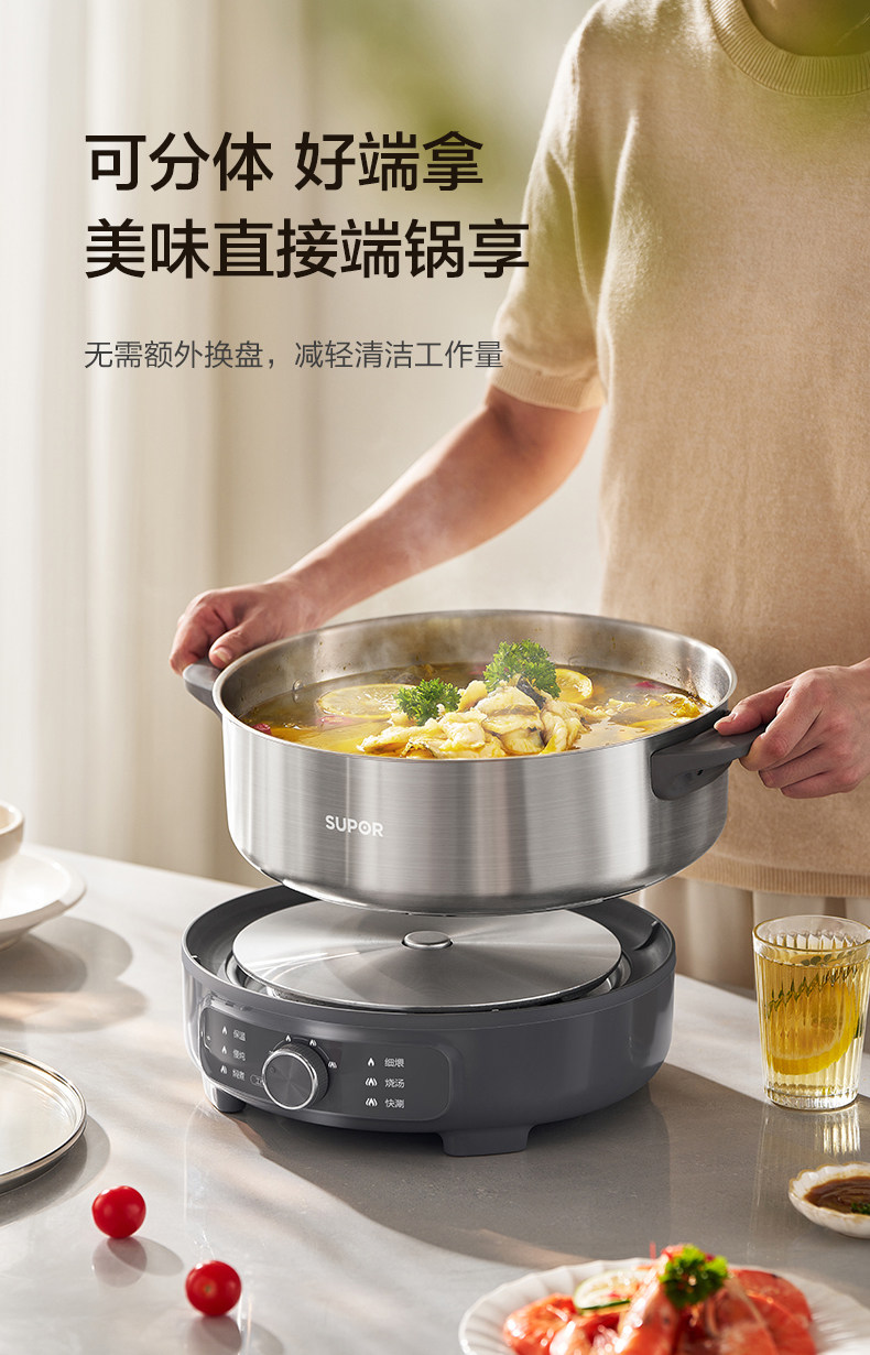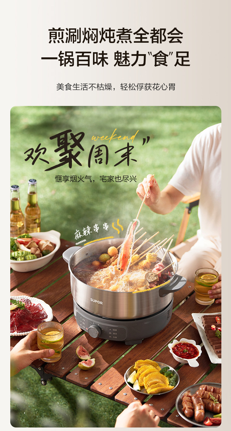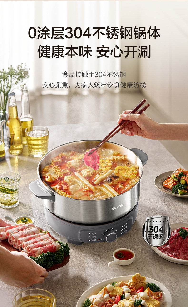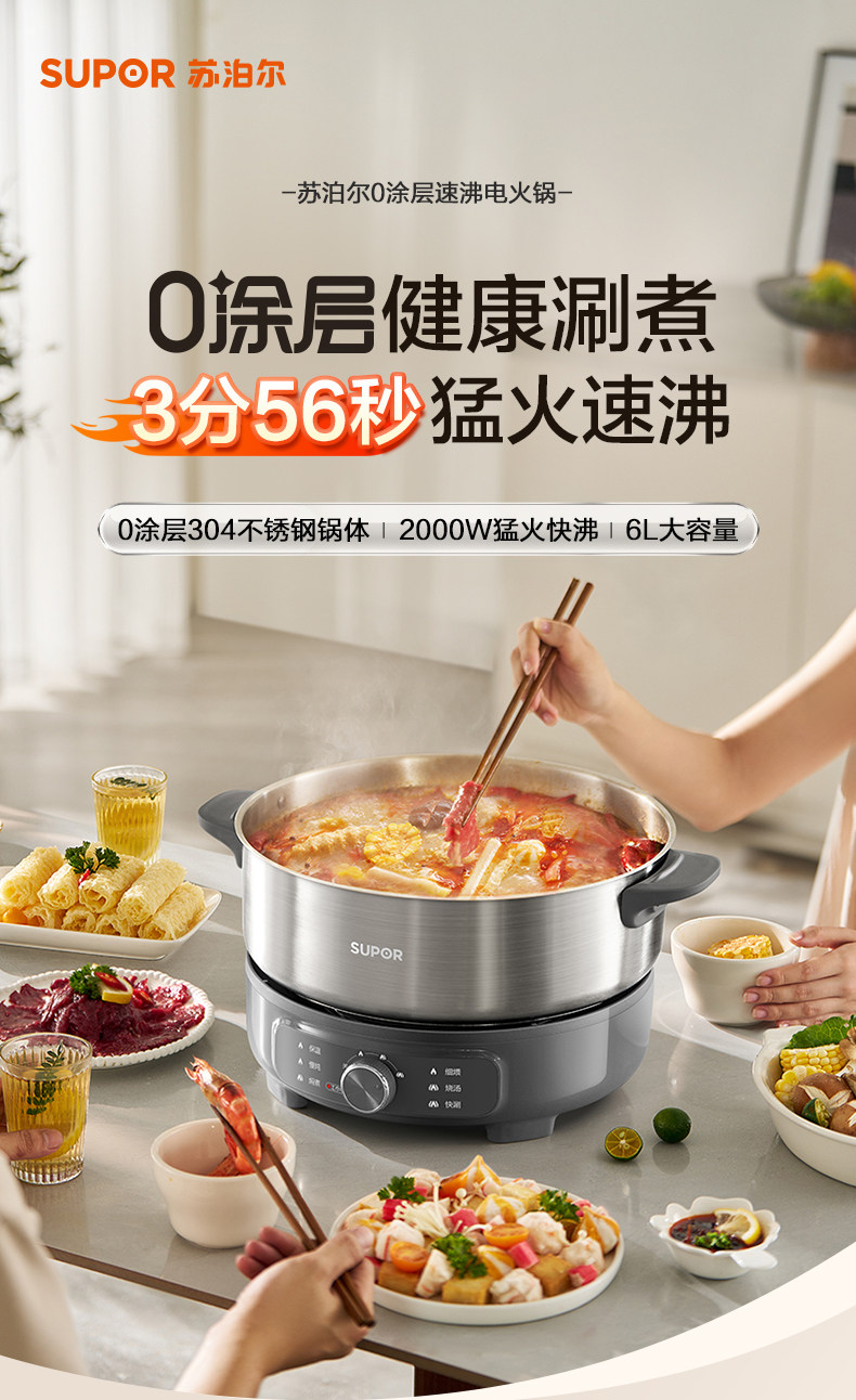Supor Electric Hot Pot Household Electric Cooking Pot Multifunctional Detachable 0-Coating 6-Liter Electric Pot New Model Official Flagship Store
