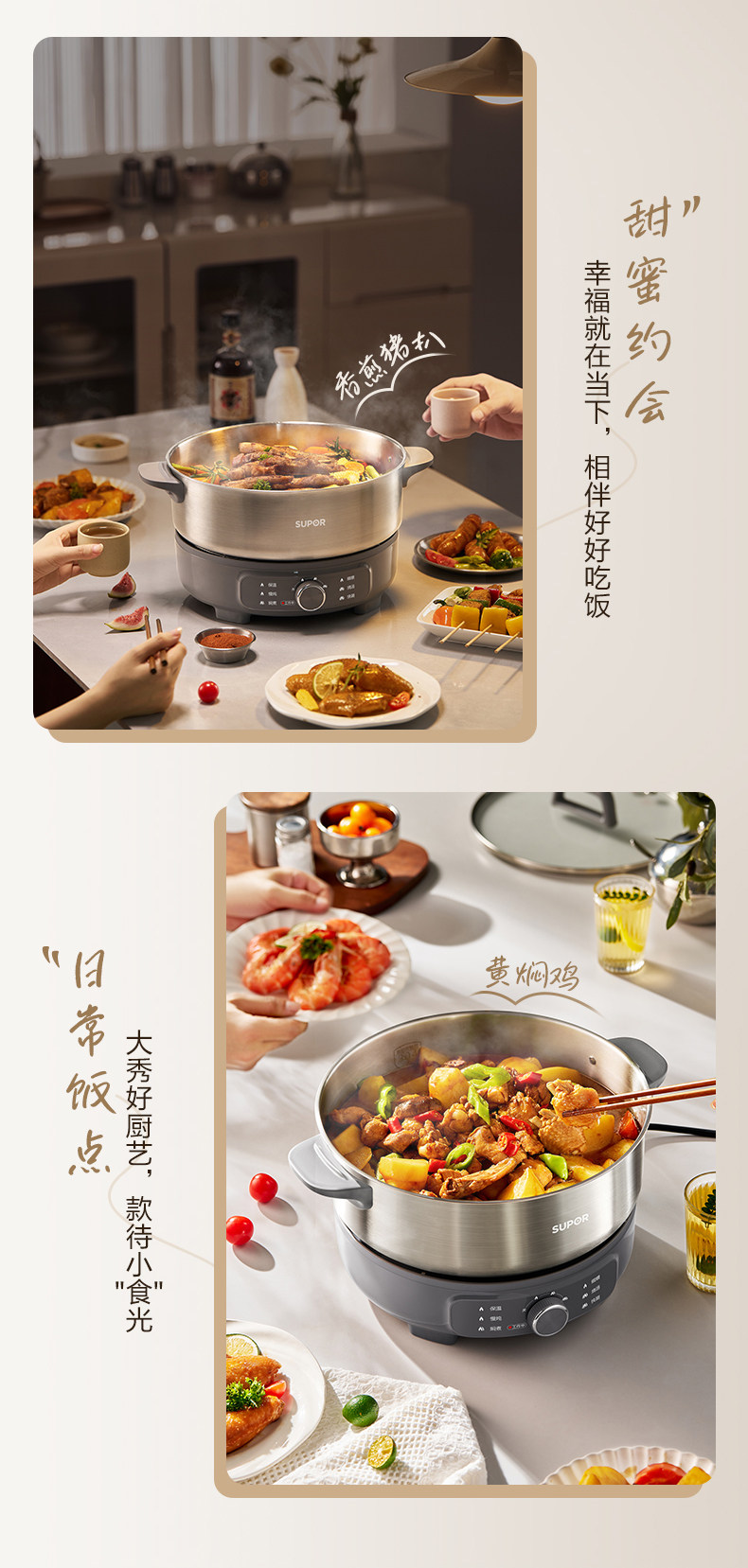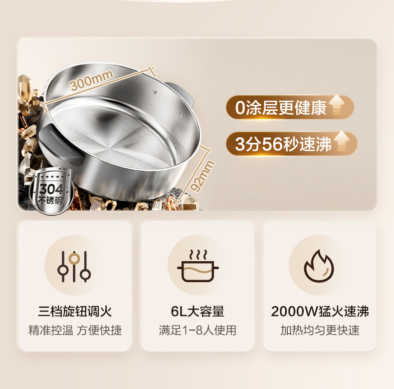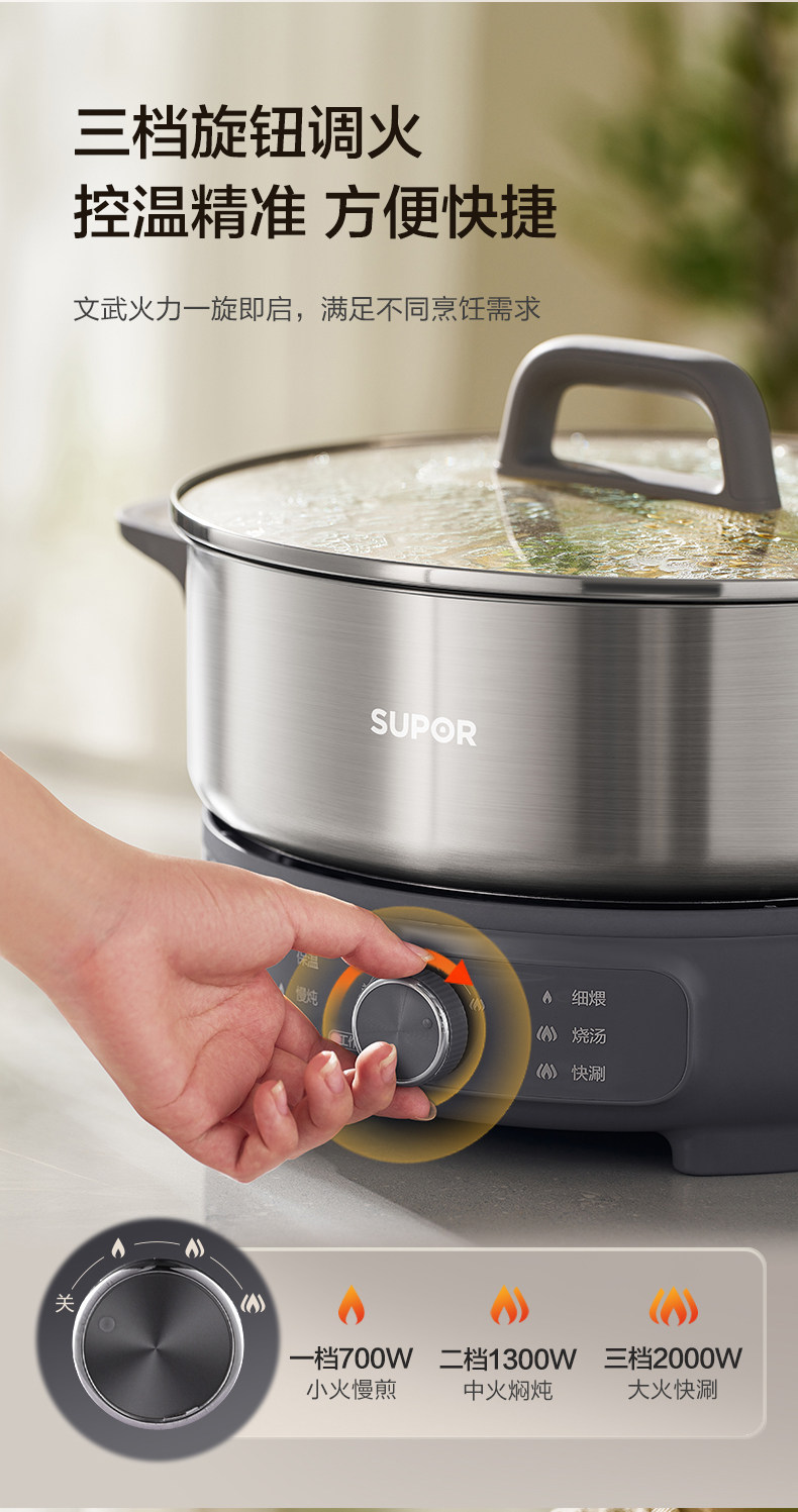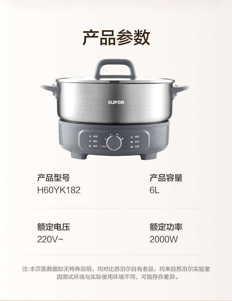 Supor Electric Hot Pot Household Electric Cooking Pot Multifunctional Detachable 0-Coating 6-Liter Electric Pot New Model Official Flagship Store