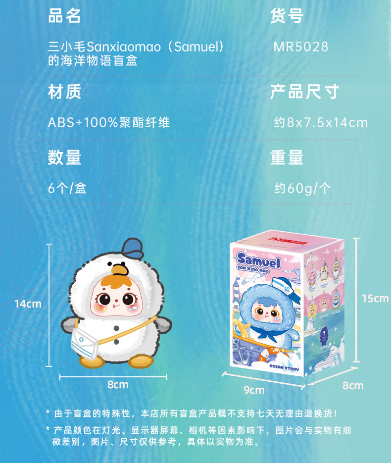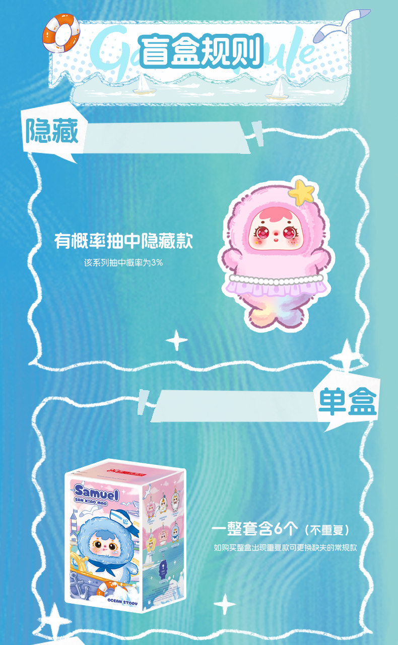 Samuel Three Little Animals Ocean Story Series Plush Pendant Blind Box Dolphin Doll Girl's Gift Keychain