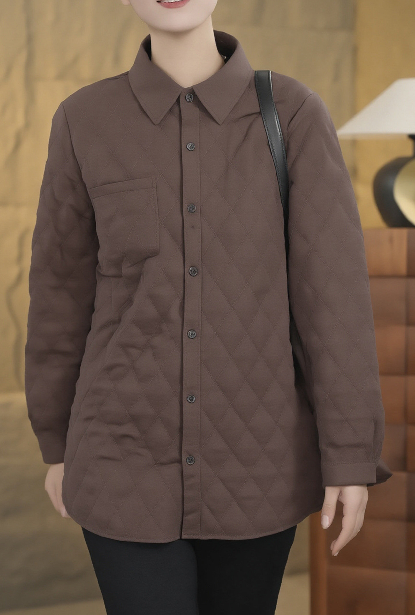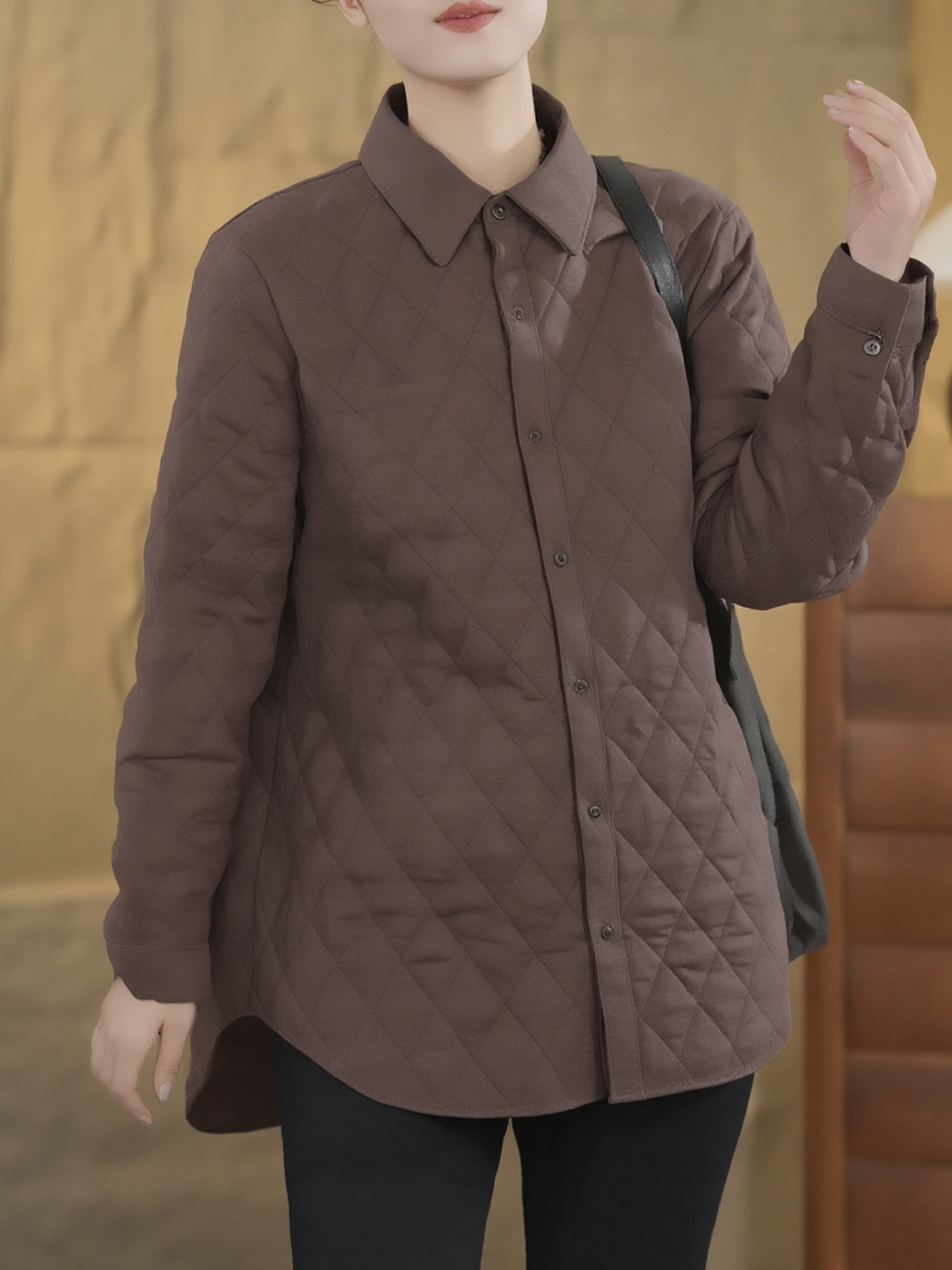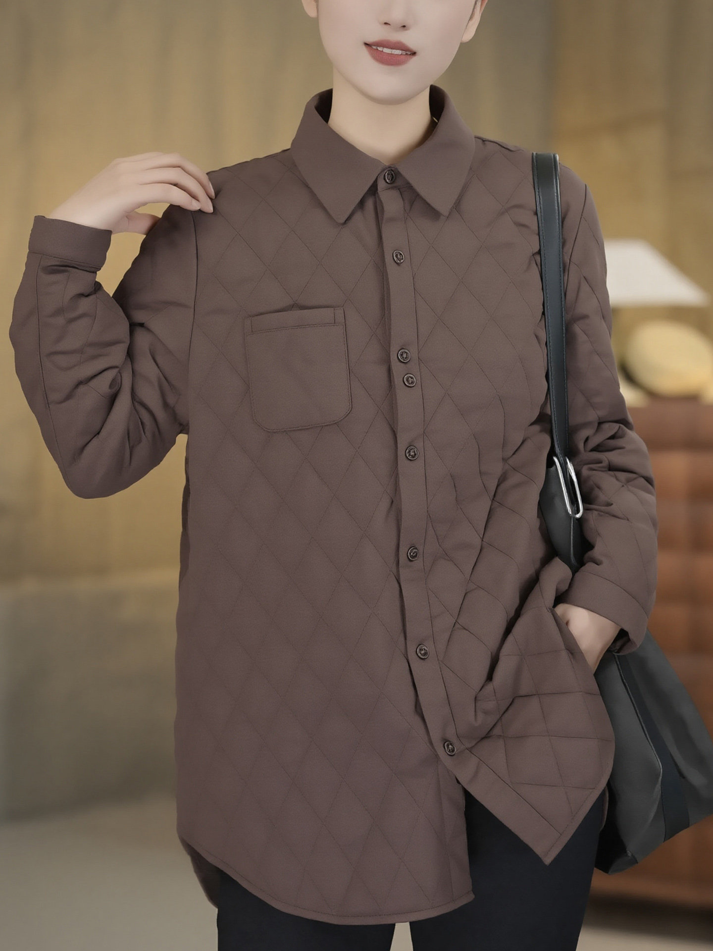 2026 Summer Plus Size Women's Diamond Plaid Shirt Fat MM Coffee Color Loose Casual Style Versatile Cardigan Jacket XL