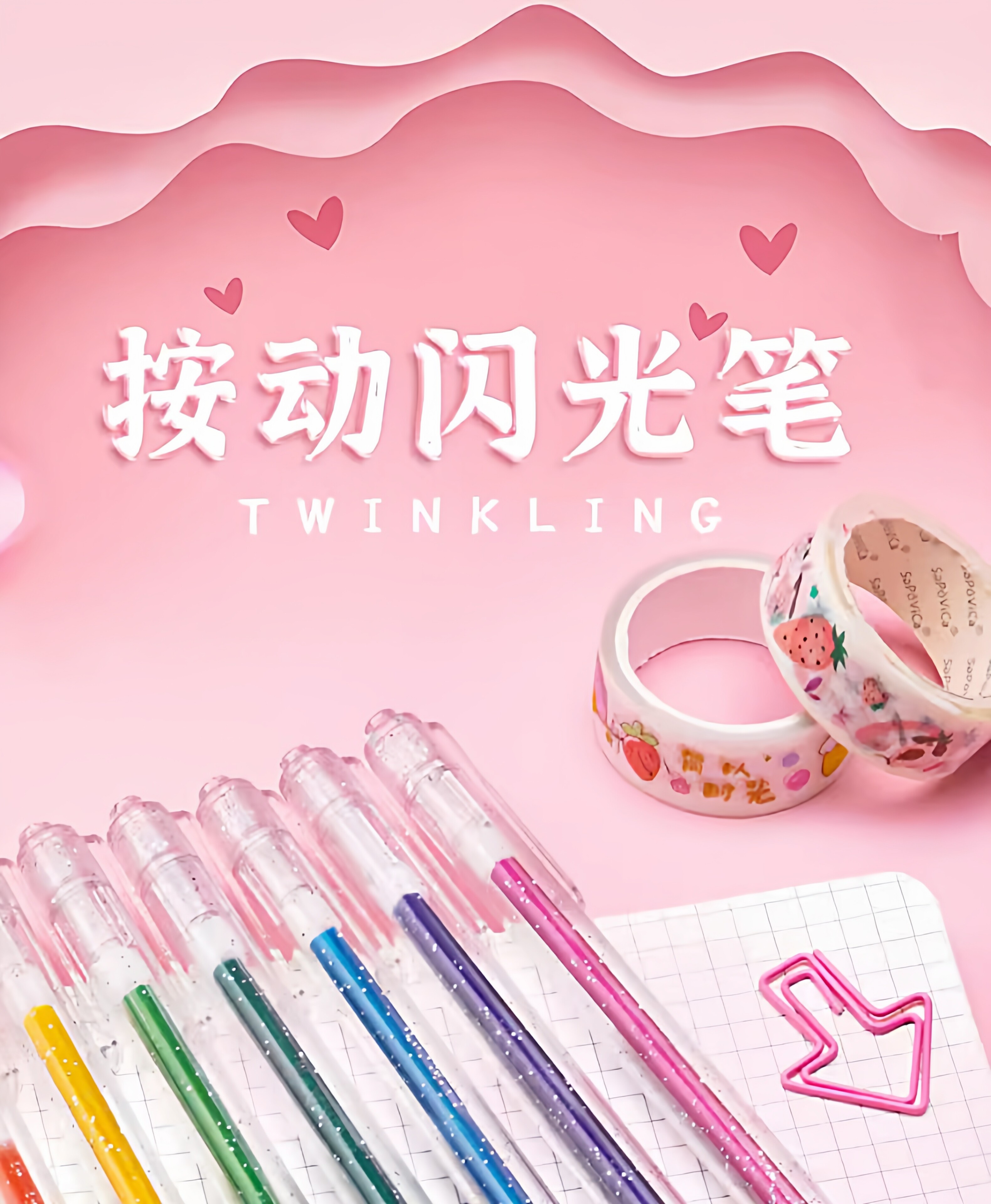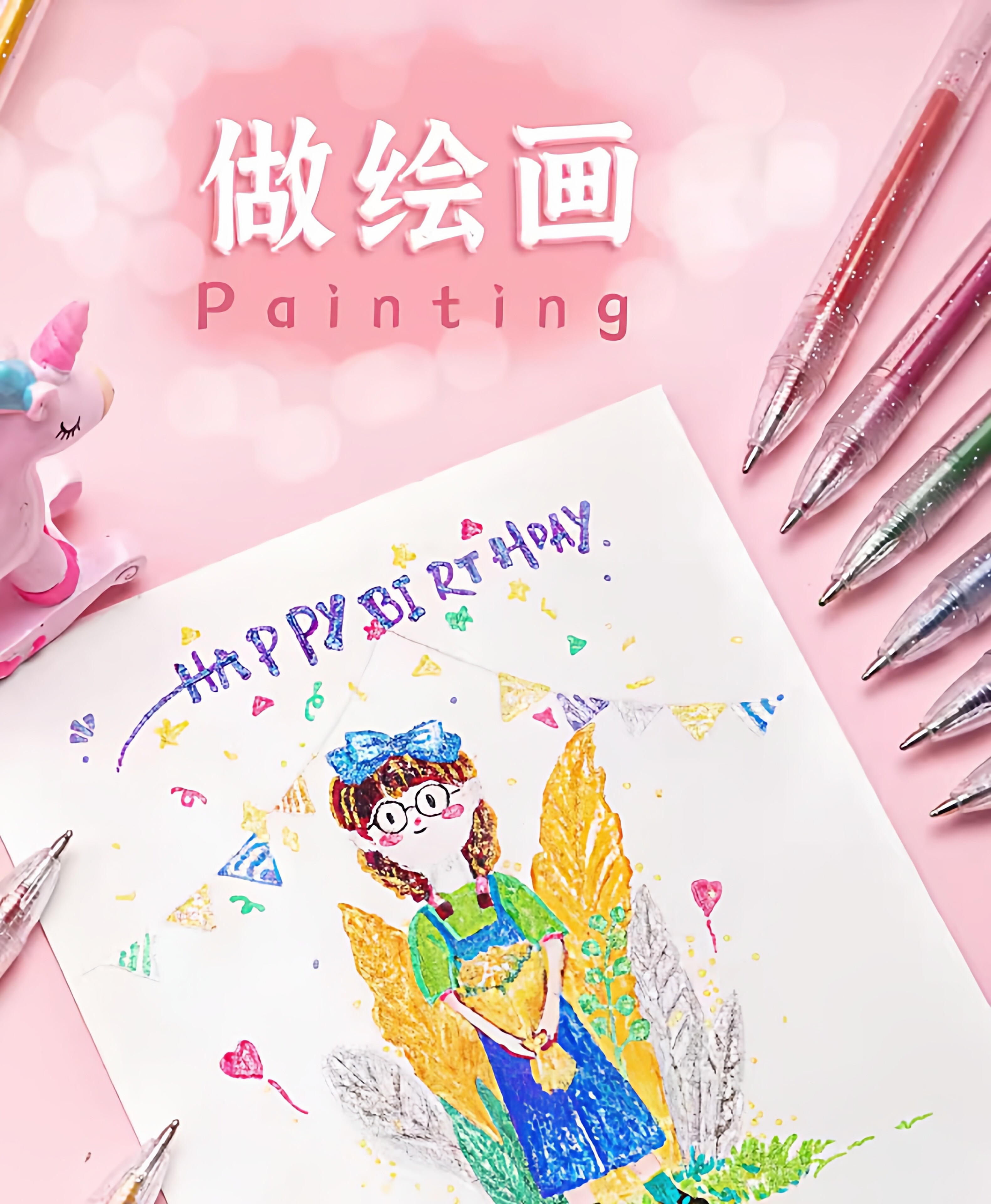 My Little Pony Colorful Glitter Pens, Shiny Pearlescent Fluorescent Markers, Liquid Sand Silver Gel Glow Watercolor Pens, Children's Journaling Special Color-Changing Pens, Elementary School Glitter Outline Highlighter Pens