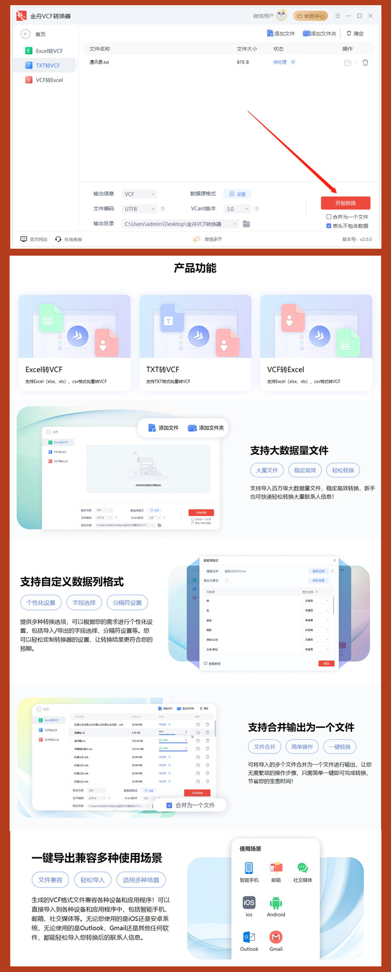 Jinzhou Vcf Converter Member Computer Software Mobile Phone Address Book Vcf to Excel File Generator