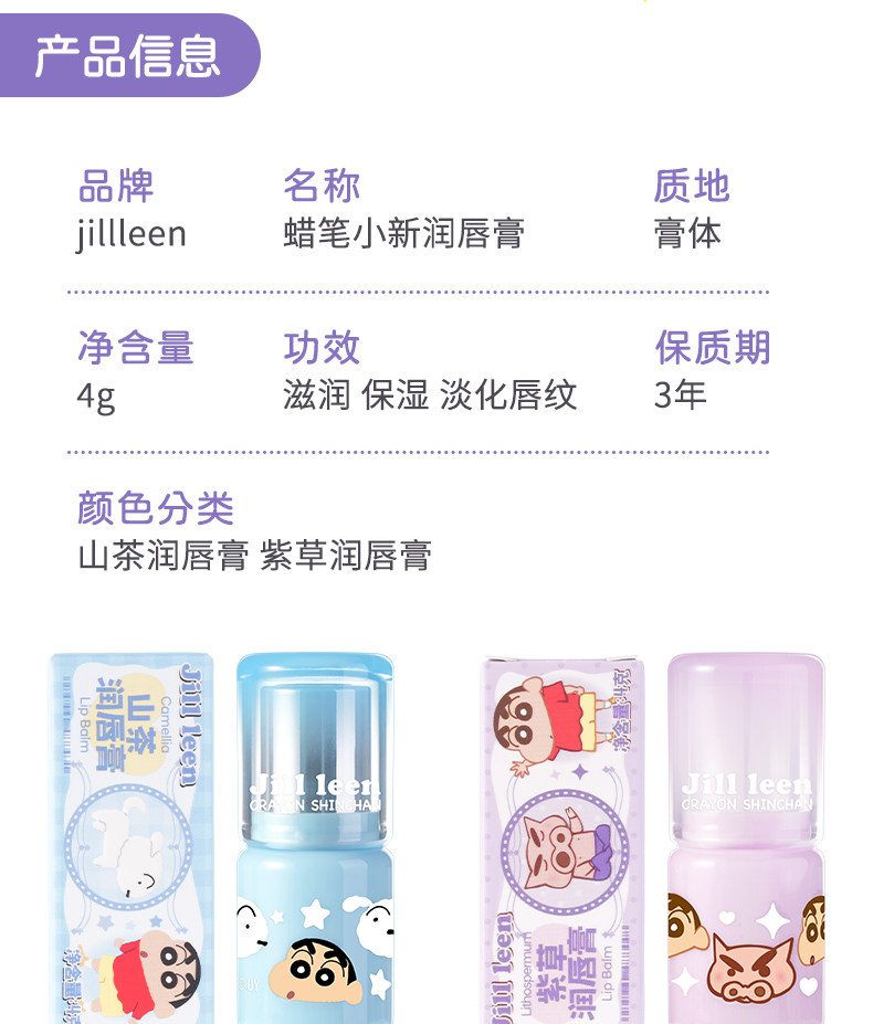 Jillleen Crayon Shin-Chan Collaboration Lip Balm Moisturizing and Nourishing, Smooth and Reduces Lip Lines, Lip Mask for Men and Women