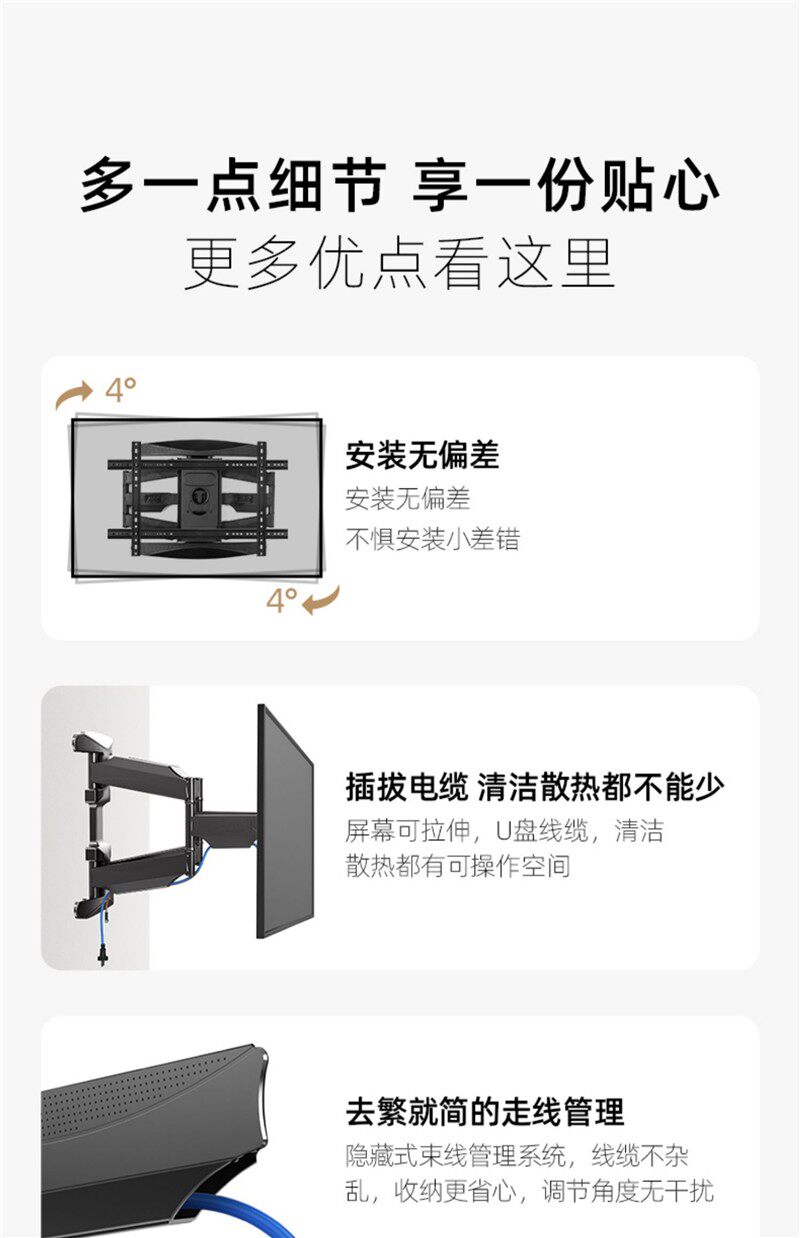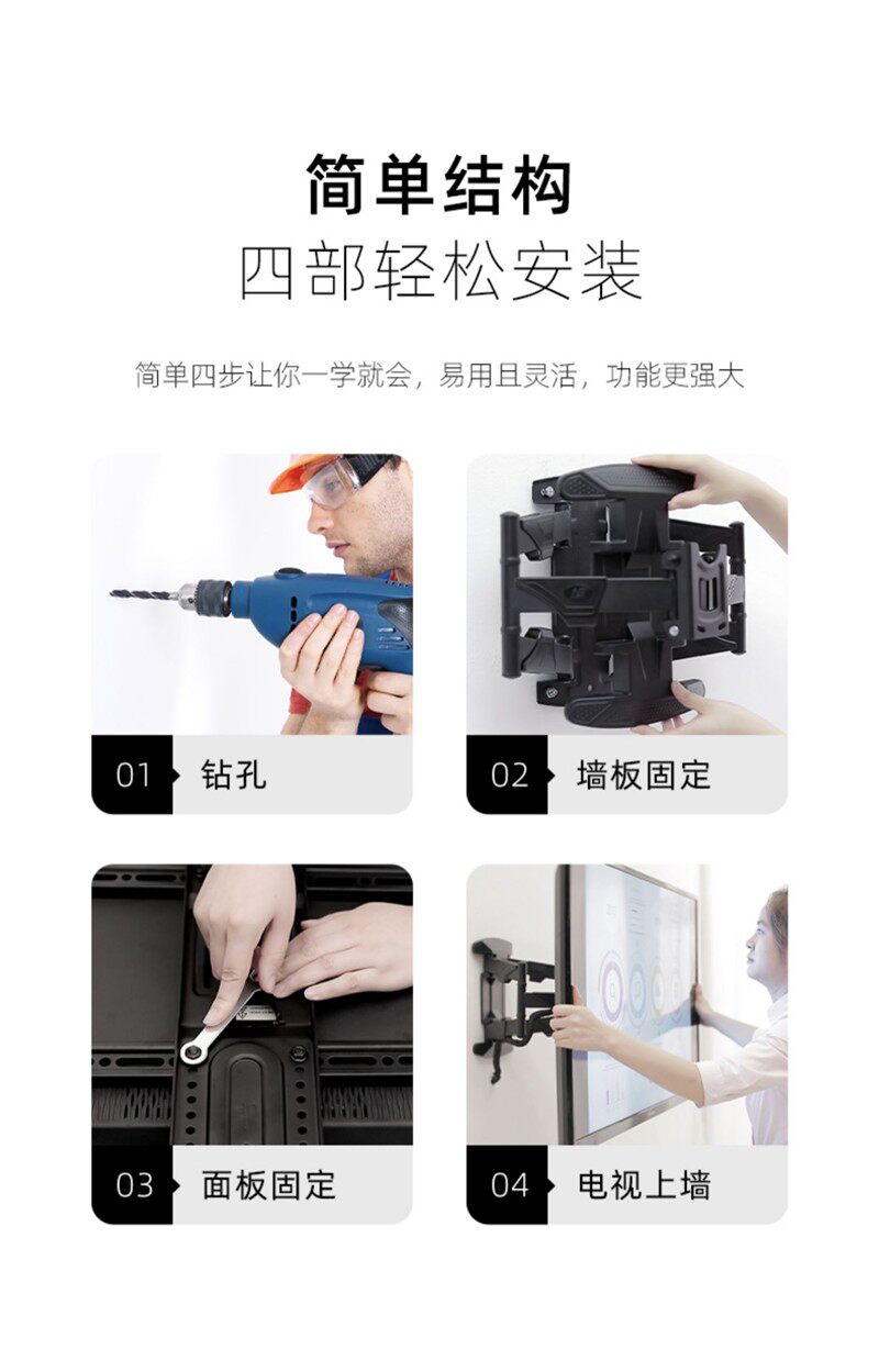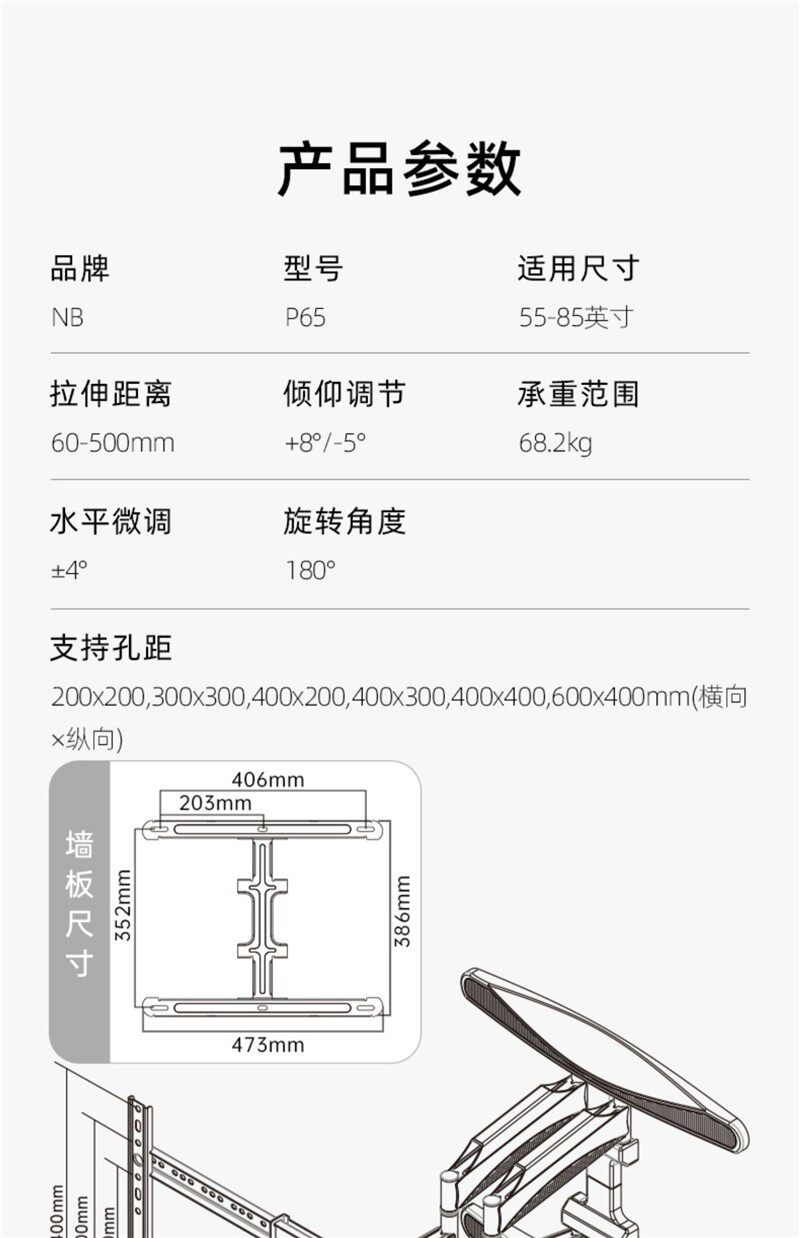 Nb P65 55-75inch Tv Wall Mount Telescopic Rotating Bracket Wall-Mounted Tv Stand Bed Sheet Pull-Out Cart