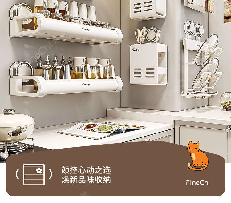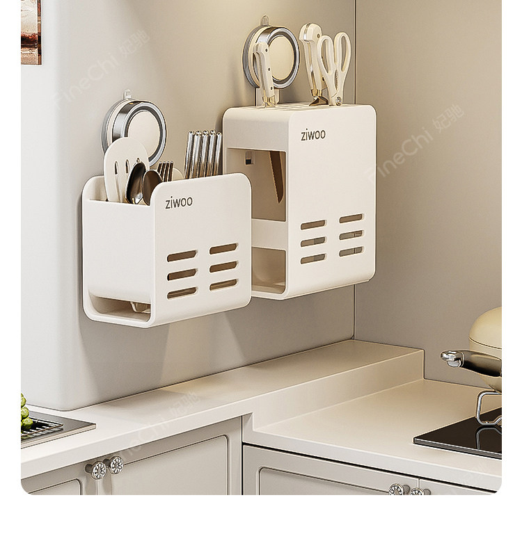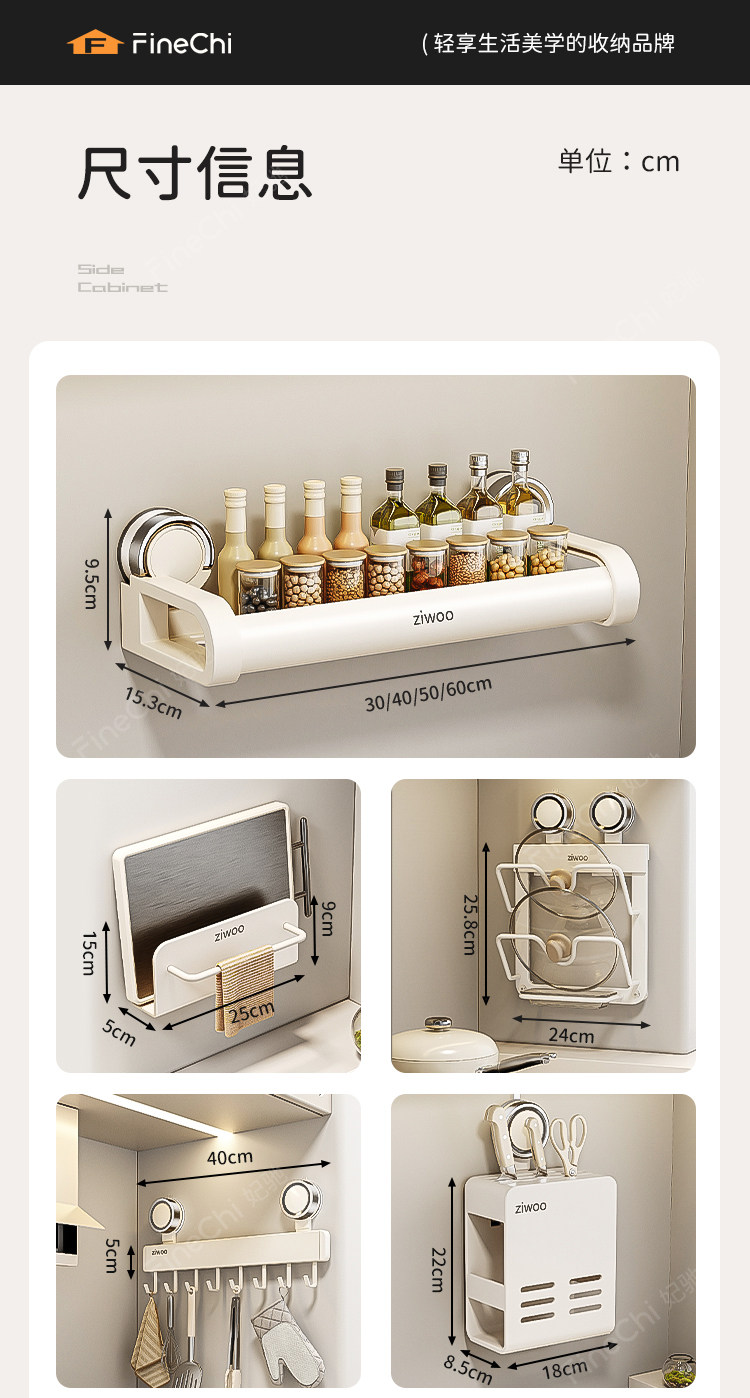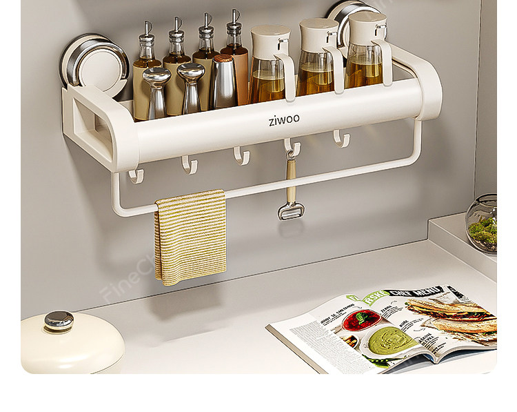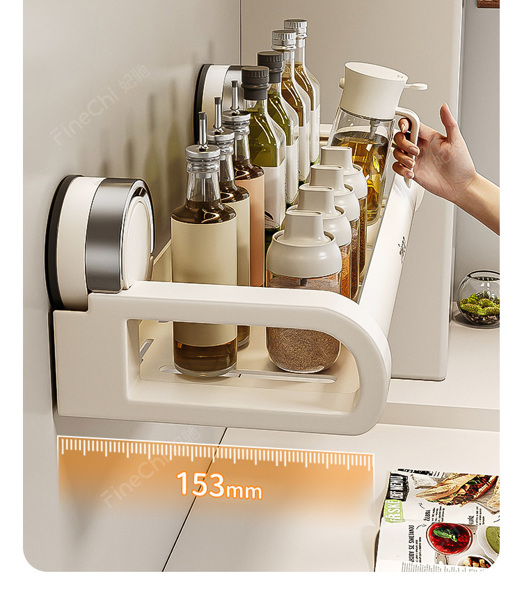 Finechi Suction Cup Kitchen Storage Rack Wall-Mounted Multi-Layer Spice Organizer No-Drill Knife Holder Chopstick Holder Set