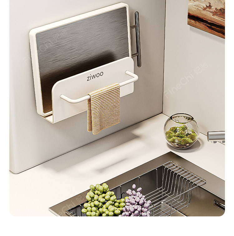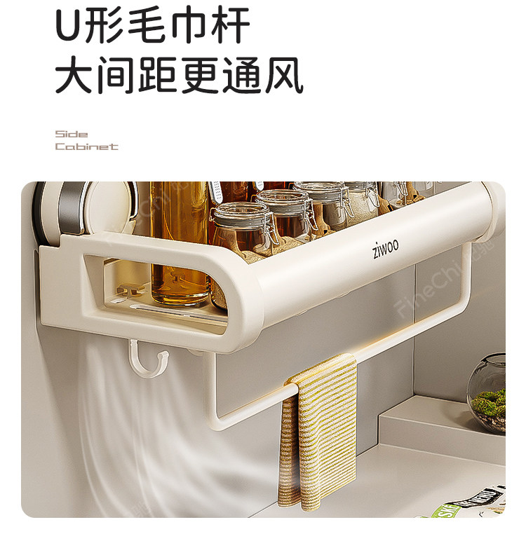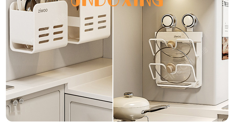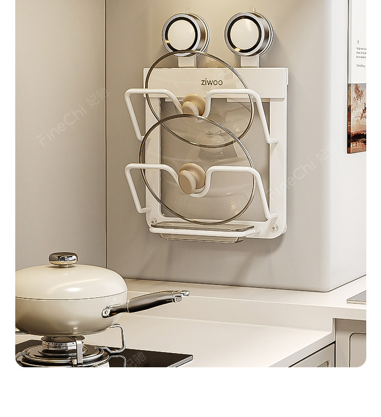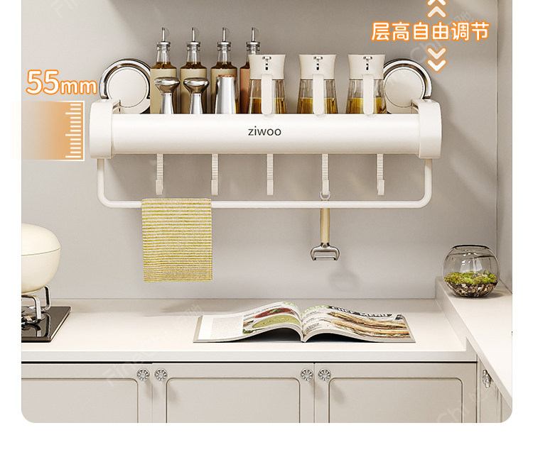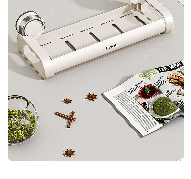 Finechi Suction Cup Kitchen Storage Rack Wall-Mounted Multi-Layer Spice Organizer No-Drill Knife Holder Chopstick Holder Set