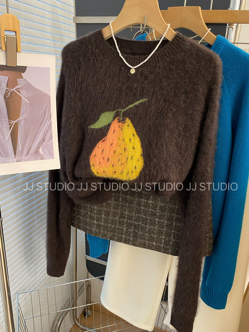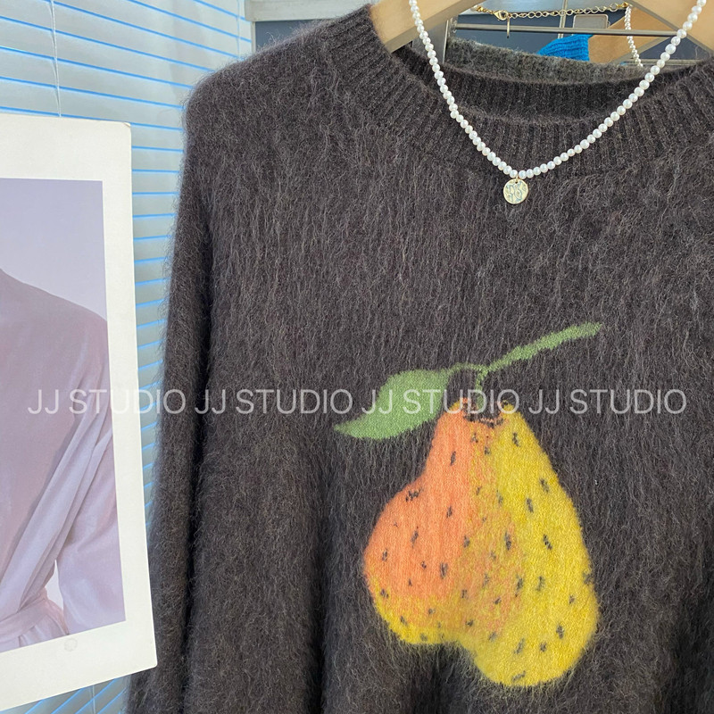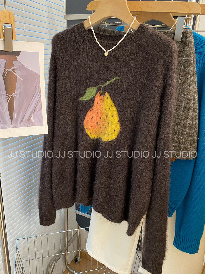 Brushed wool Korean Dongdaemun colorful fruit jacquard loose wool sweater women's winter knitted sweater top