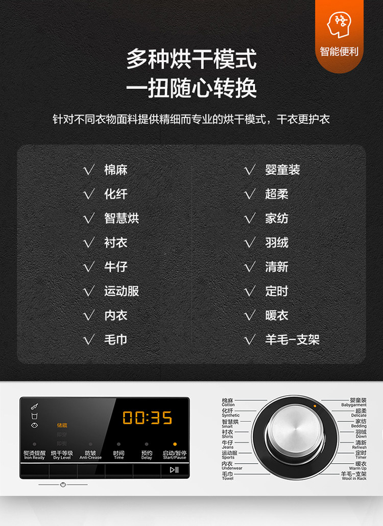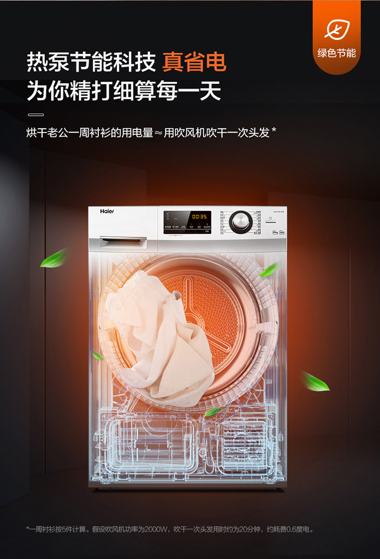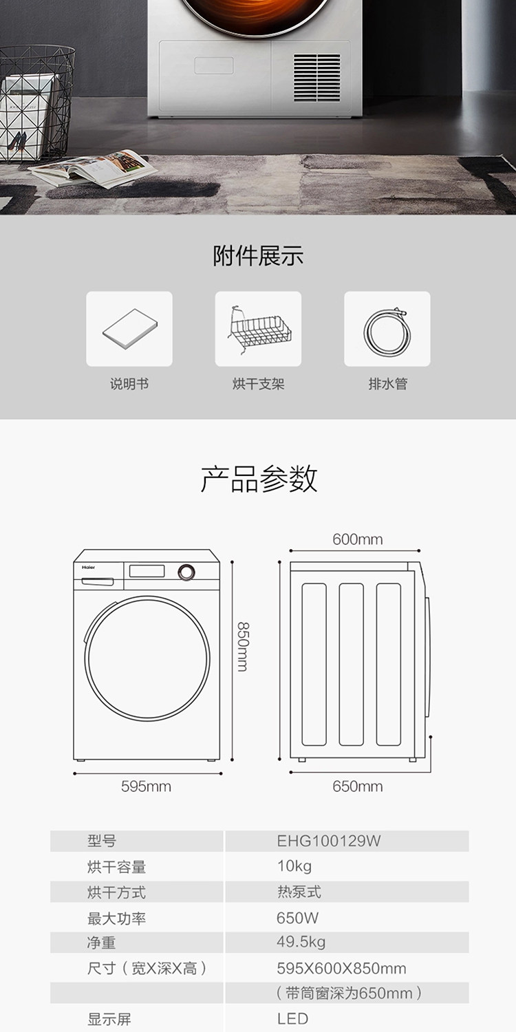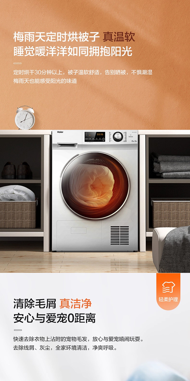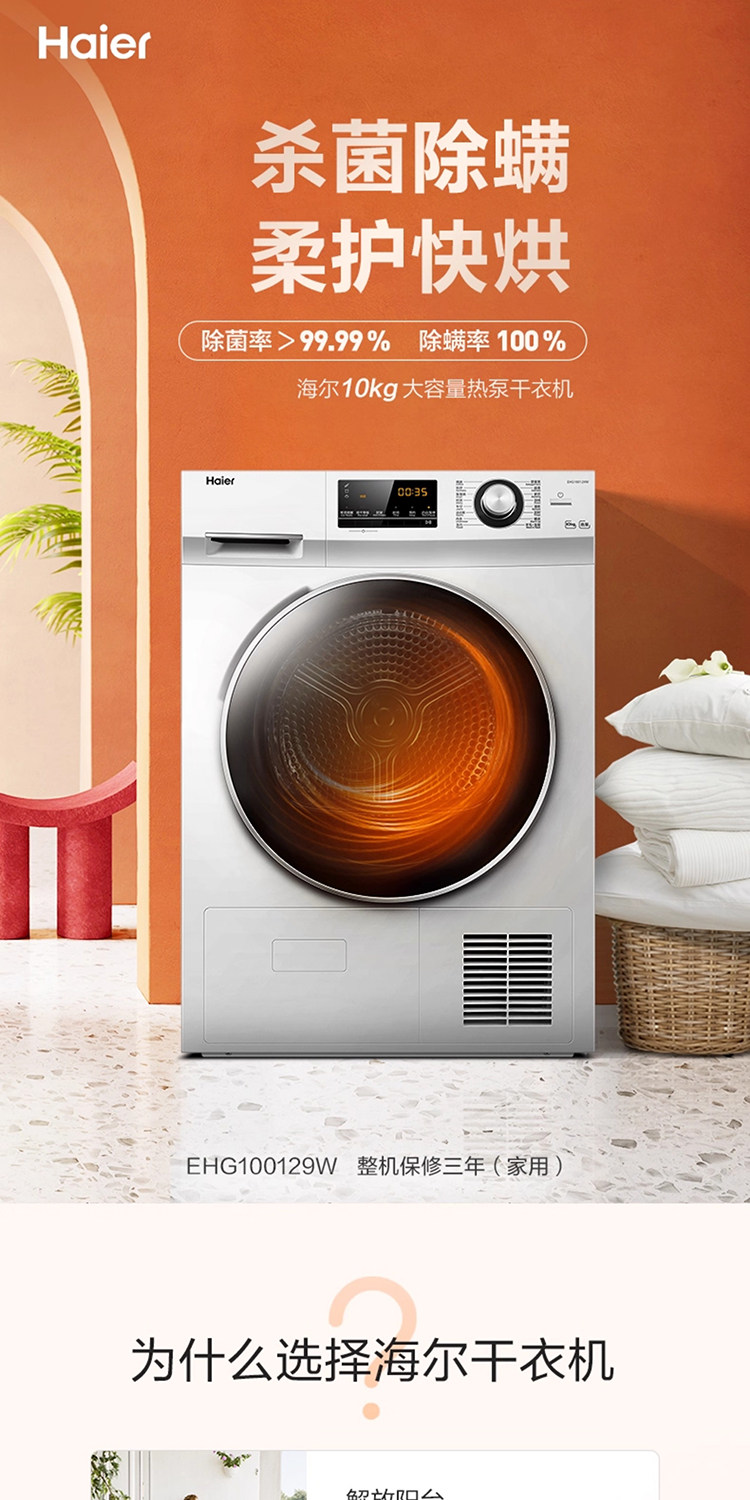 Haier Ehg100129W Heat Pump Type 10kg Sterilization and Mite Removal Dryer for Home Use with Forward and Reverse Rotation