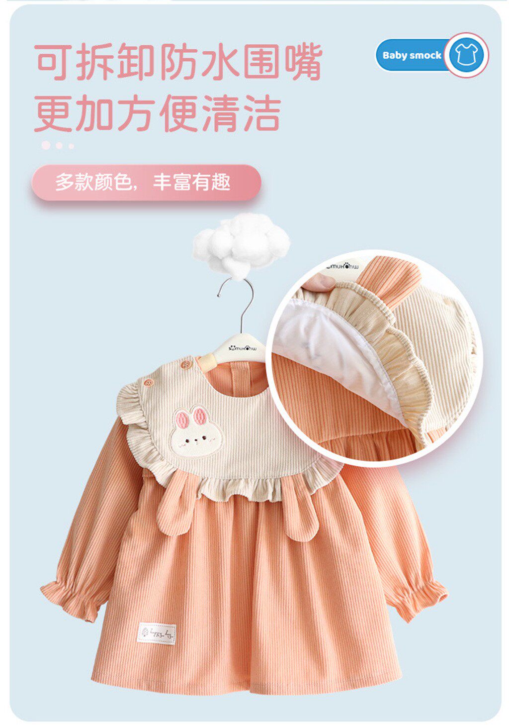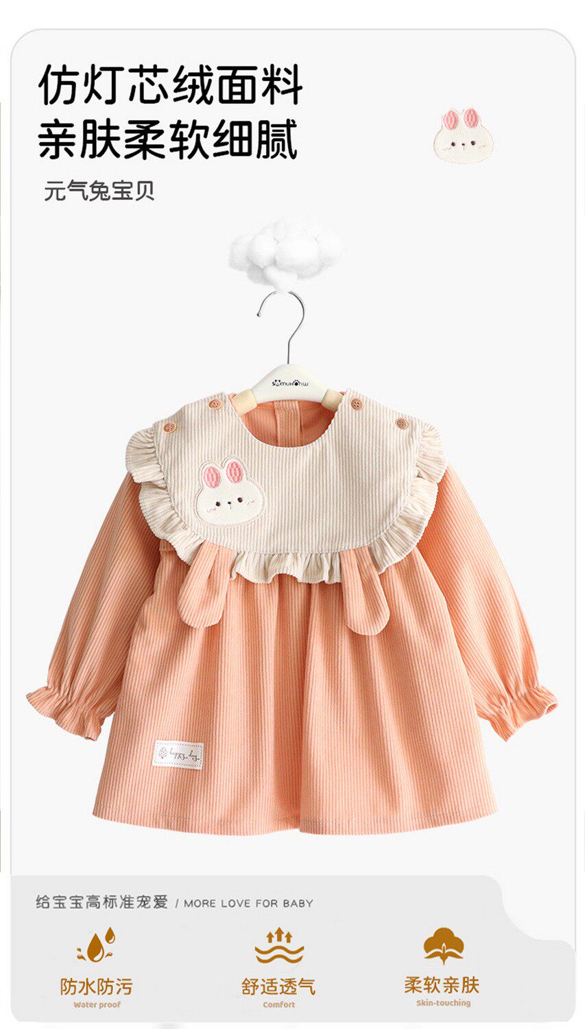 Baby Smock, New Winter Style, Corduroy Smock for Outer Wear, Waterproof Infant Apron, Anti-Dirty Apron, Reverse-Wearing Apron