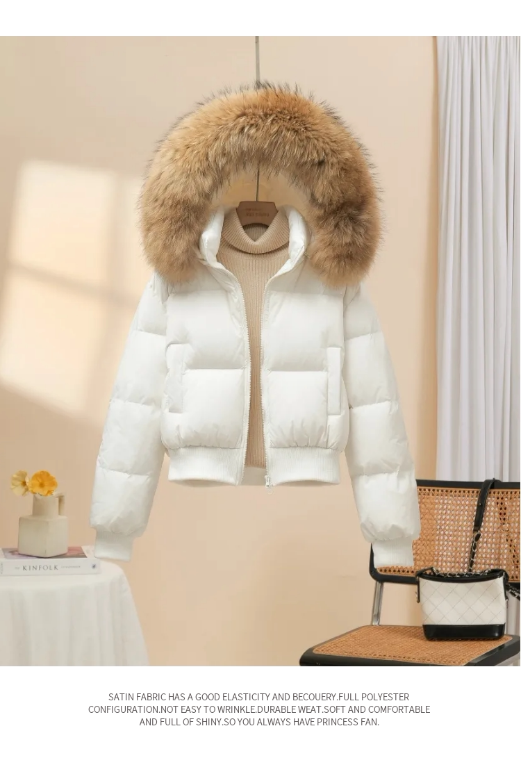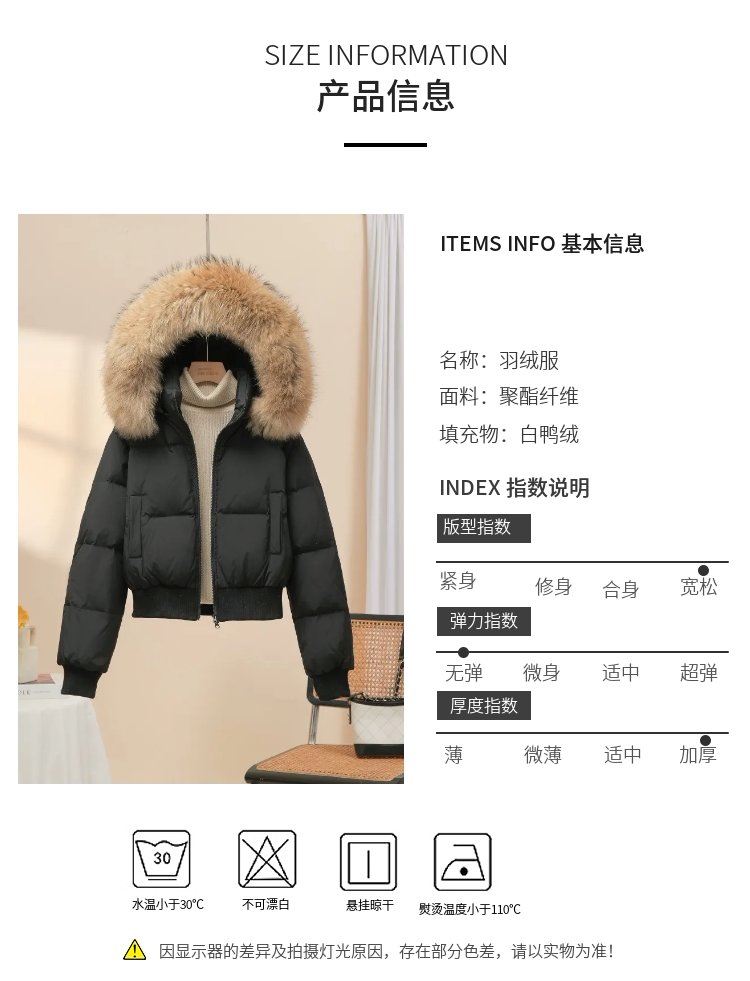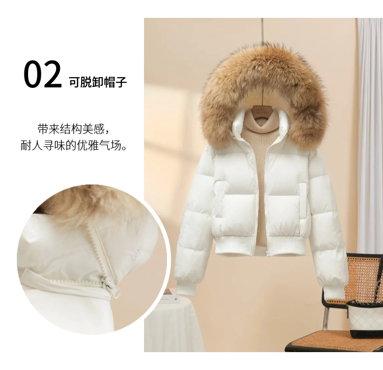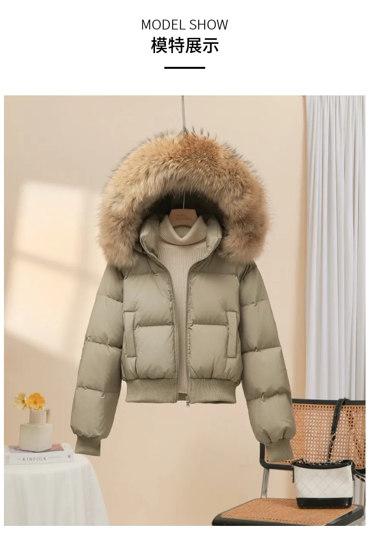 2025 great-looking short down jacket for women, new thickening for small people, 90 white duck down, big fur collar, winter hot style