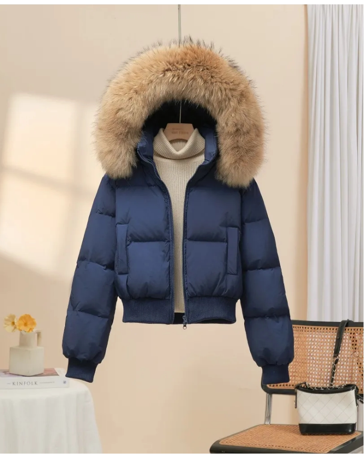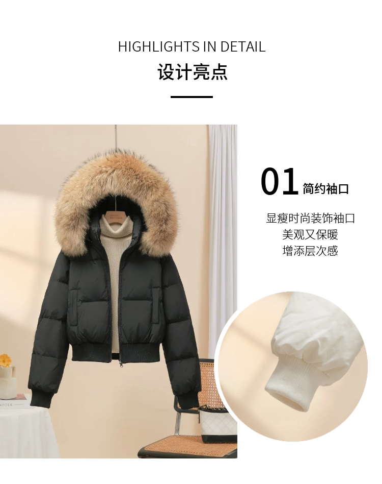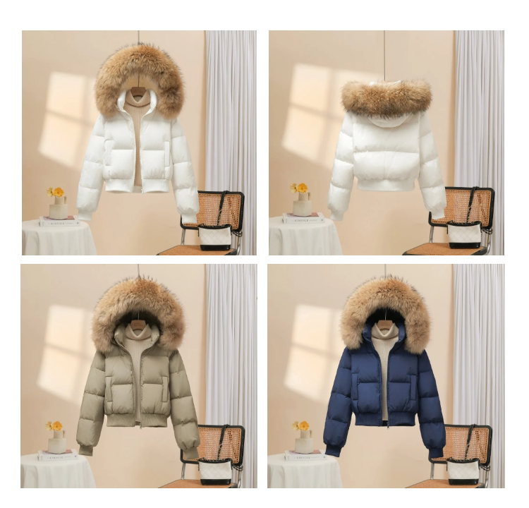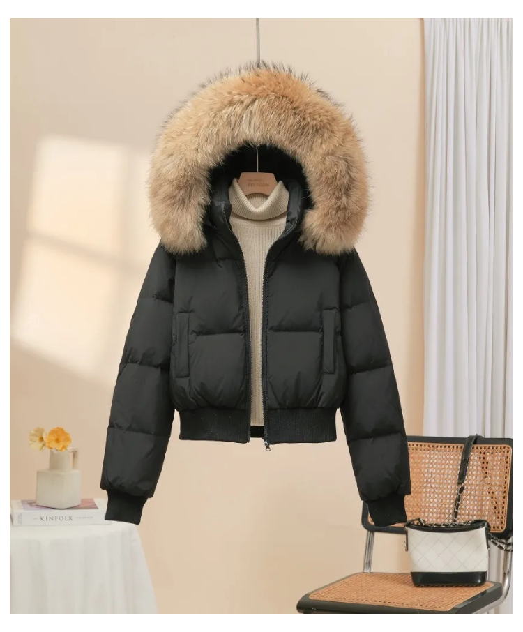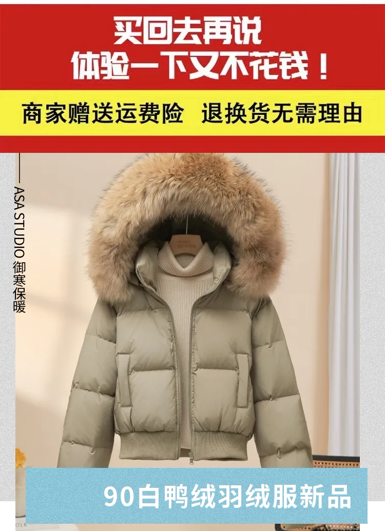 2025 great-looking short down jacket for women, new thickening for small people, 90 white duck down, big fur collar, winter hot style