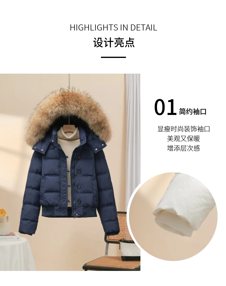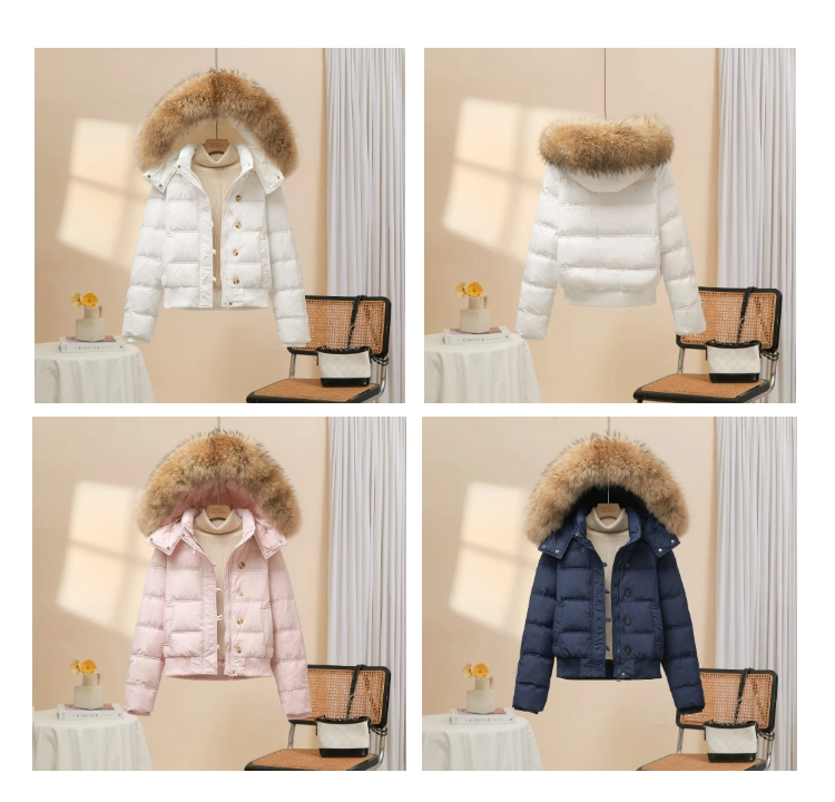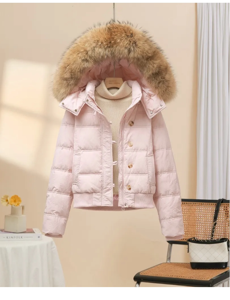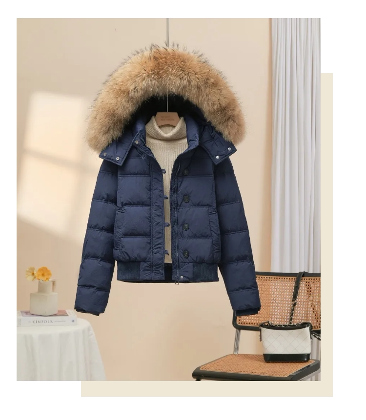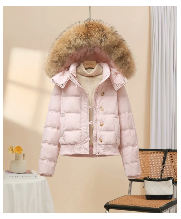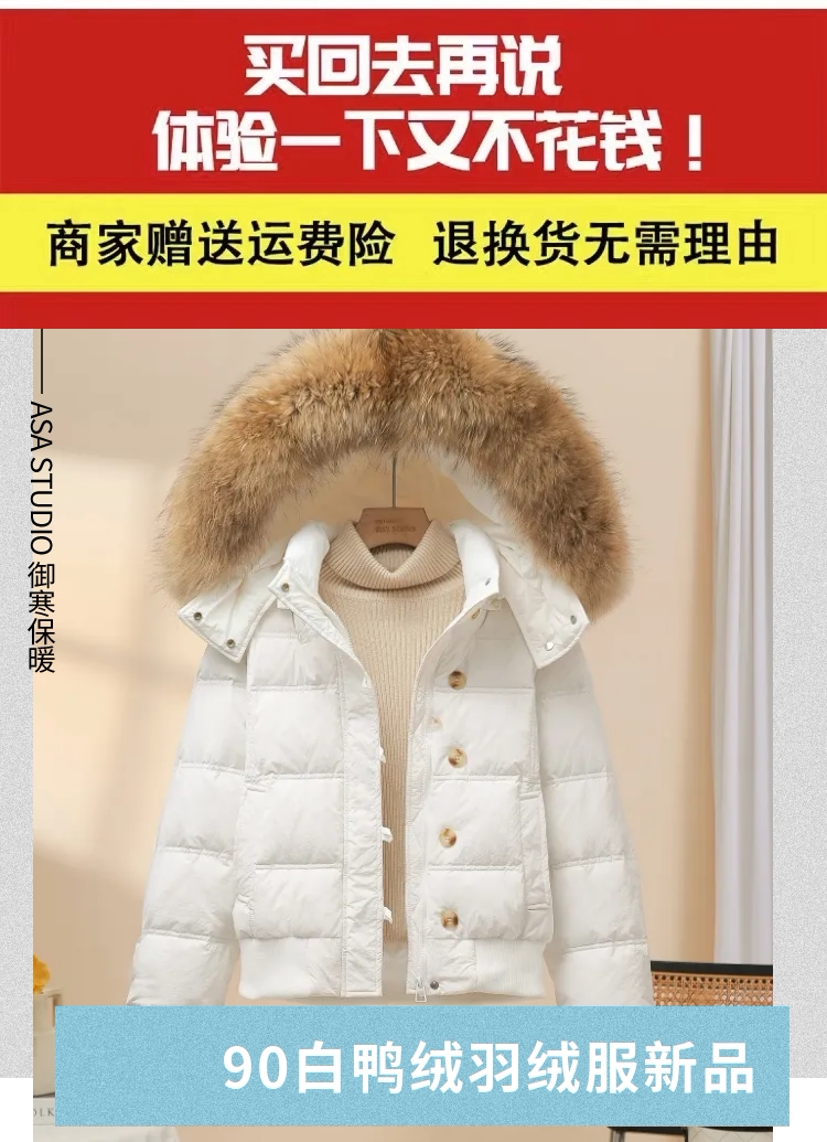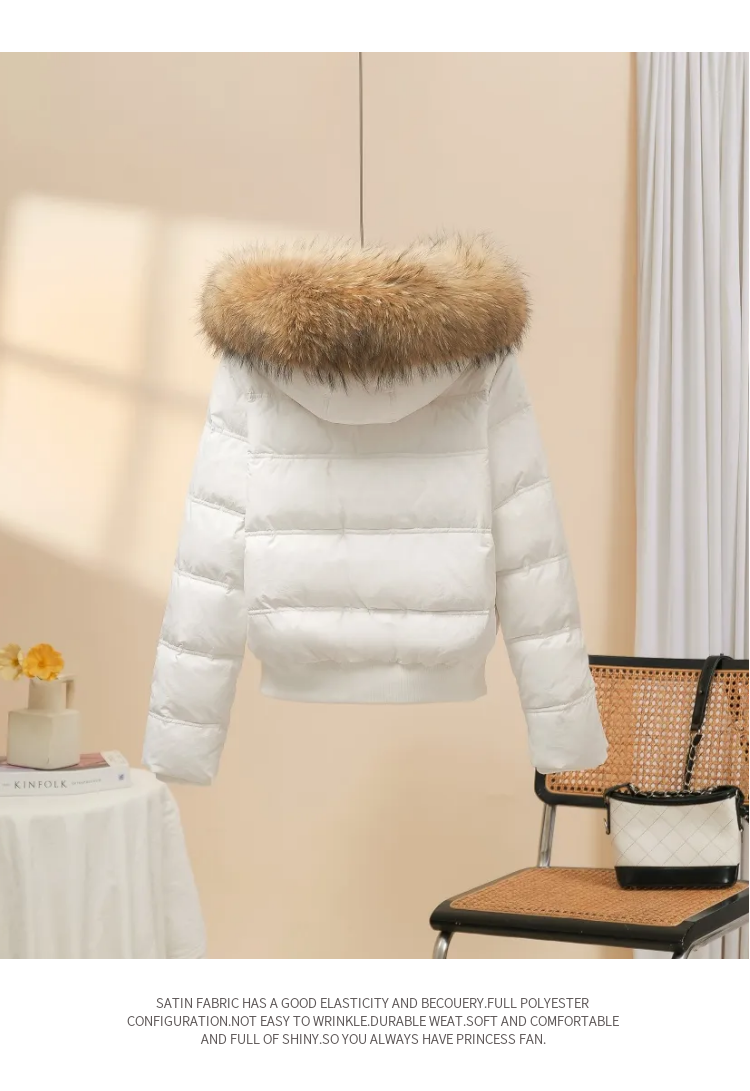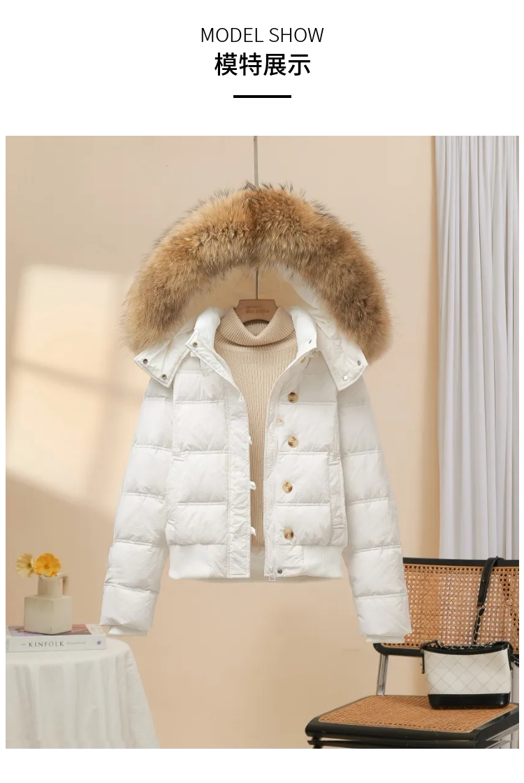 90 White Duck Down Southern District Fiona Down Jacket Women's Short 2025 New Hooded Fur Collar Thickened Small Winter