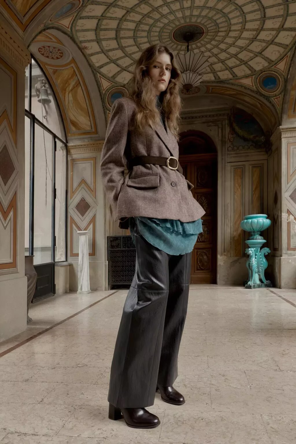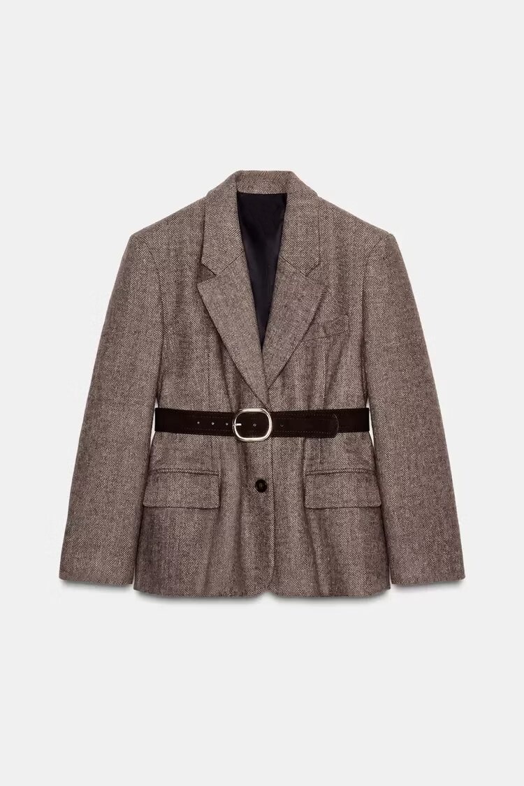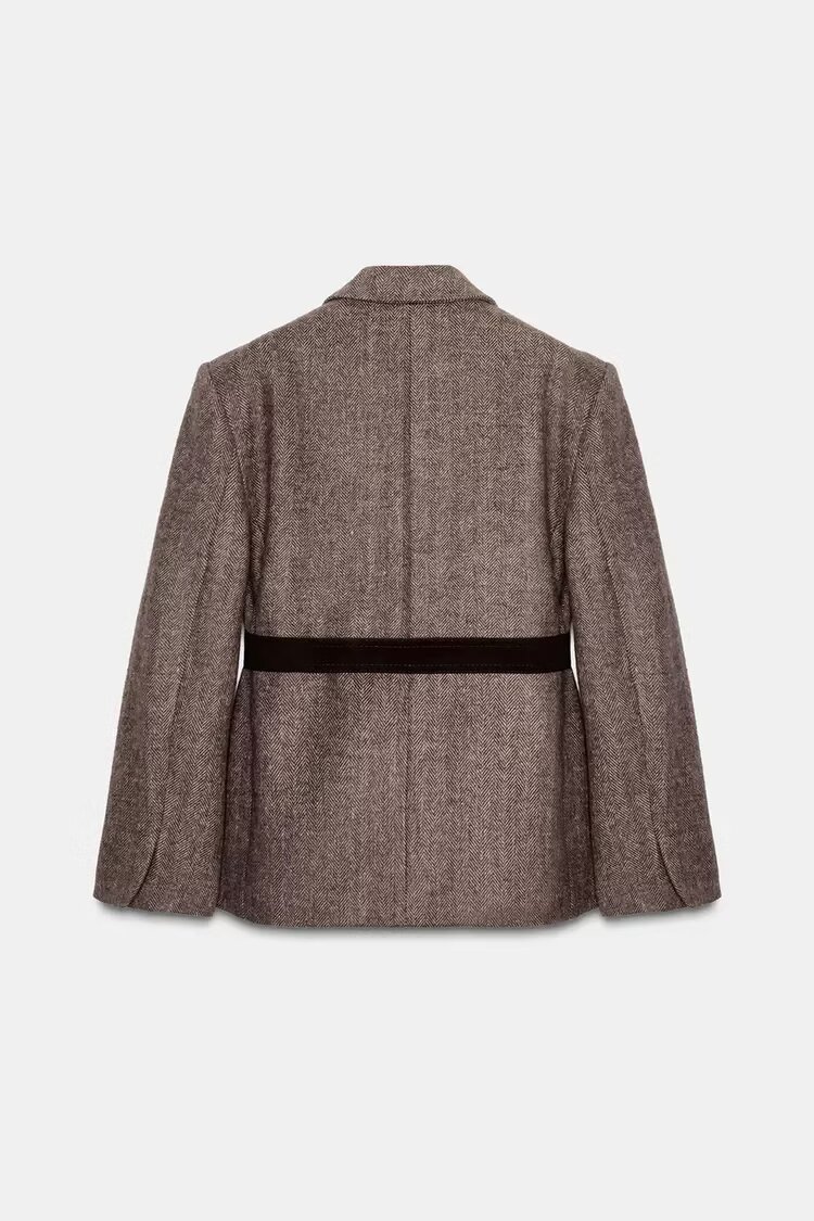 2025 Winter New Women's Clothing Lapel Long Sleeve Suit Jacket with Shoulder Pads and Belt Herringbone Twill 4387263