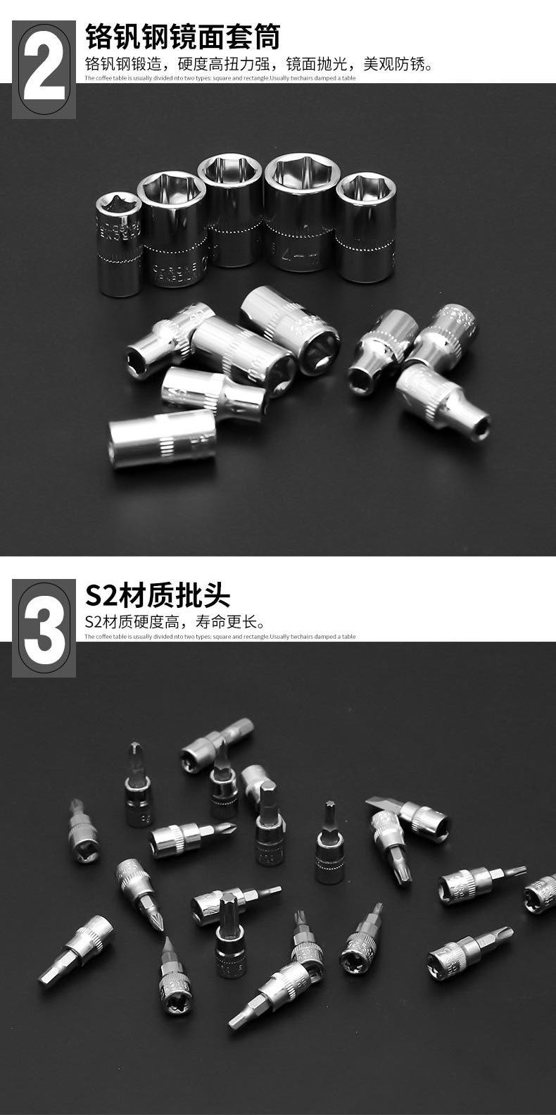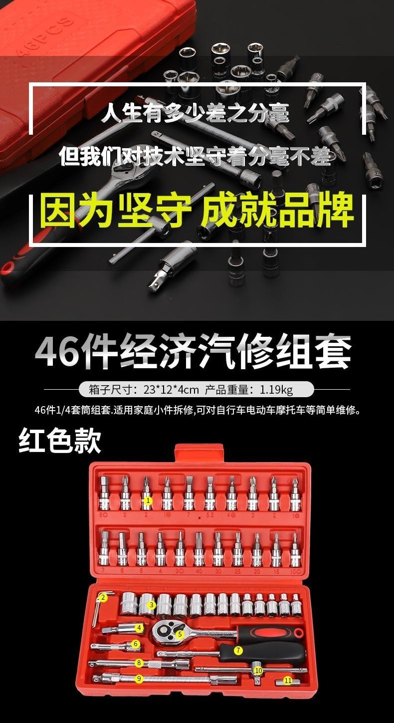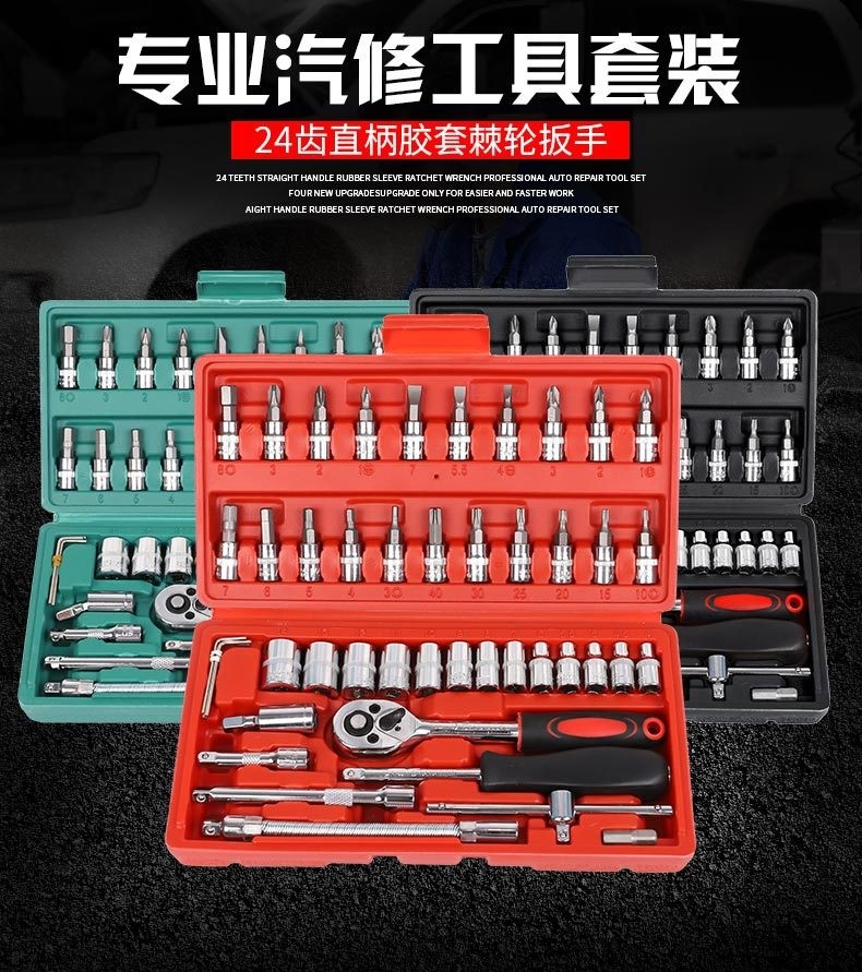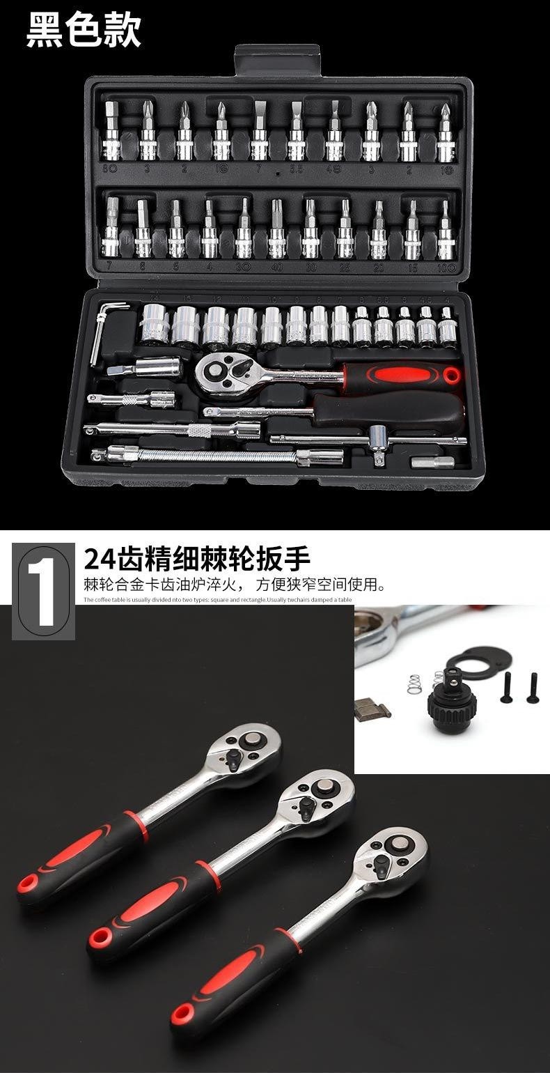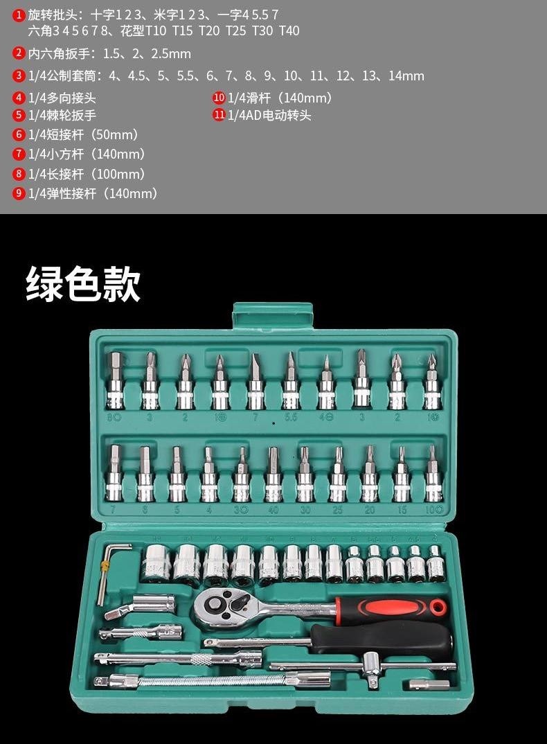 German Imported 46-Piece Tool Set 1/4 Small Flywheel Tool Set Small Ratchet Tool Socket Wrench for Car Repair