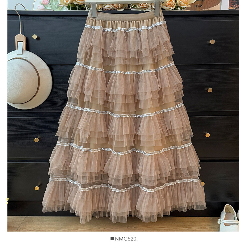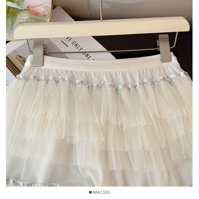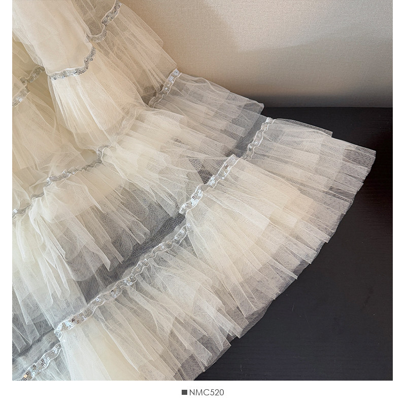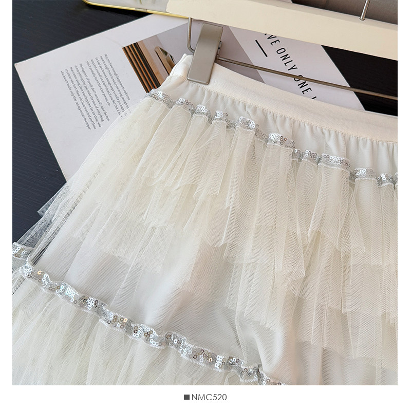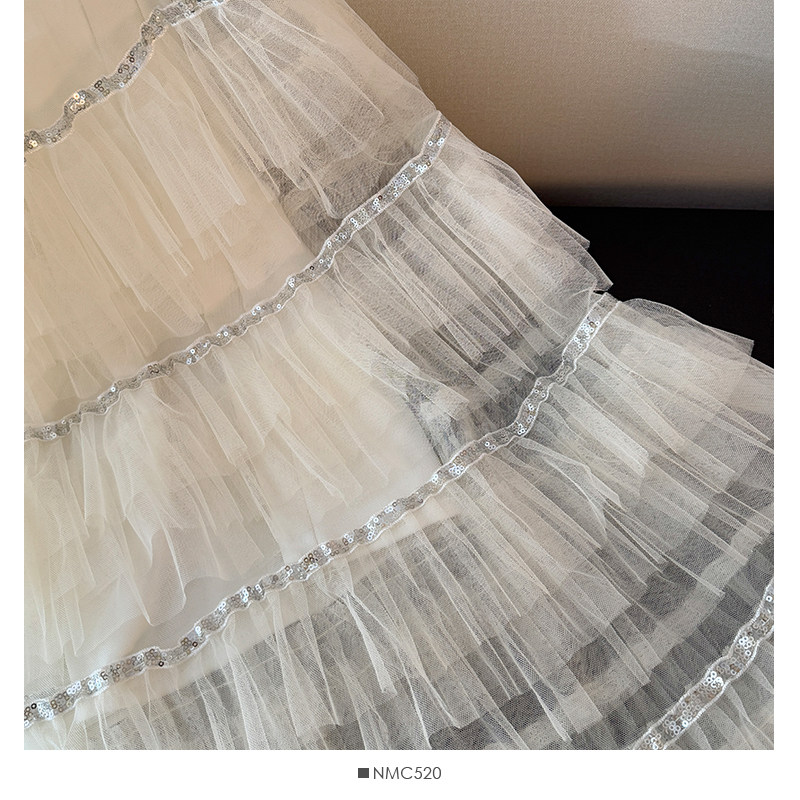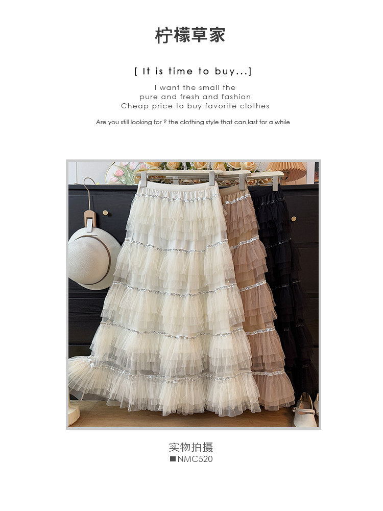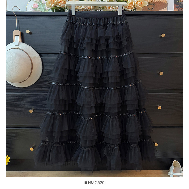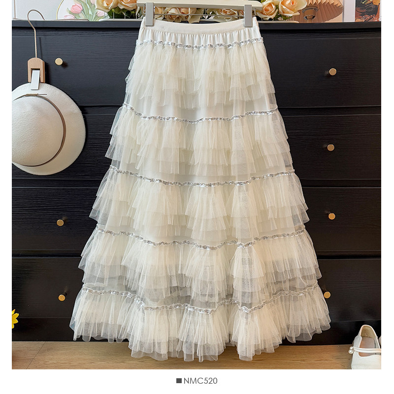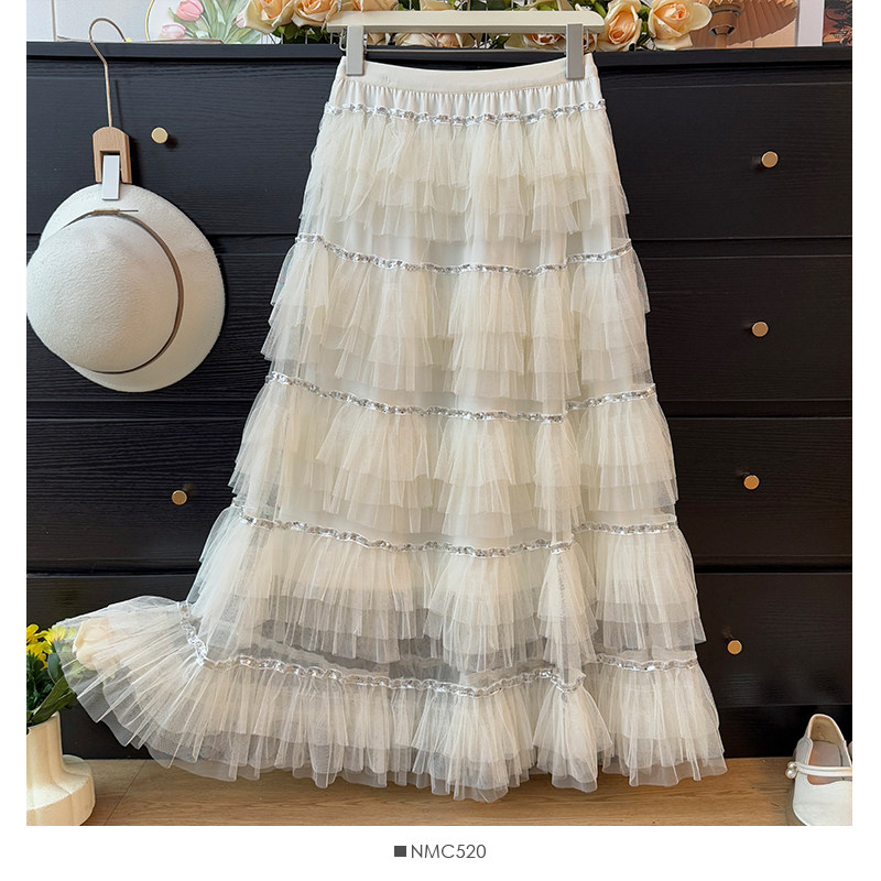 French Heavy Industry Sparkling Sequins Mesh Puffy Skirt Women's Autumn 2025 High Waist A-Line Loose Layer Cake Skirt
