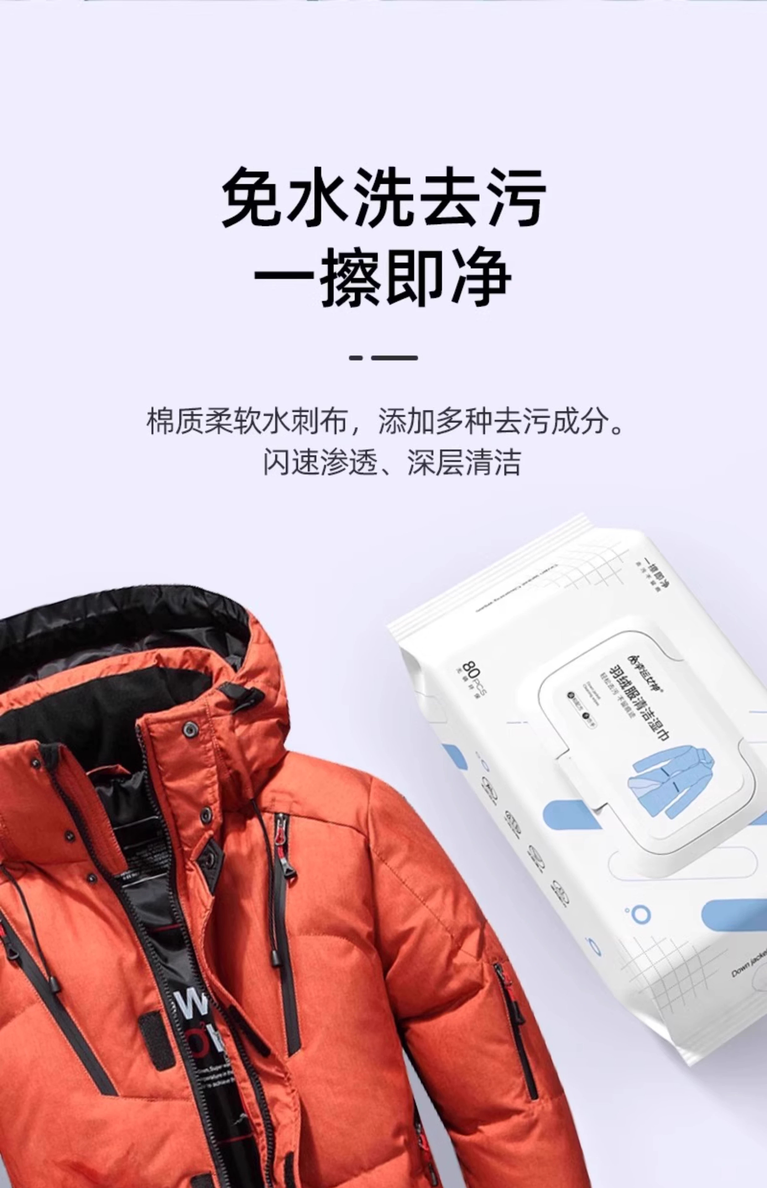 Down Jacket Cleaning Wipes, No-Rinse, Powerful Stain Removal, Cleaning Wet Wipes, Dry Cleaning Agent, Household Oil Stain Remover