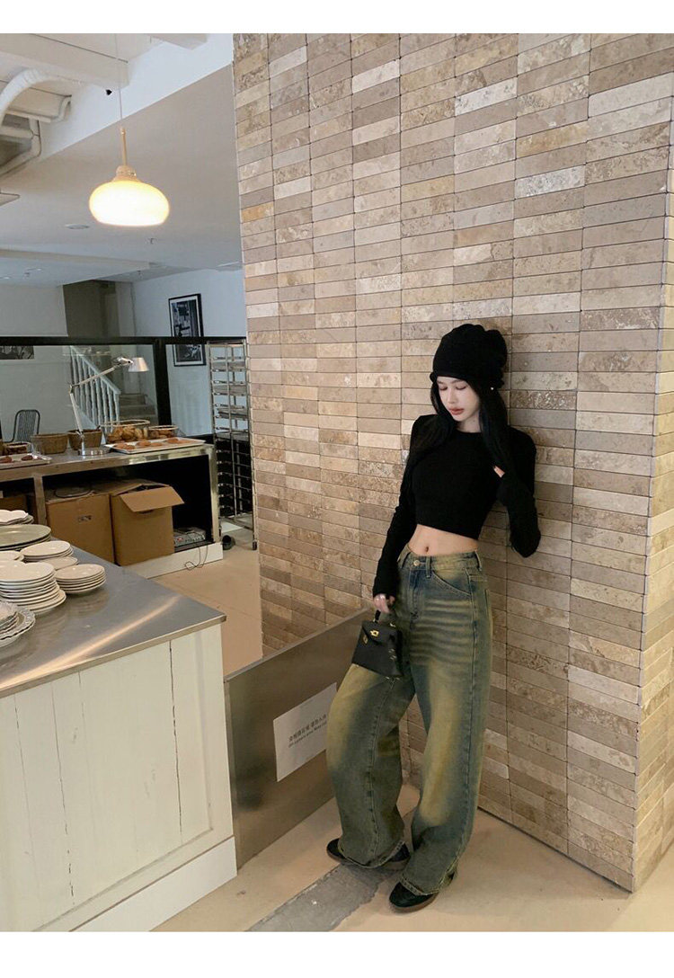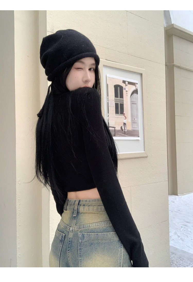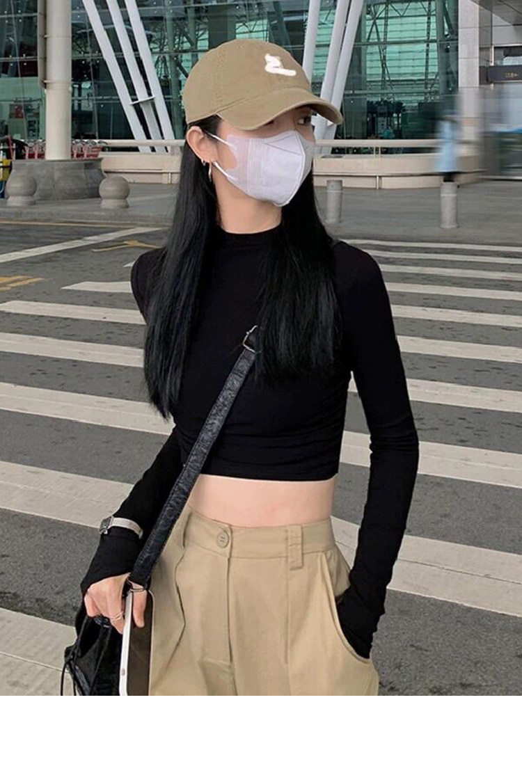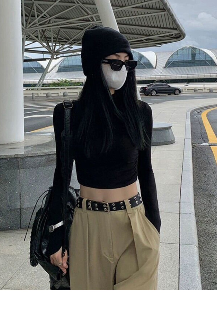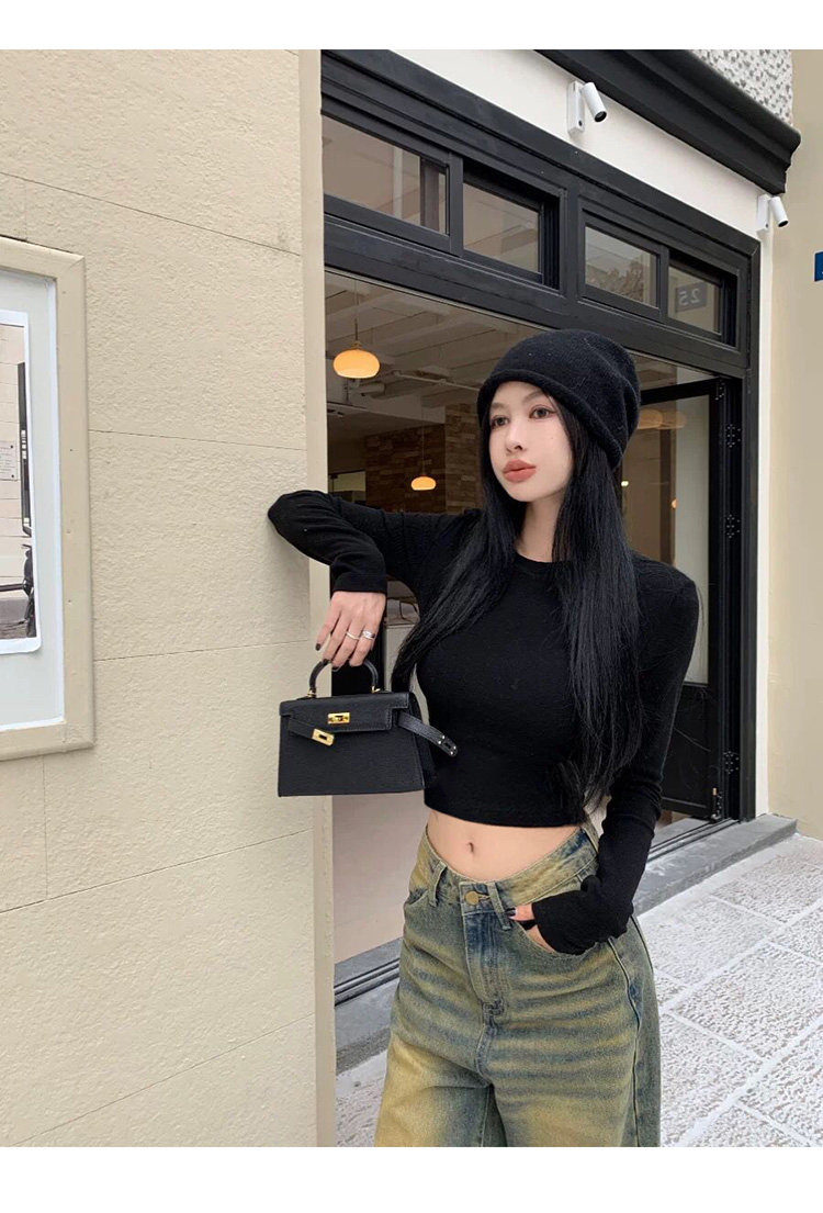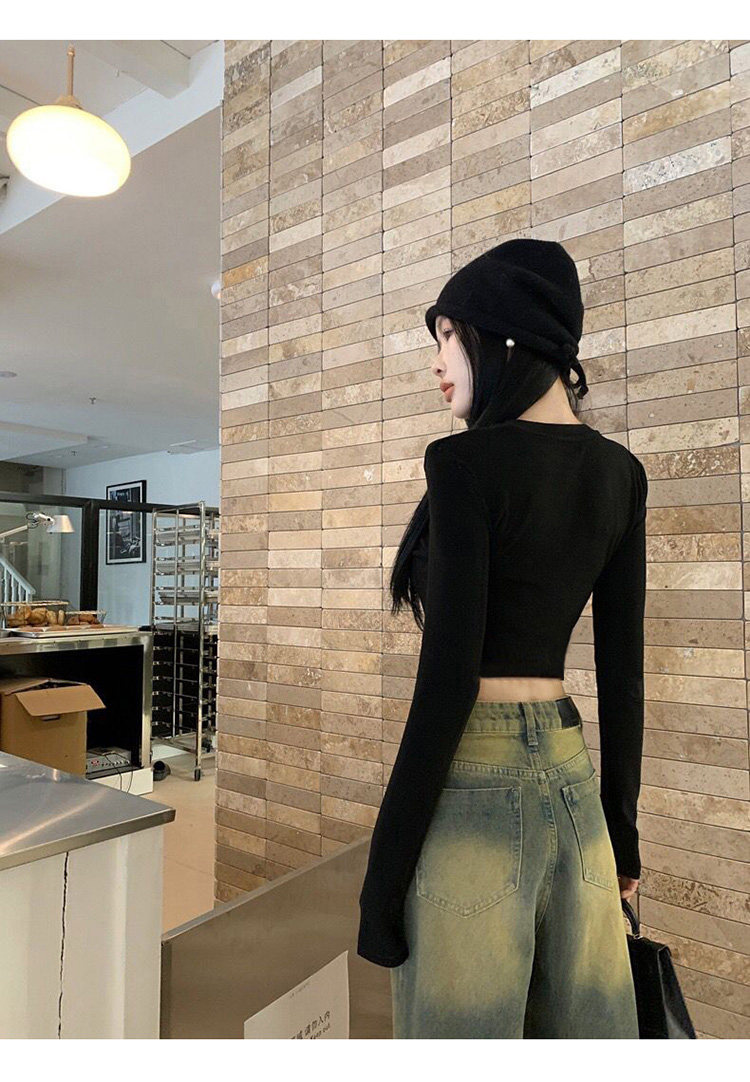Hot Girl Short High-Waisted Long-Sleeve Base T-Shirt for Women, Autumn and Winter Pure Desire Style American-Style Slim-Fit Slimming Top