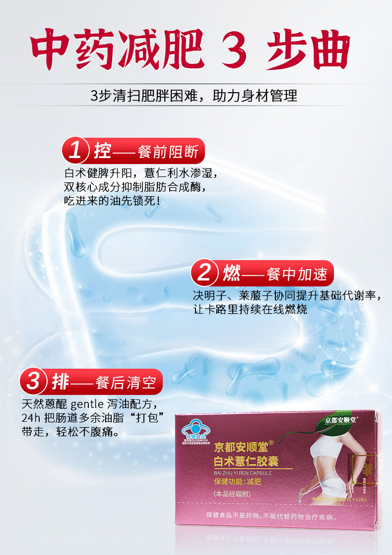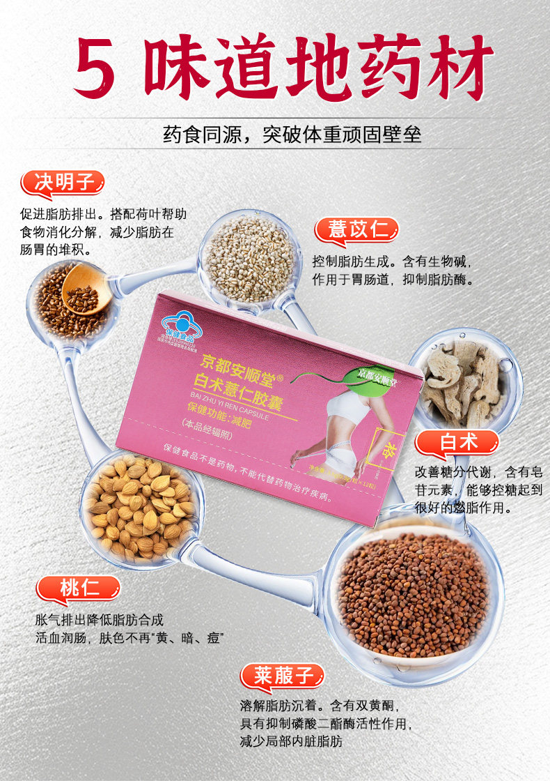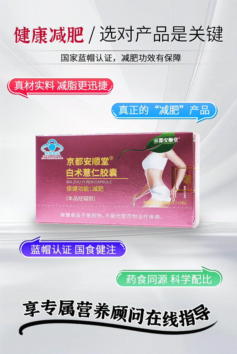 Kyoto Anshun Hall White Atractylodes and Coix Seed Capsules Official Genuine Product for Slimming, Fat Burning, Fat Reduction, Oil Elimination, and Metabolism Boosting