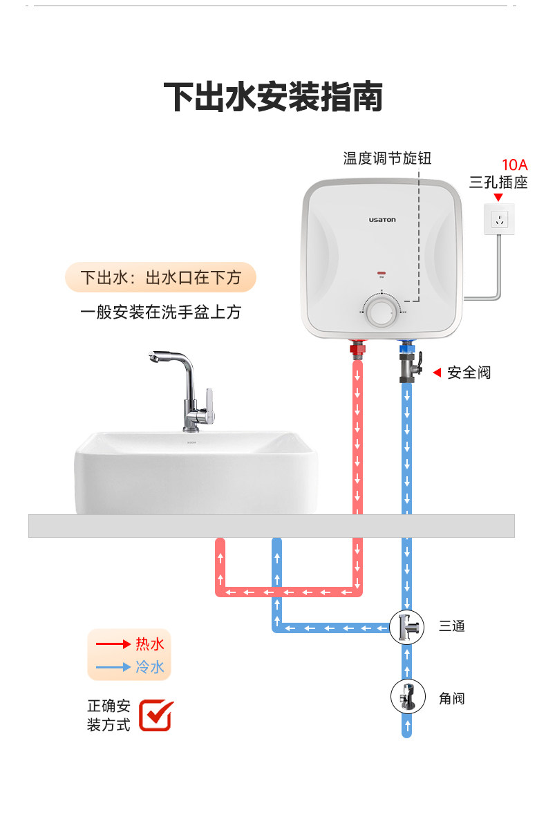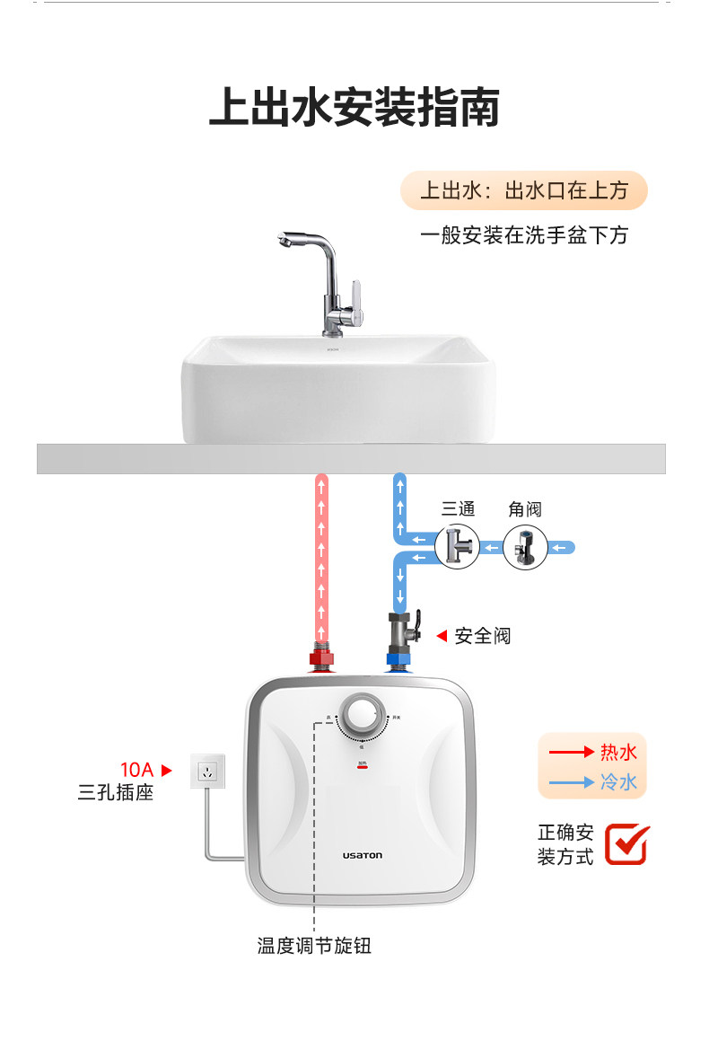 Ashington Small Kitchen Water Storage Type Household Kitchen and Bathroom Under-Counter Water Dispenser Small Electric Water Heater Wall-Mounted
