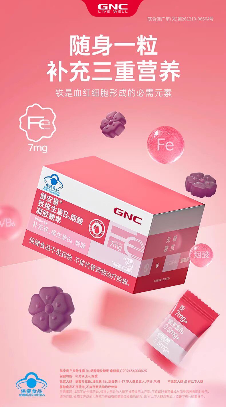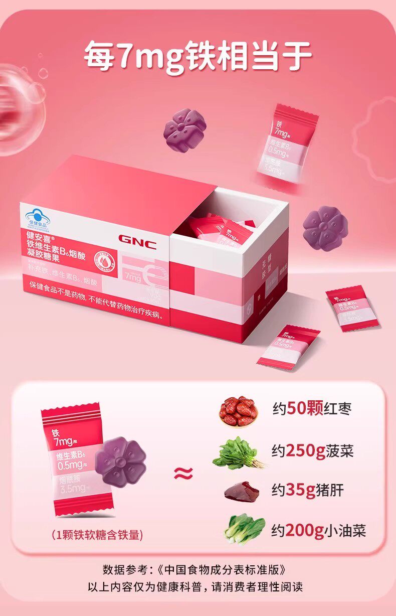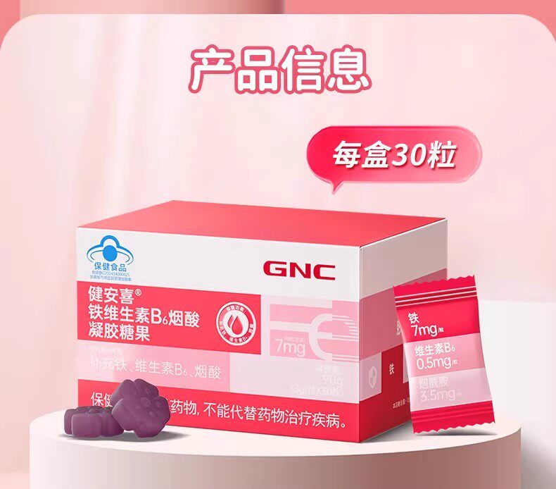 Gnc Iron Vitamin B6 Niacin Gummies for Teenagers, Adults, Men, Women, and Pregnant Women Iron Supplement Vb Gummies
