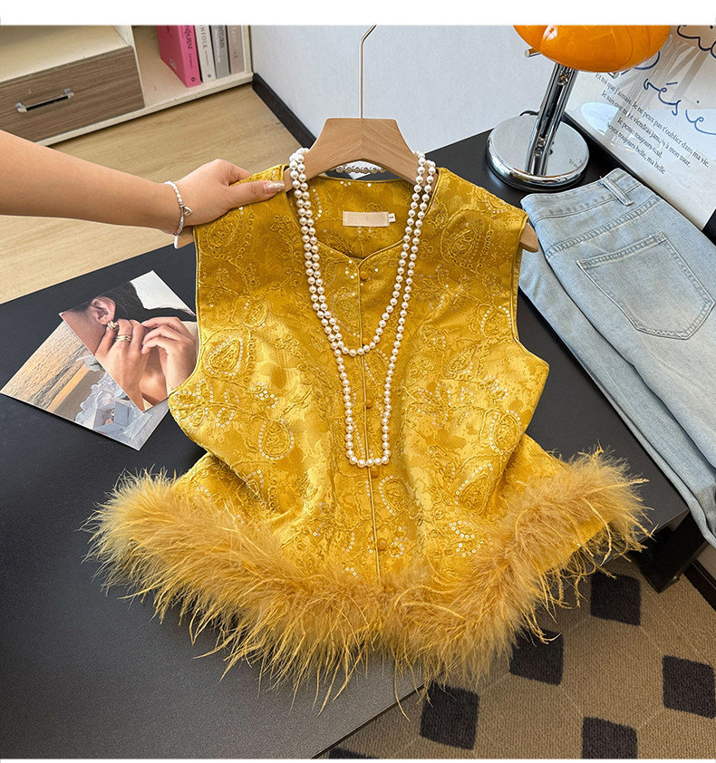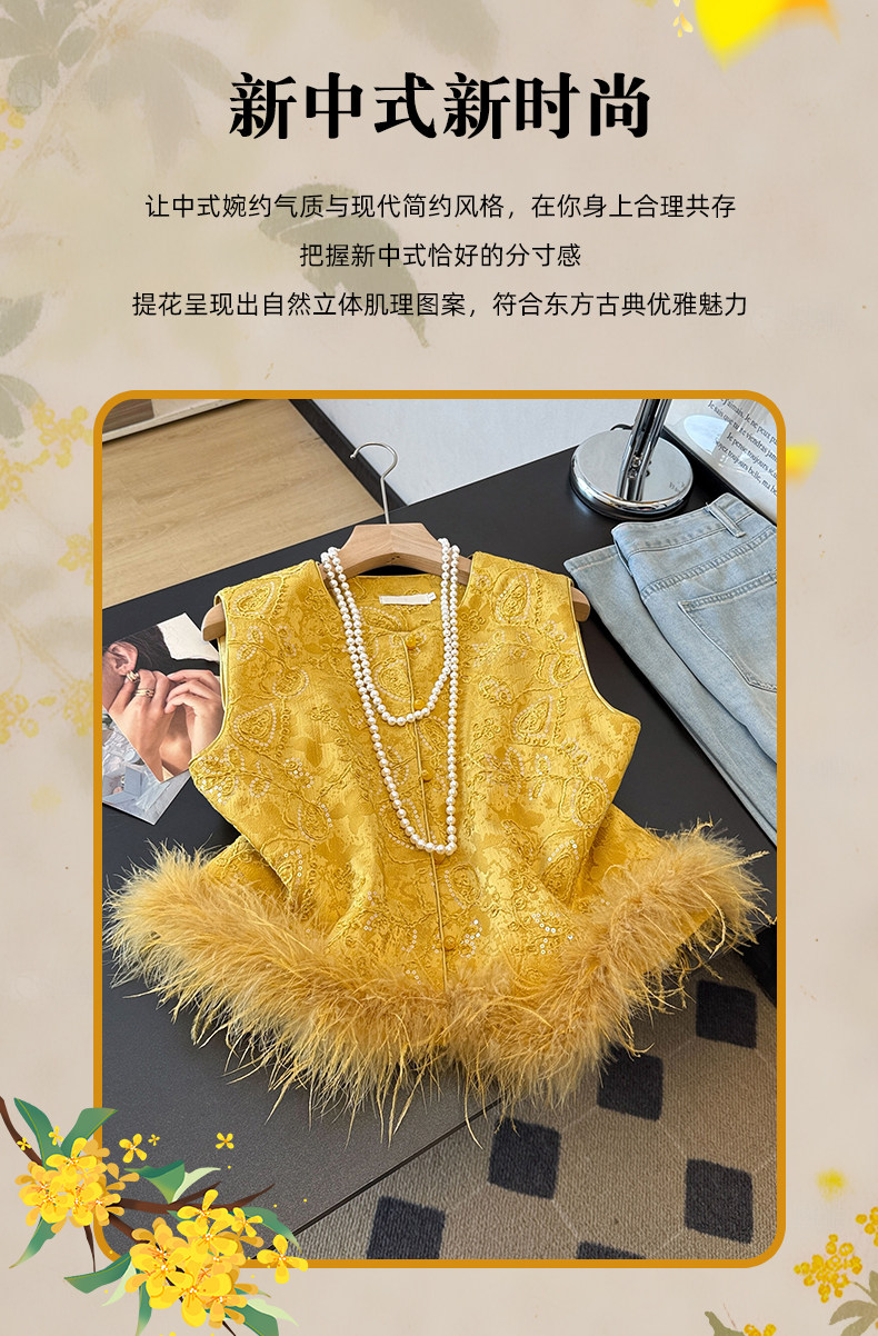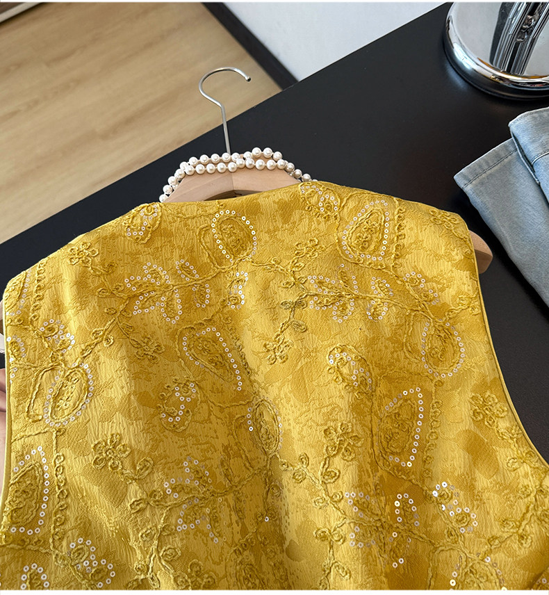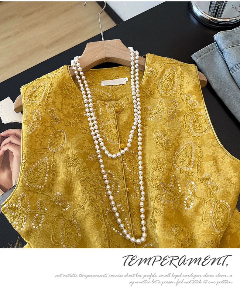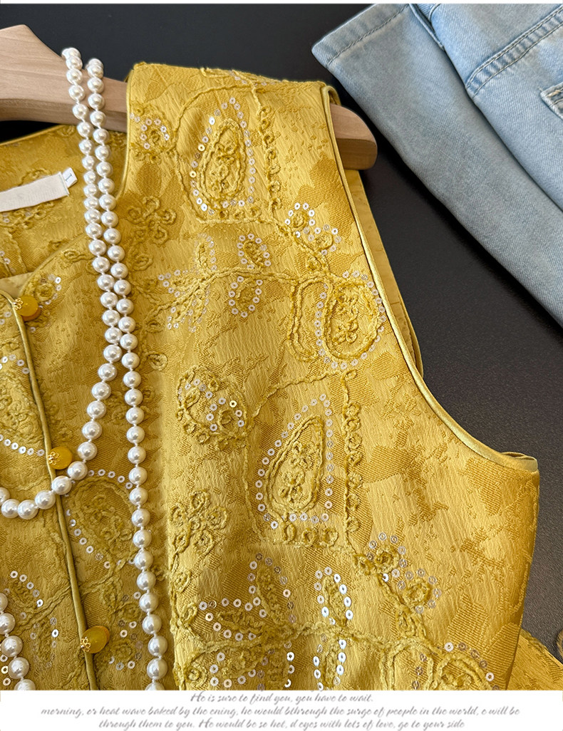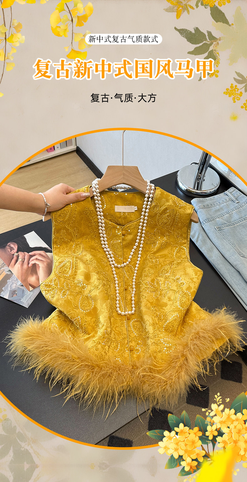 Actual shot of new Chinese style Tang suit satin heavy jacquard round collar quilted thickened disc buckle sequined vest vest