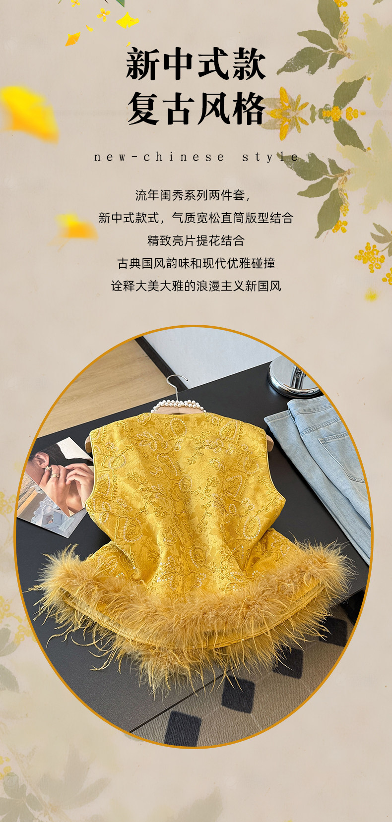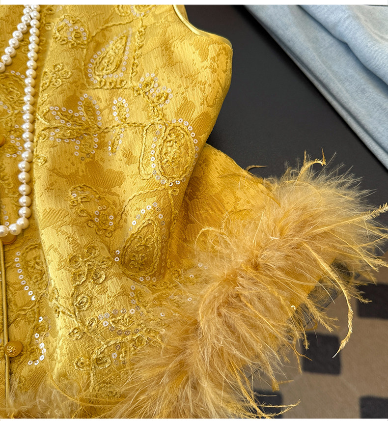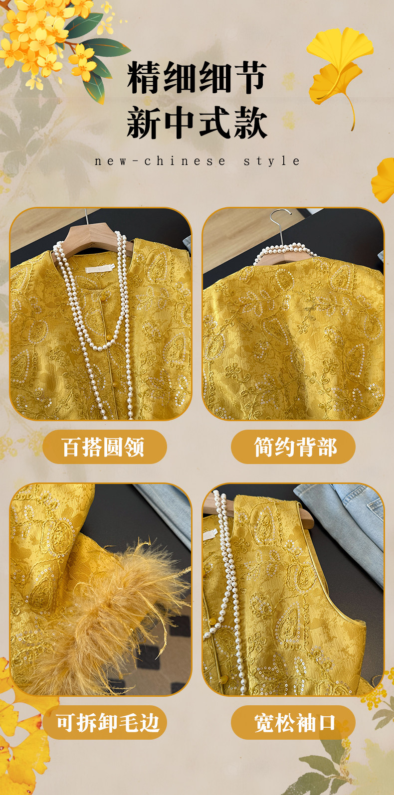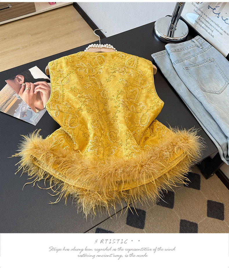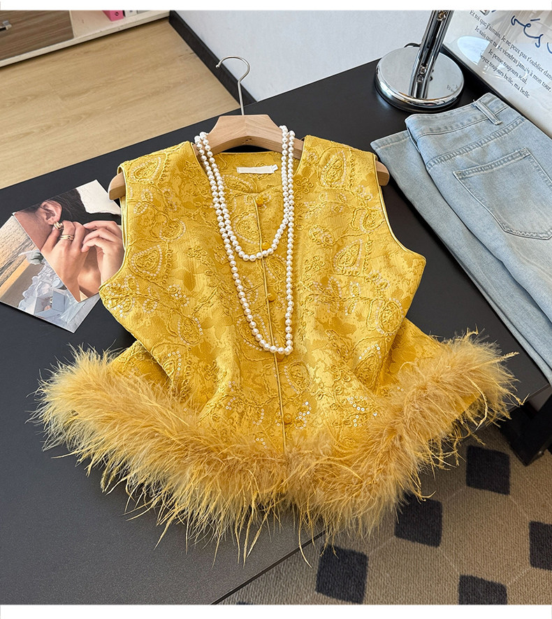 Actual shot of new Chinese style Tang suit satin heavy jacquard round collar quilted thickened disc buckle sequined vest vest
