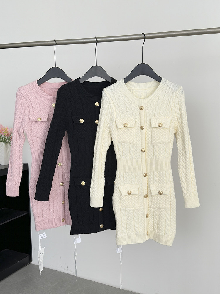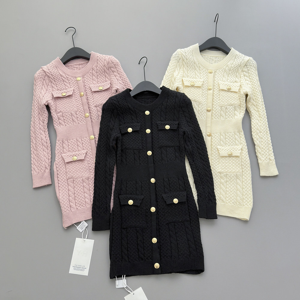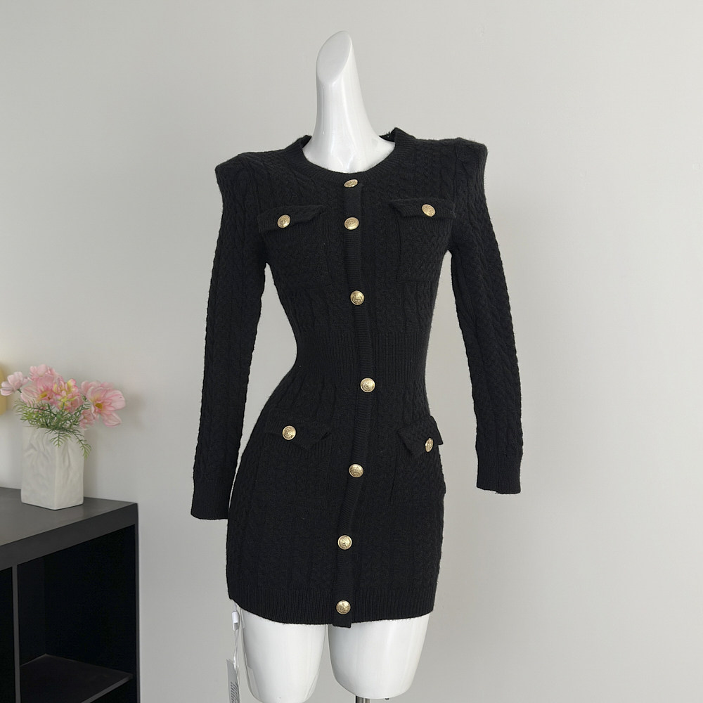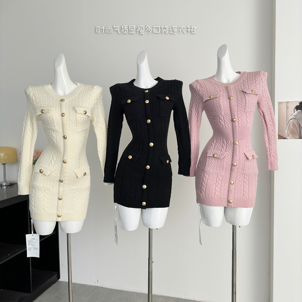 Lin Xiaxia's 2025 Autumn and Winter New Design Fashionable and Elegant Slimming Multi-Pocket Dress