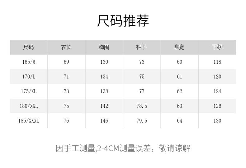 China (cm) 165 / 88-90 170 / 96-98 175 / 108-110 180 / 118-122 185 / 126-130