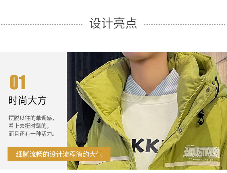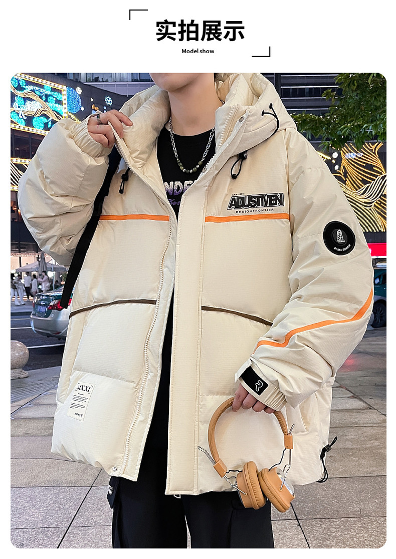Men's Stylish Hooded down Jacket, New Winter Thickened Warm Versatile Loose Fit 90% White Duck down Cold-Proof Coat