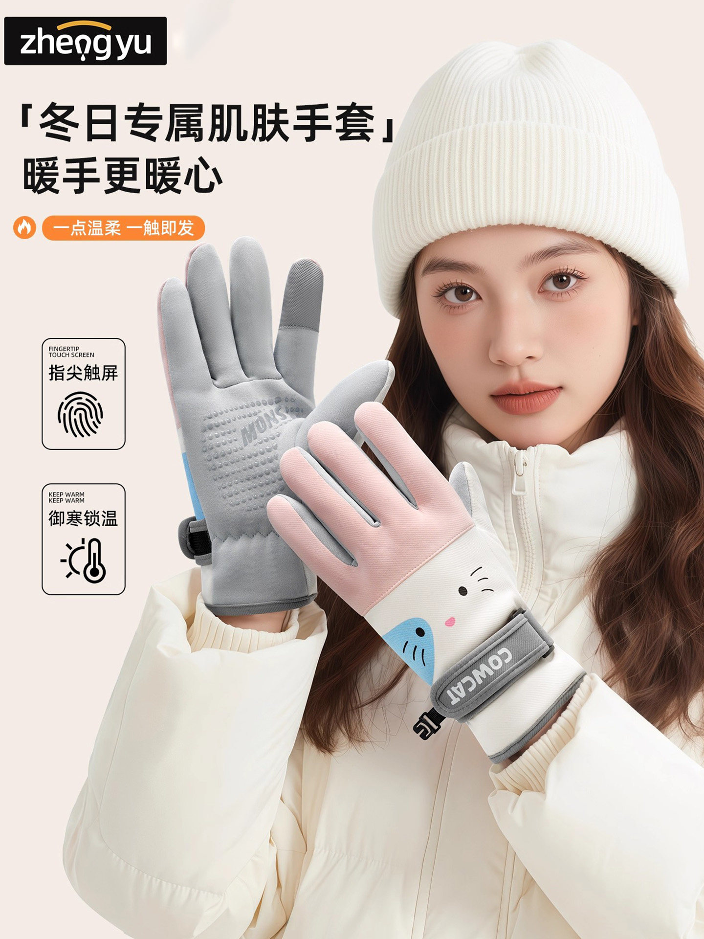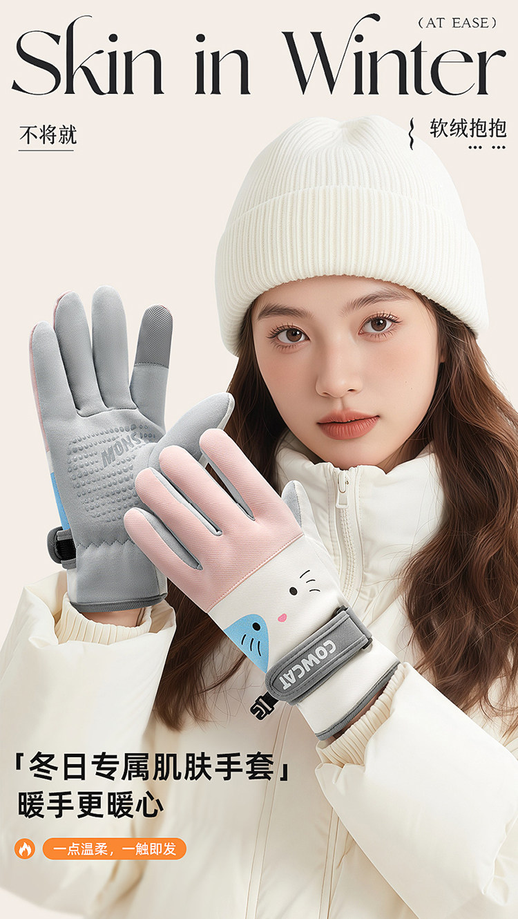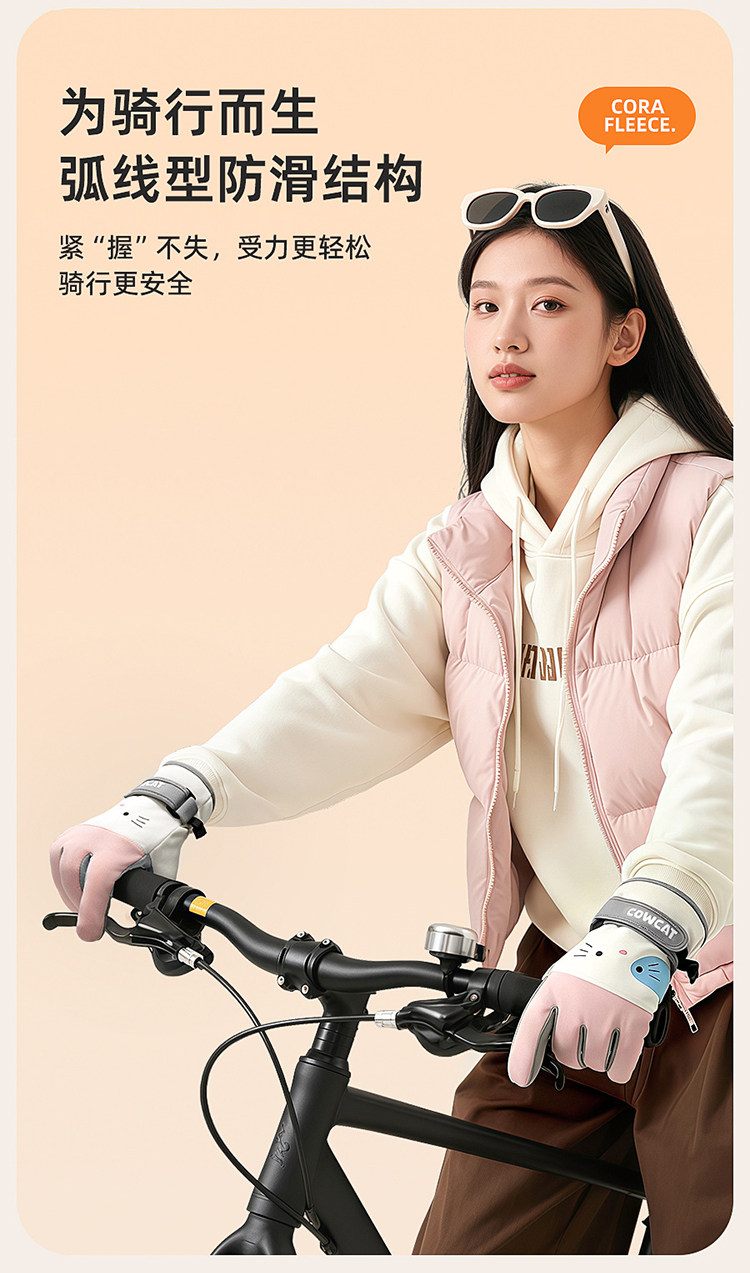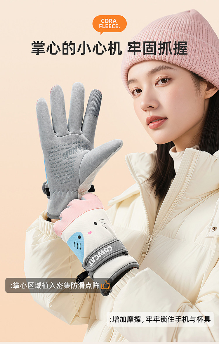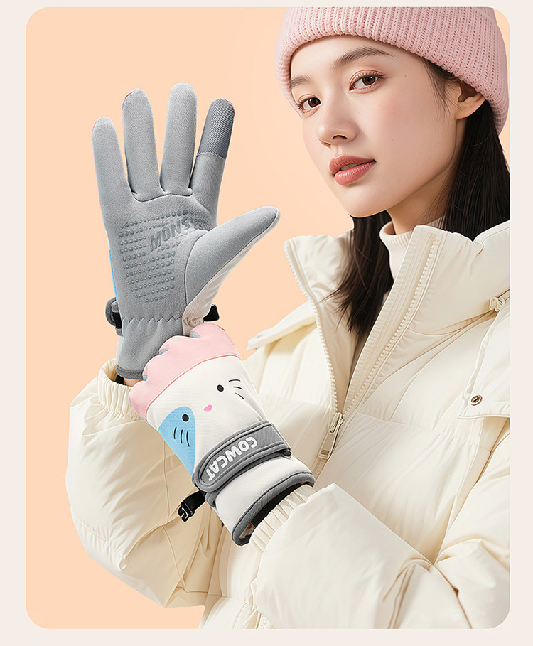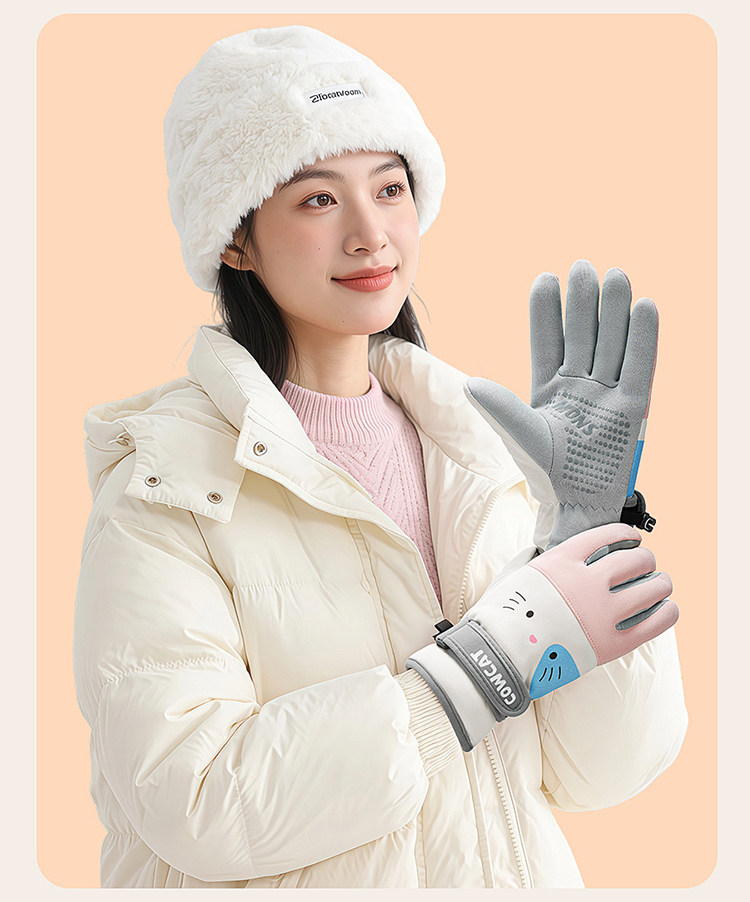 Color Classification Winter Cycling Essentials - Hello Kitty Pink⭐Fleece-Lined and Extra Thick.⭐Windproof, Waterproof and Coldproof [Palm Pu + Touch Screen],Winter Cycling Essentials: Milk Tea Meow ⭐ Fleece-Lined and Extra Thick. ⭐ Windproof, Waterproof and Coldproof [Palm Pu + Touch Screen]