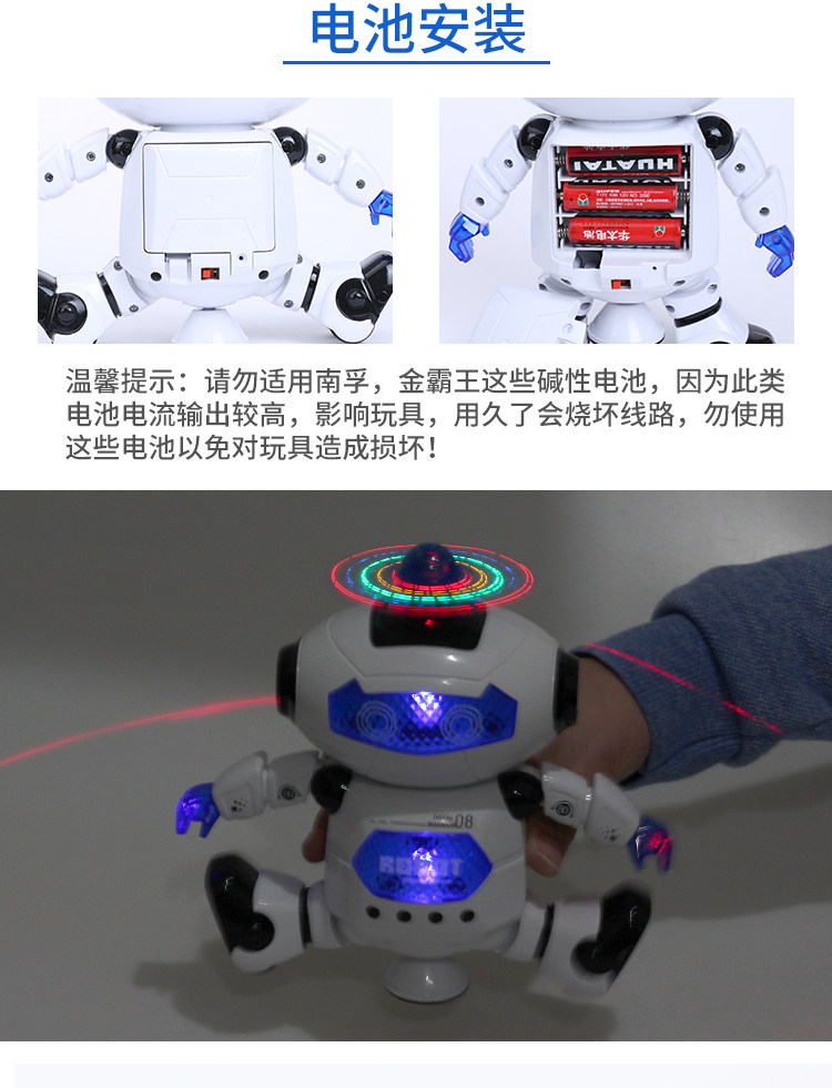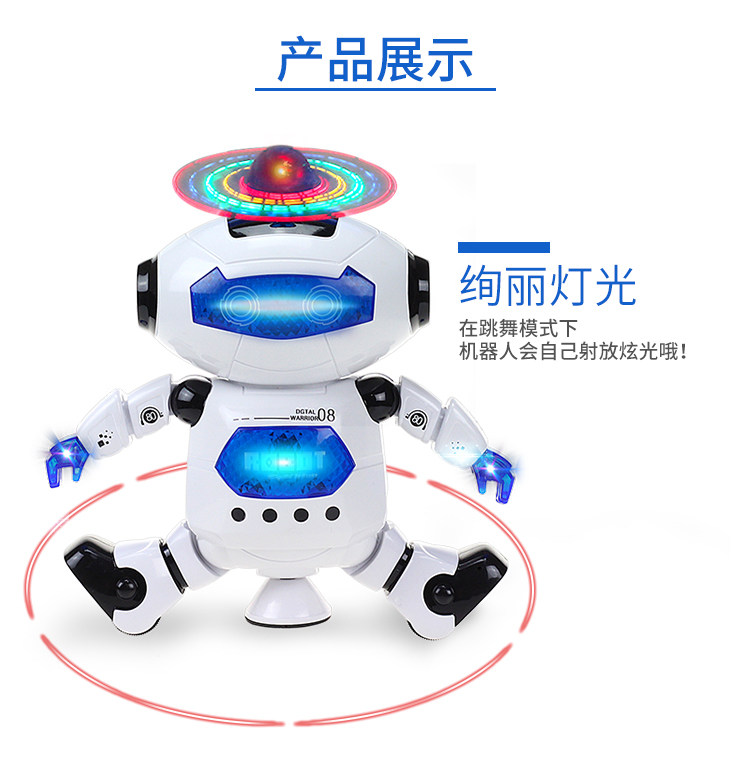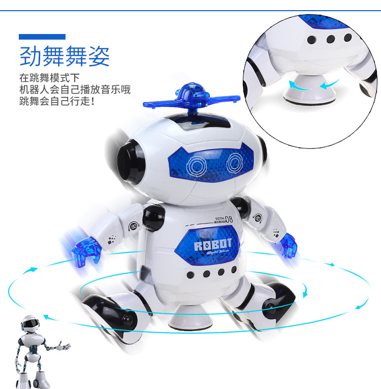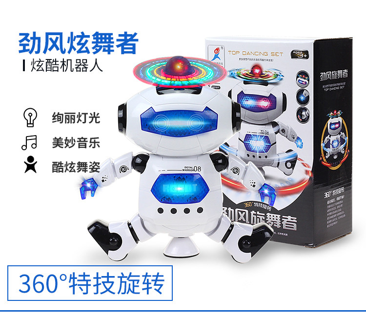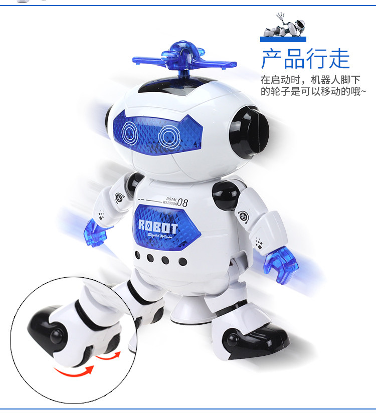 Toddler electric dancing robot 360-degree rotation with built-in light and music, smart toy gift for children aged 2-6 years old