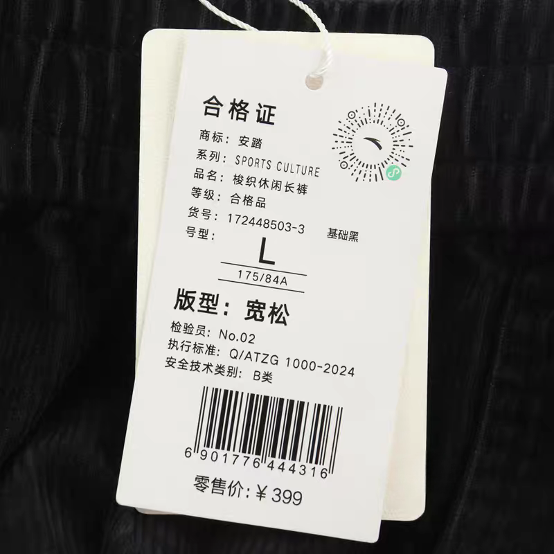 ANTA corduroy overalls unisex winter American skateboard loose straight-leg sweatpants 172448503