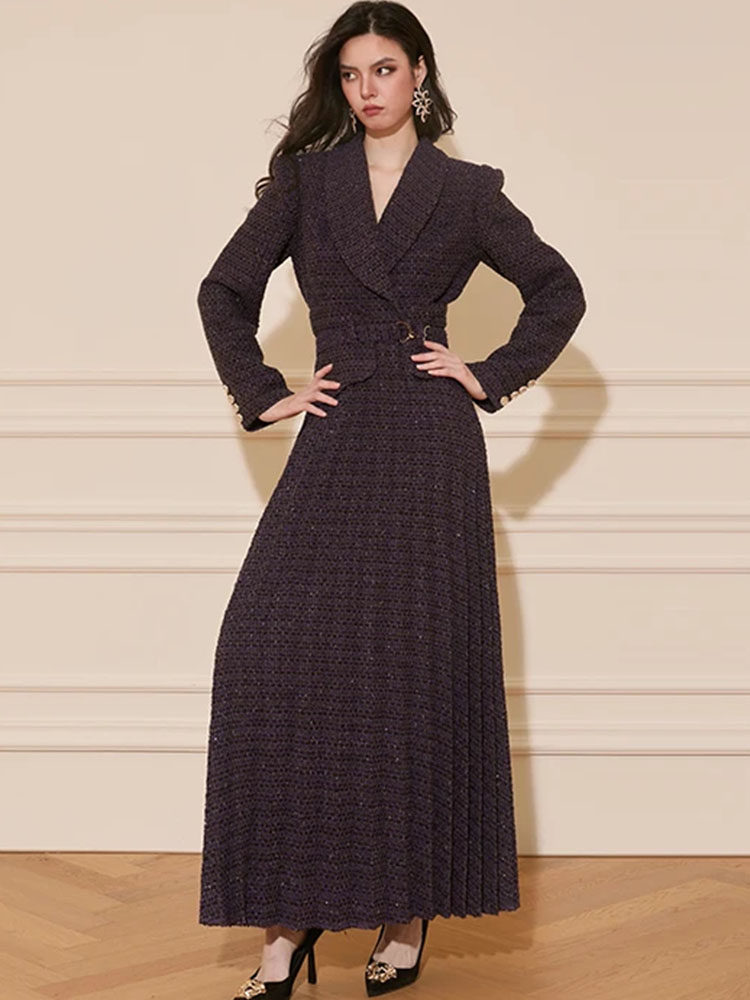 Mijie's New Autumn and Winter French-Style Tweed Dress for Women, Chanel-Inspired, Waist-Cinching, Slimming Long Dress with an Elegant and Vintage Vibe