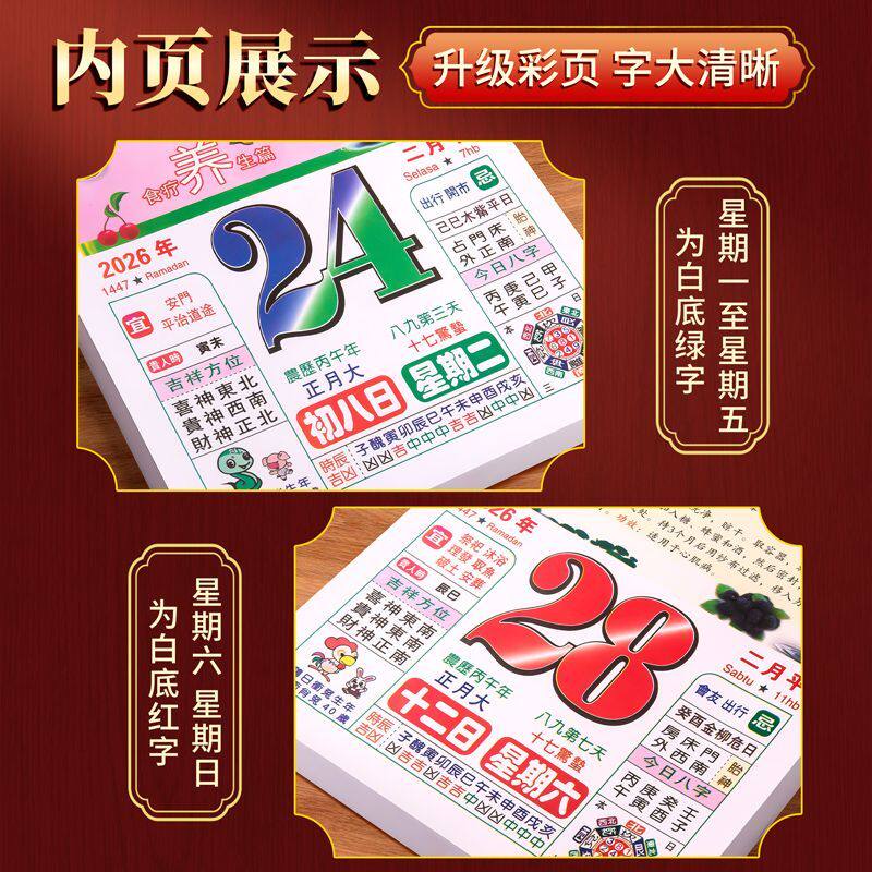 2026 Year of the Horse Colorful Old Yellow Calendar Tear-Off Wall Calendar Food and Health Lunar Calendar Large Monthly Calendar One Day Per Tear-Off Page