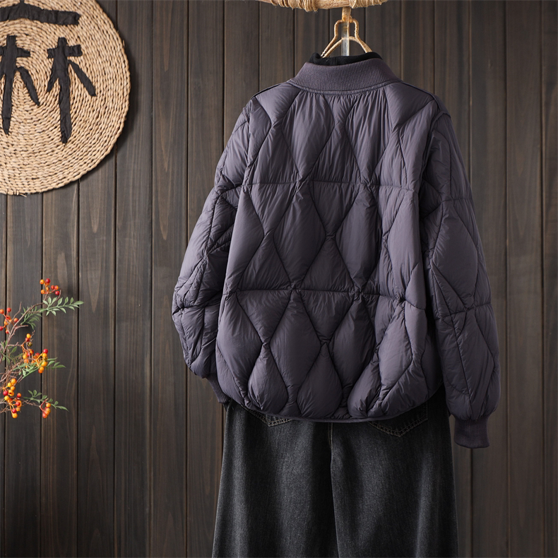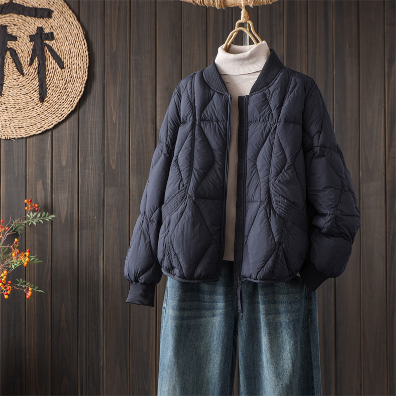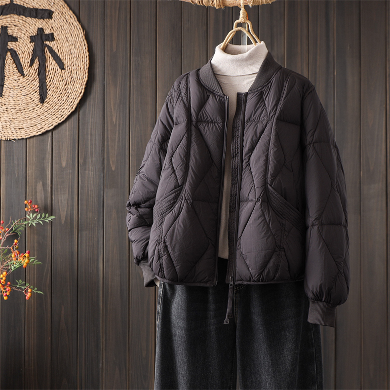 Trendy brand fashionable light down jacket for women 2025 winter short baseball collar silhouette thickened jacket