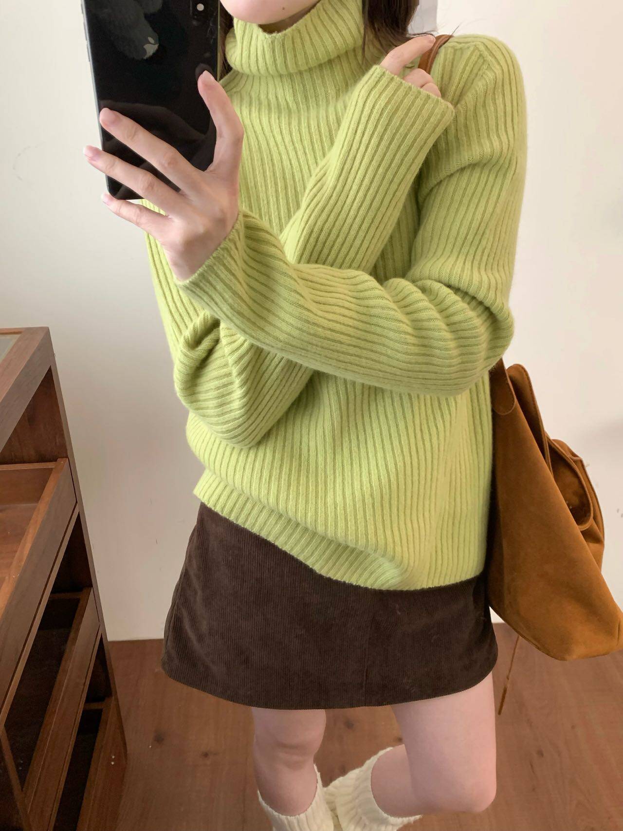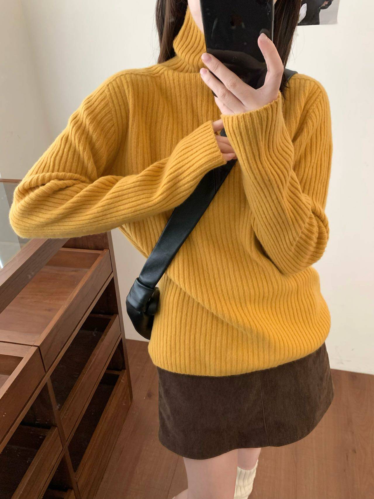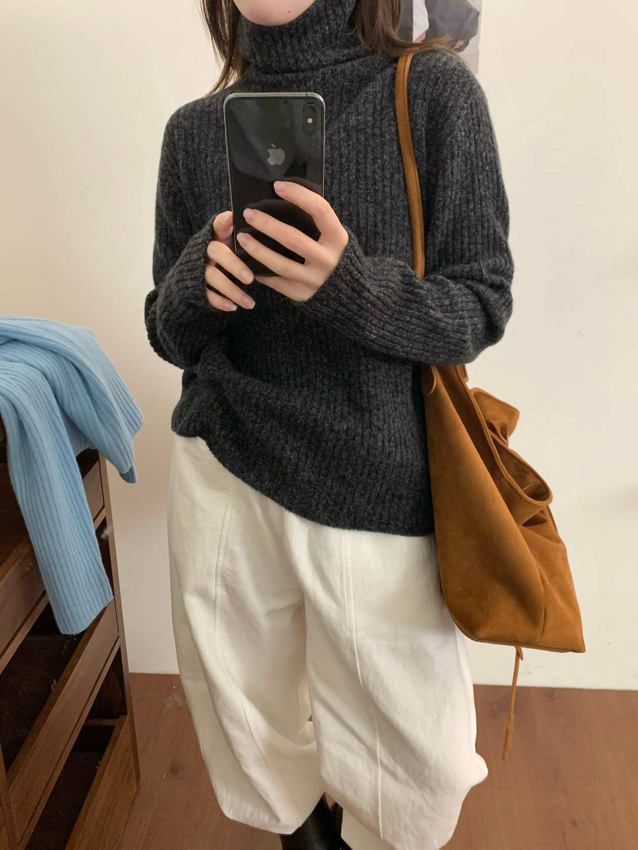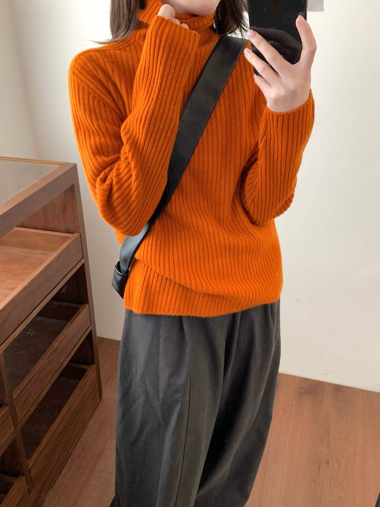 High-Quality Full Wool European Style 9806 Authentic Ribbed Turtleneck Sweater, Long-Sleeve Minimalist Versatile Slim-Fit Knit Base Shirt