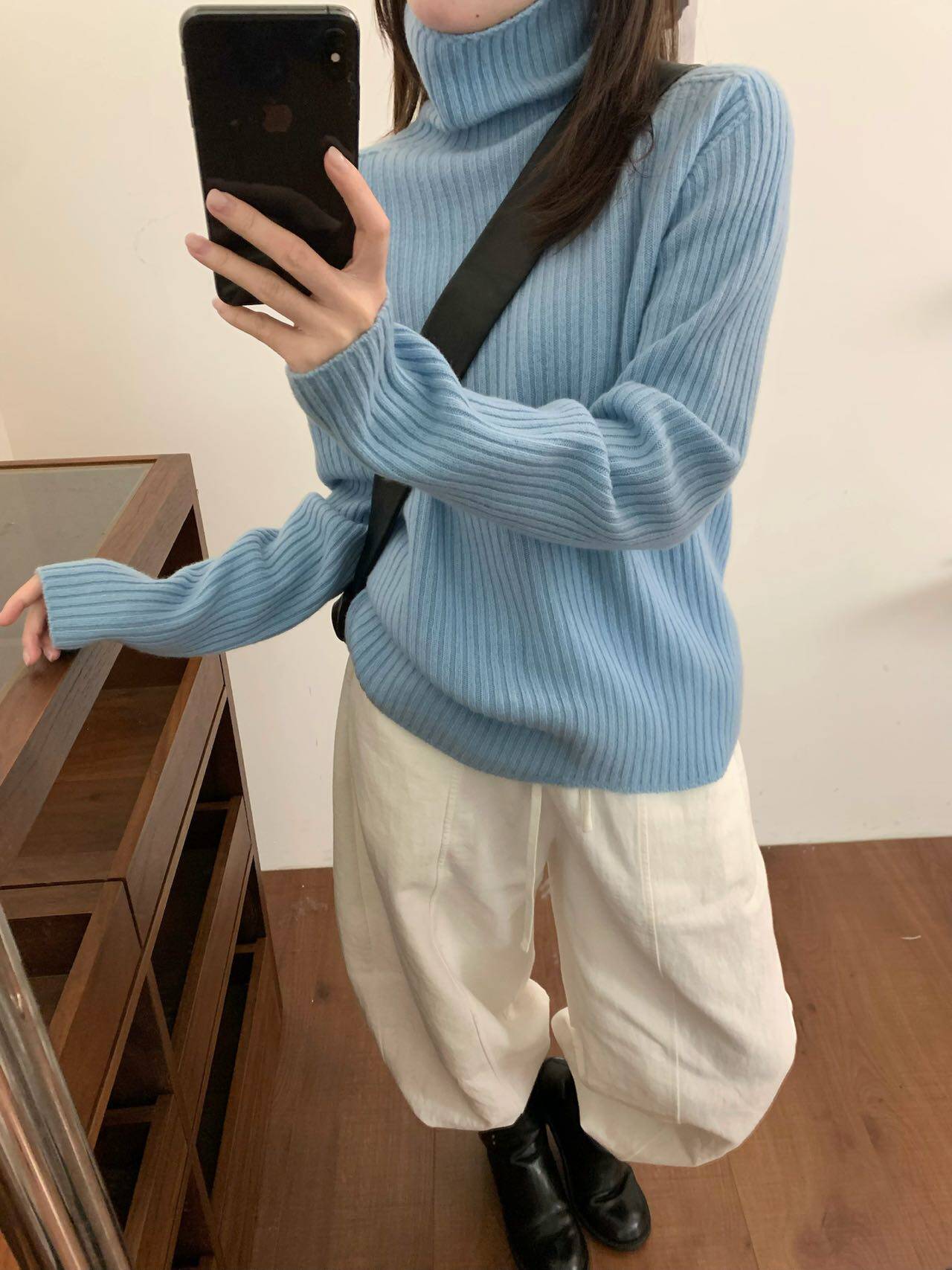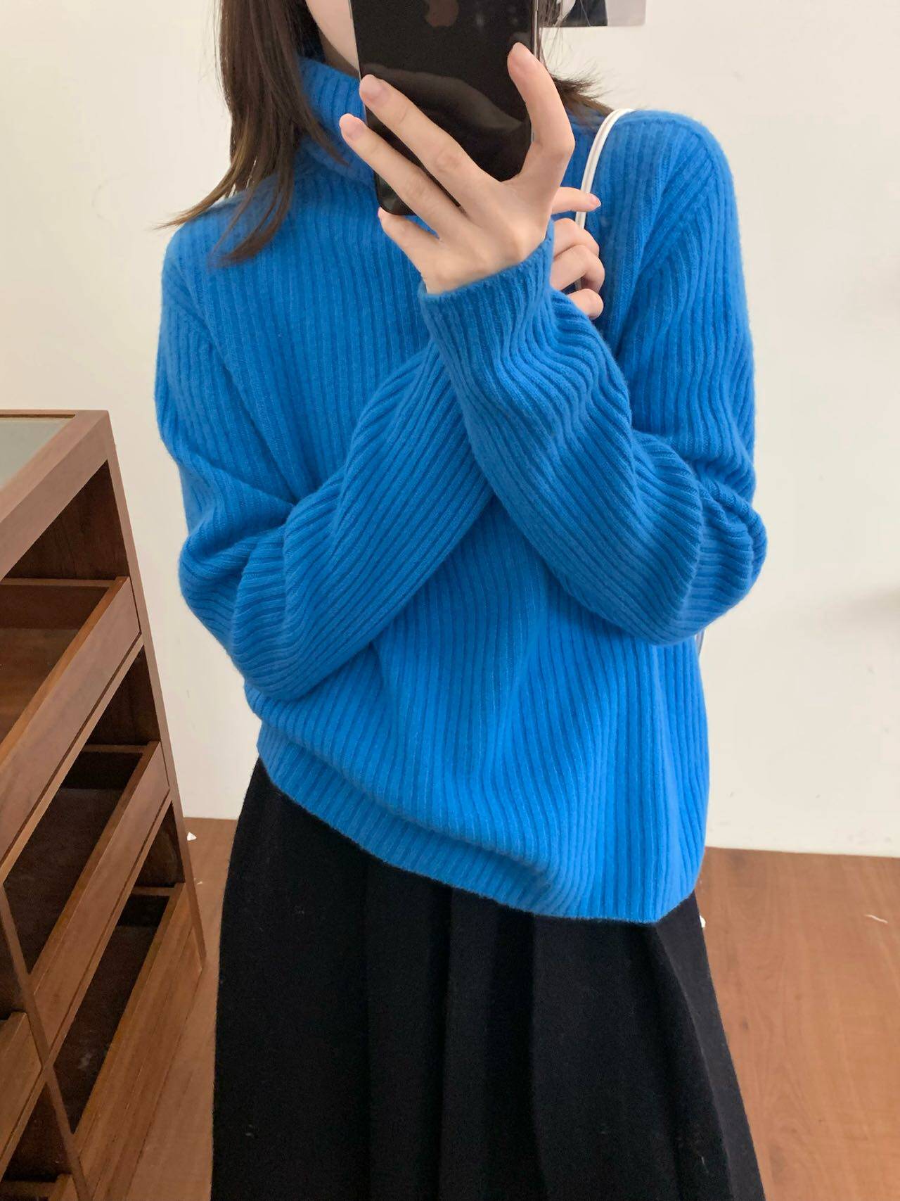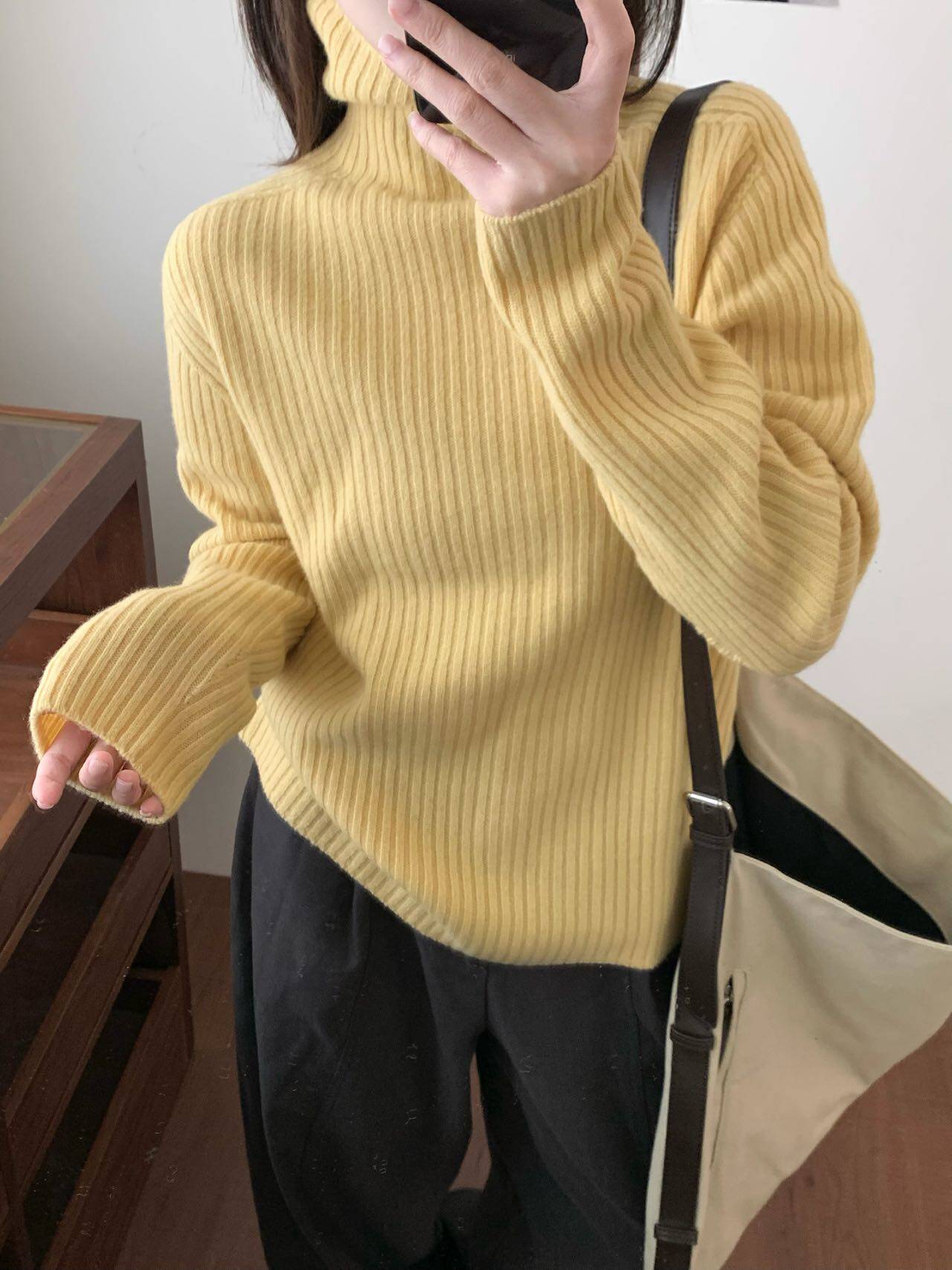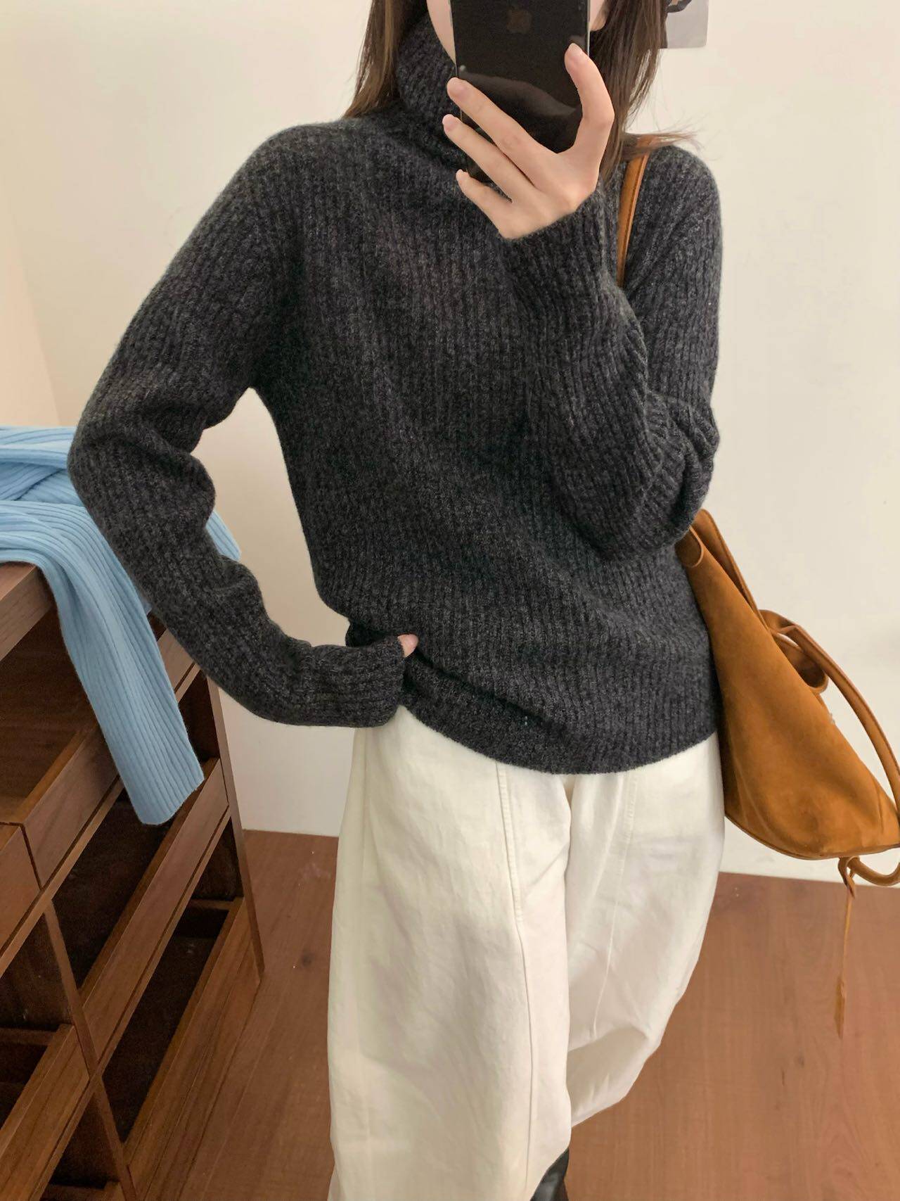 High-Quality Full Wool European Style 9806 Authentic Ribbed Turtleneck Sweater, Long-Sleeve Minimalist Versatile Slim-Fit Knit Base Shirt