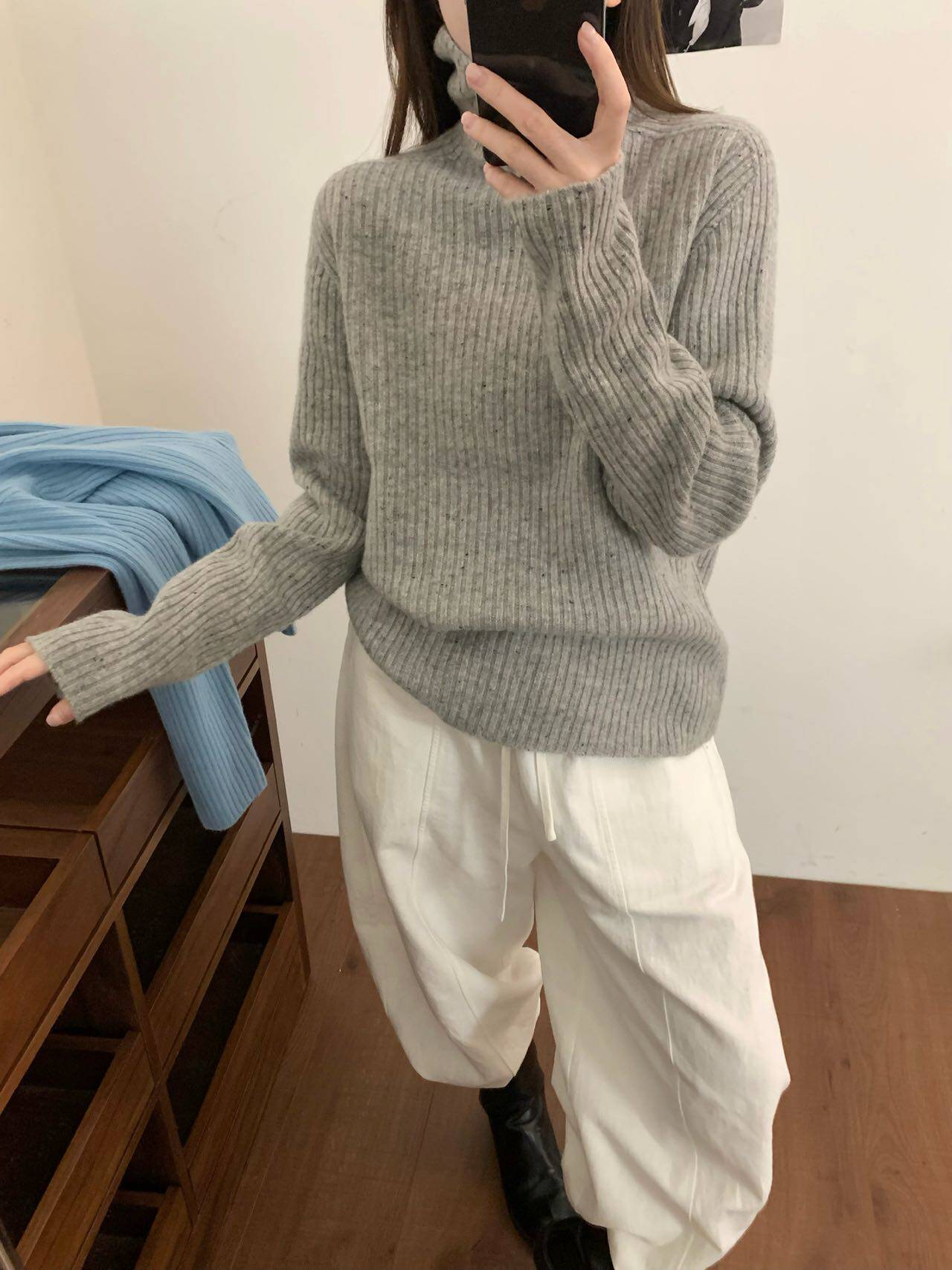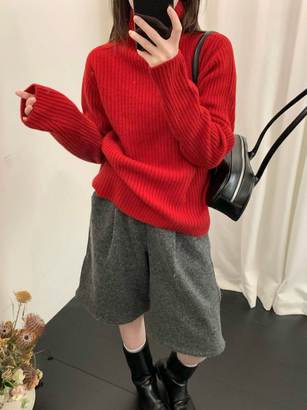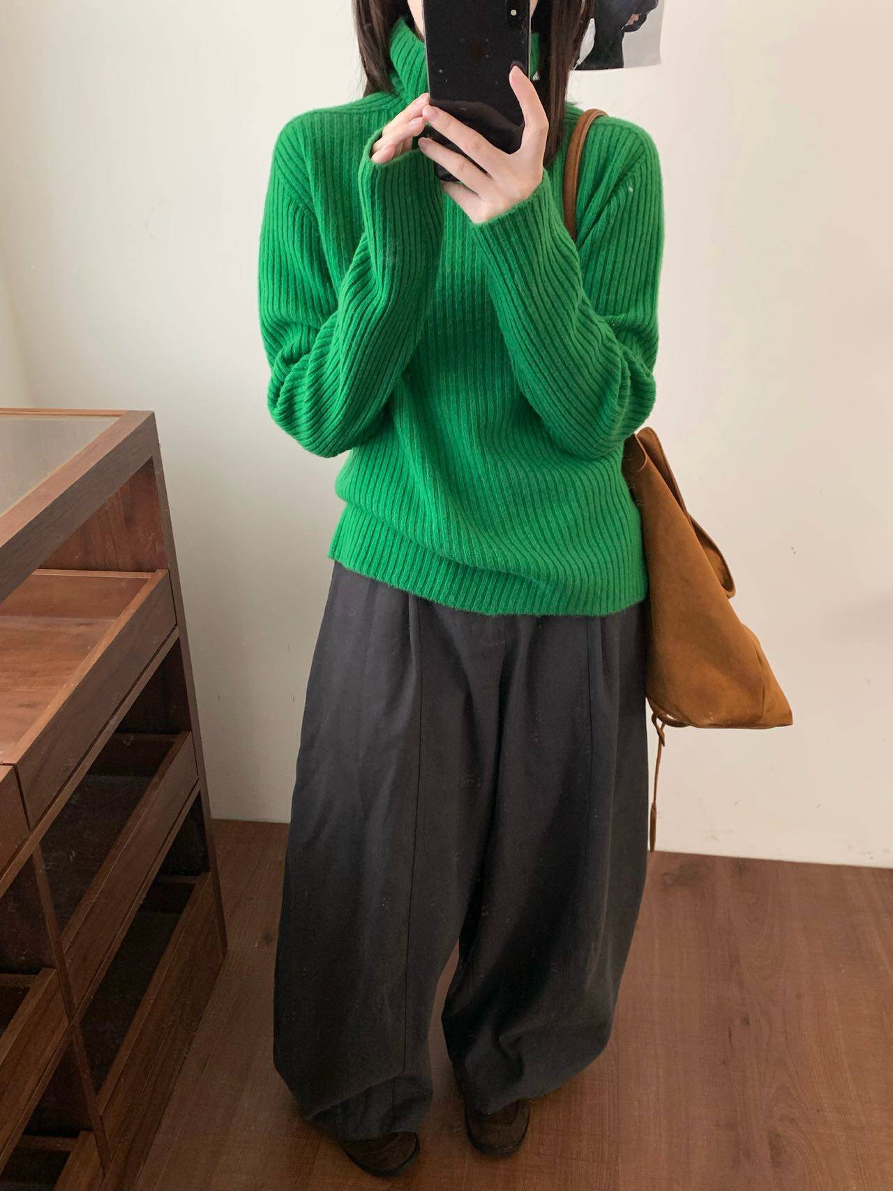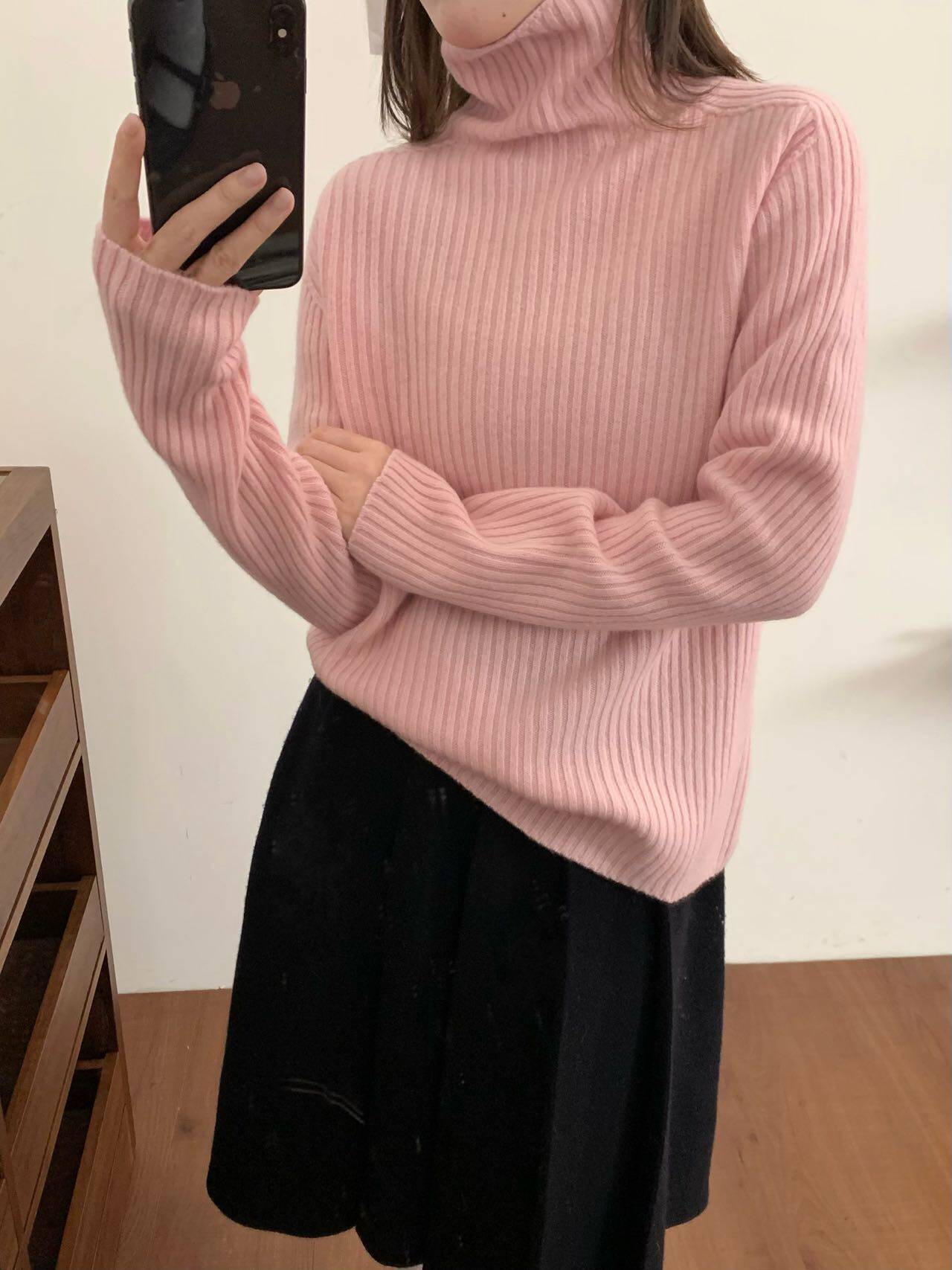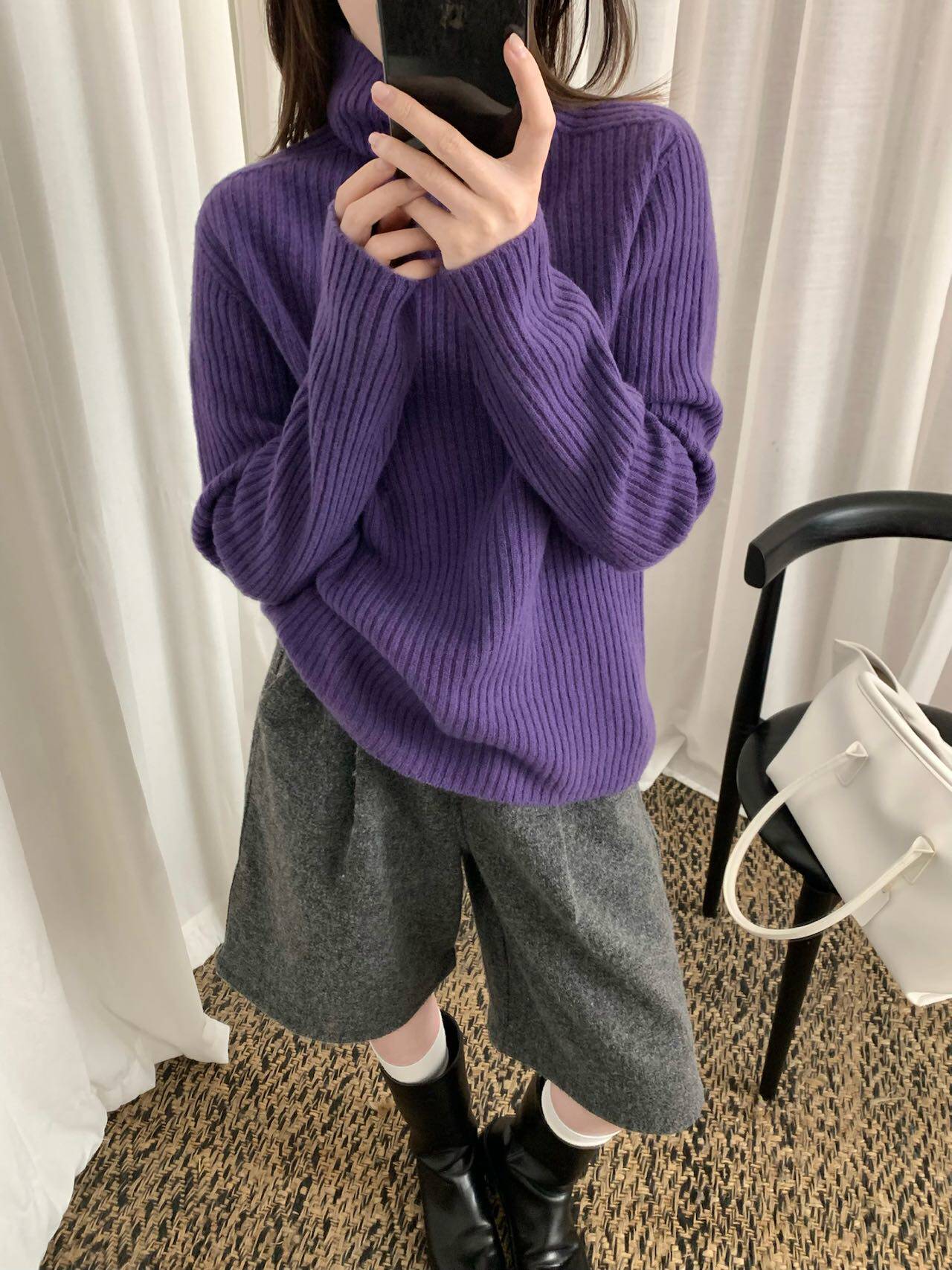 High-Quality Full Wool European Style 9806 Authentic Ribbed Turtleneck Sweater, Long-Sleeve Minimalist Versatile Slim-Fit Knit Base Shirt
