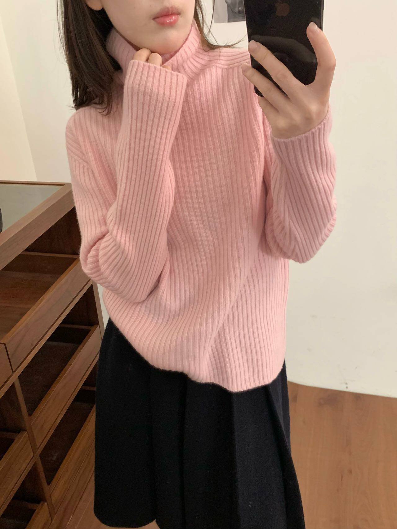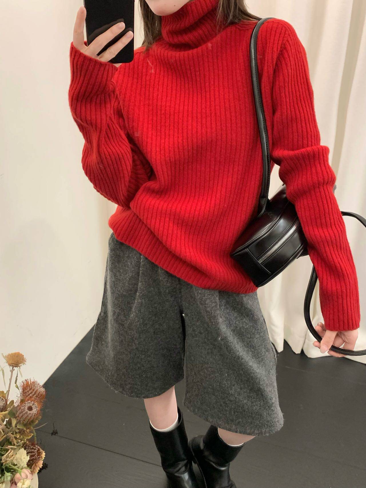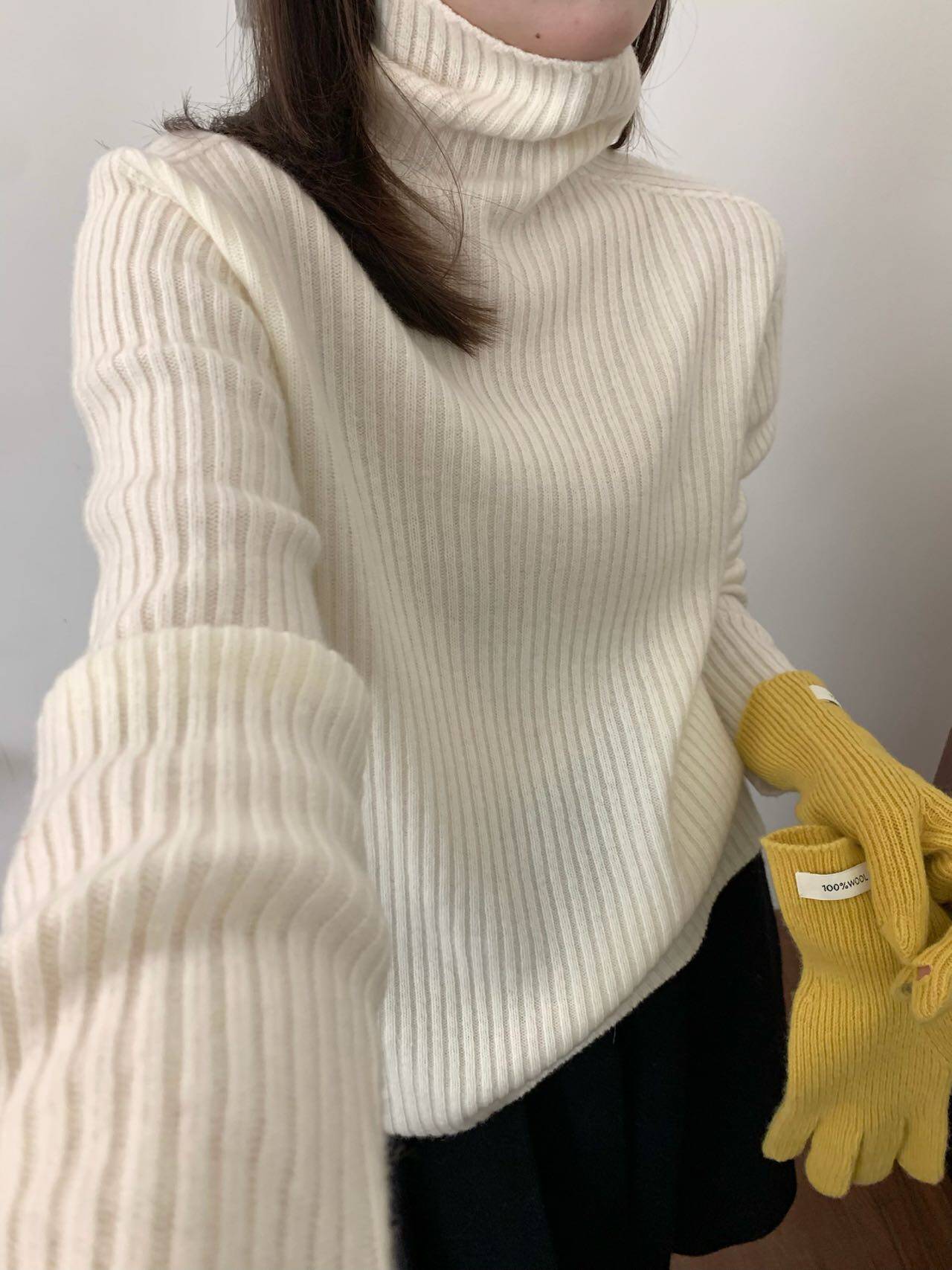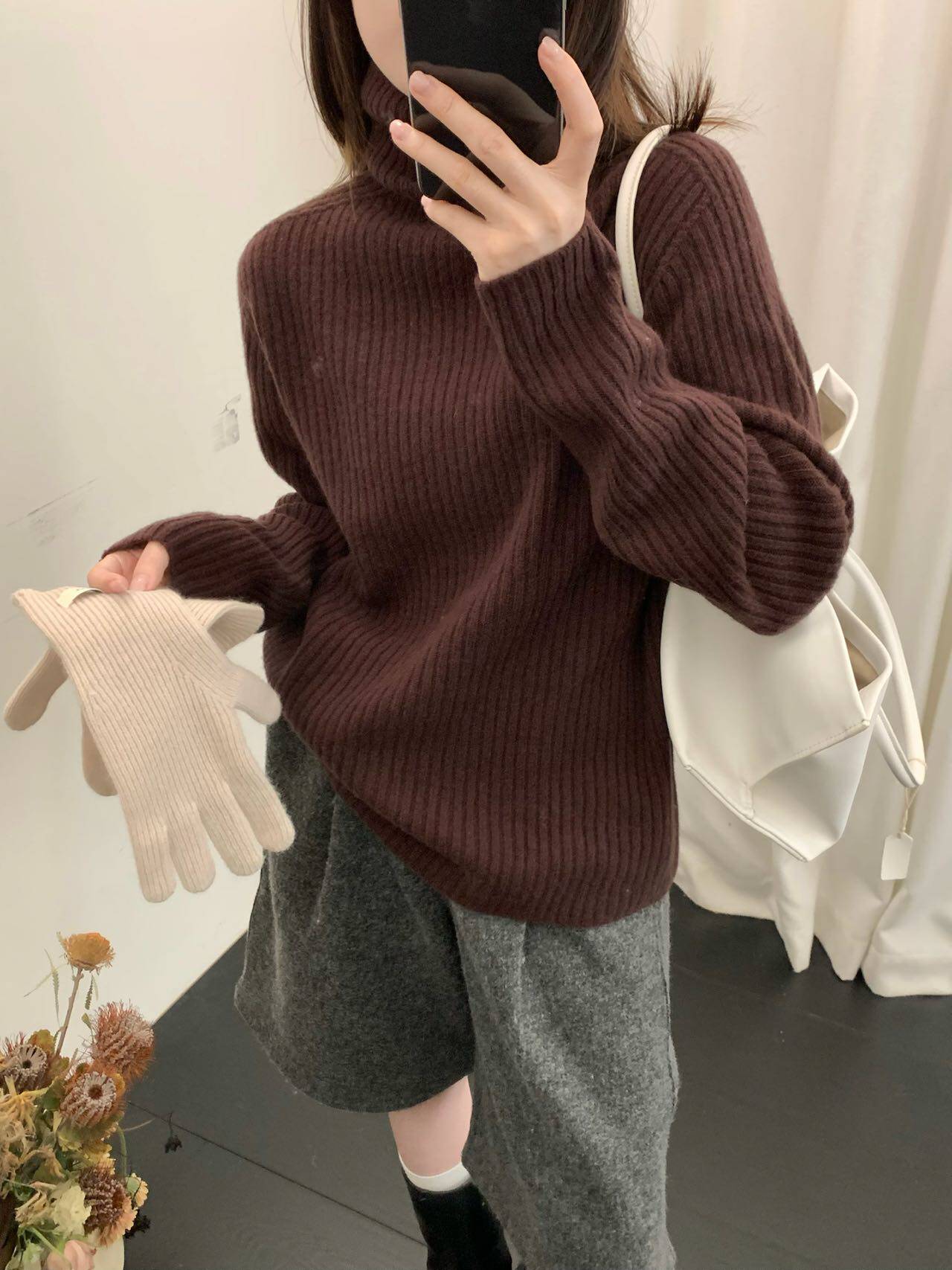 High-Quality Full Wool European Style 9806 Authentic Ribbed Turtleneck Sweater, Long-Sleeve Minimalist Versatile Slim-Fit Knit Base Shirt