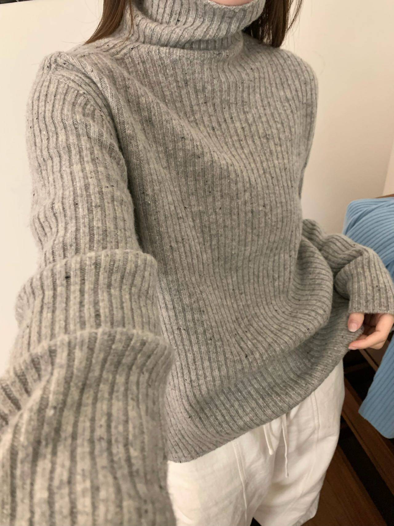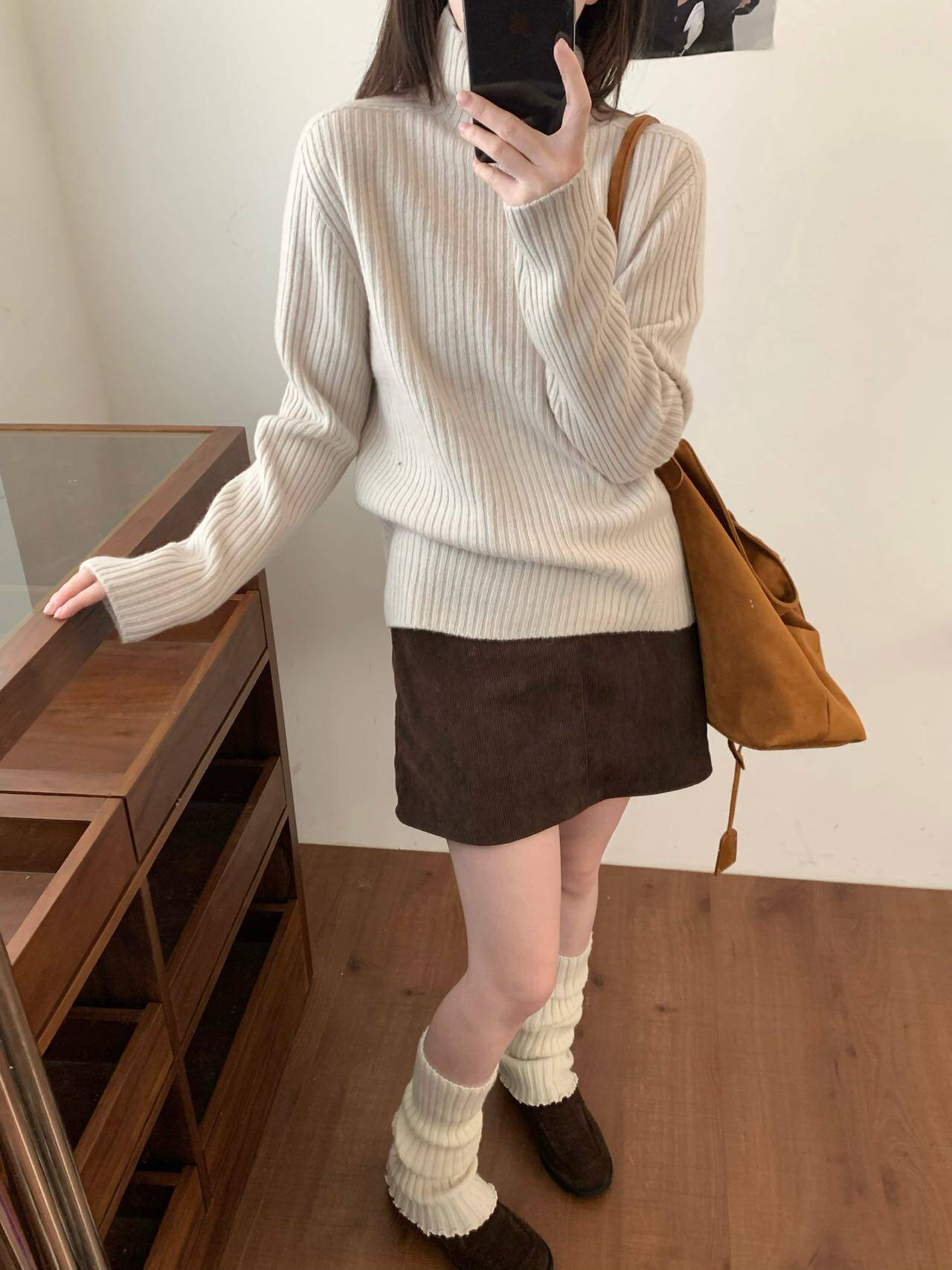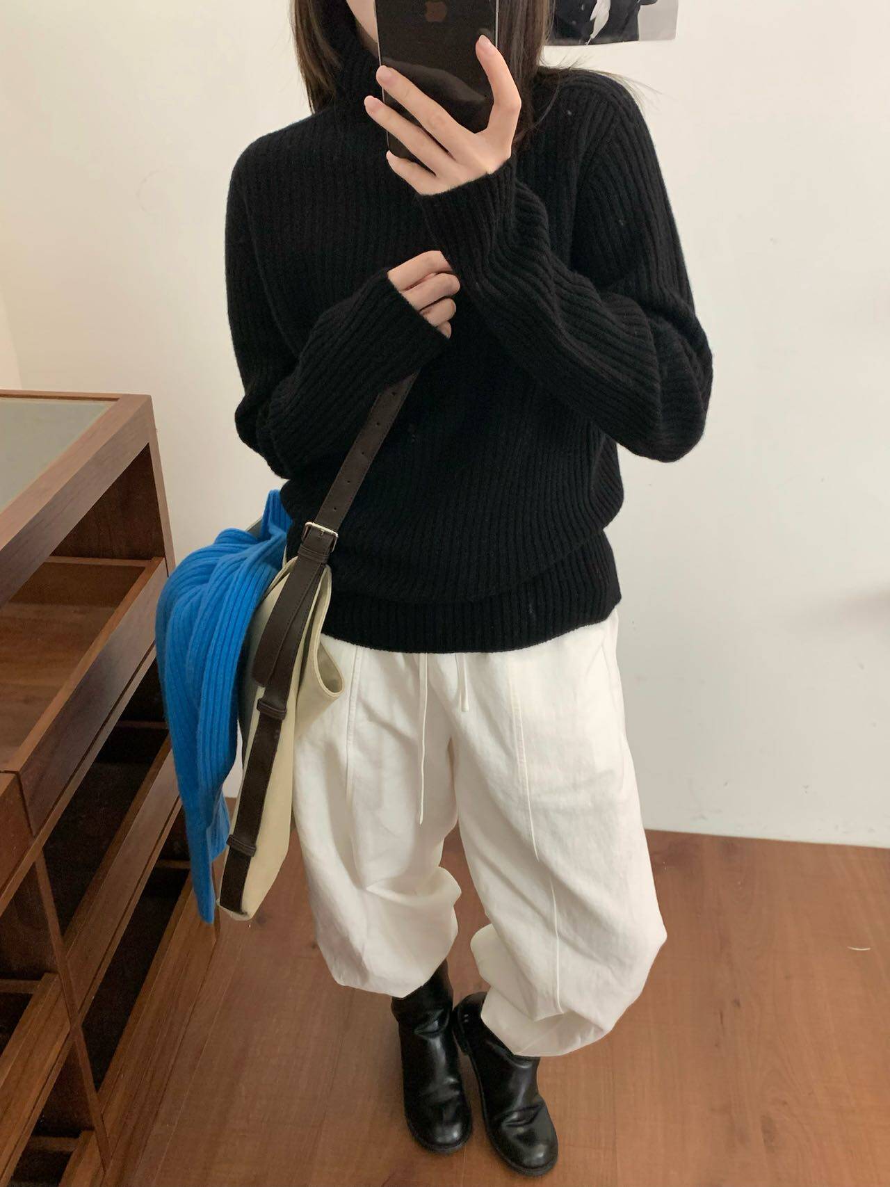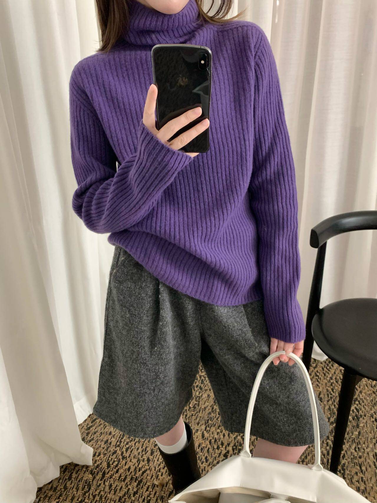 High-Quality Full Wool European Style 9806 Authentic Ribbed Turtleneck Sweater, Long-Sleeve Minimalist Versatile Slim-Fit Knit Base Shirt
