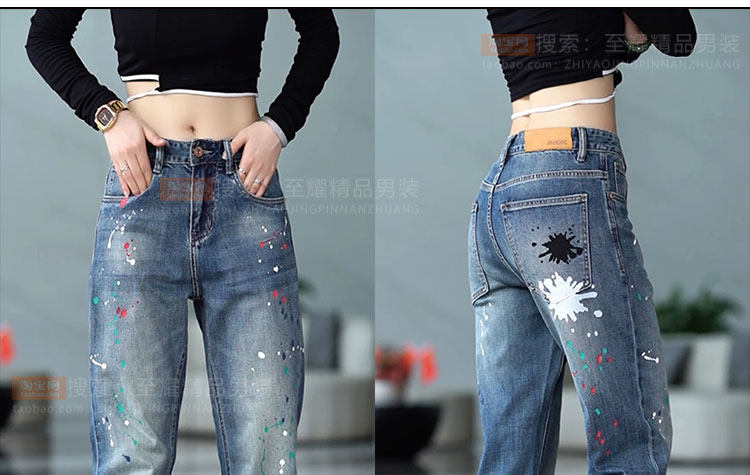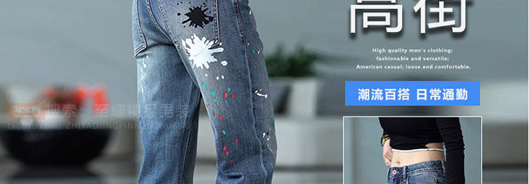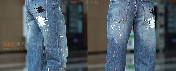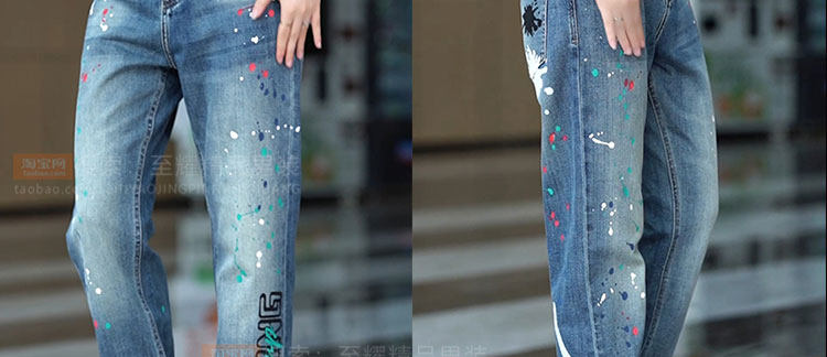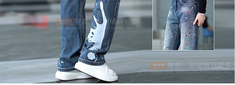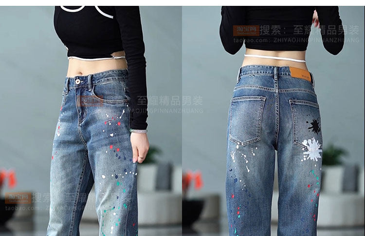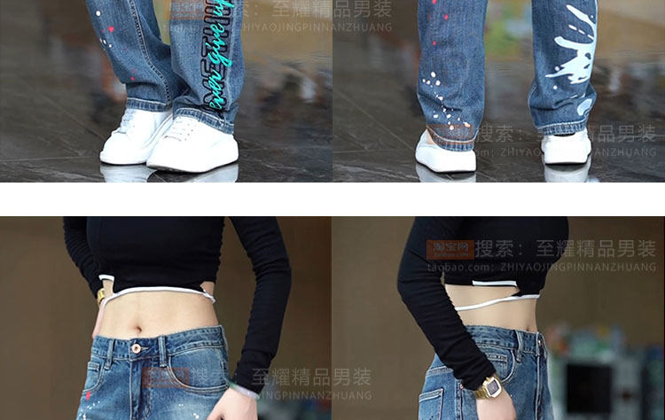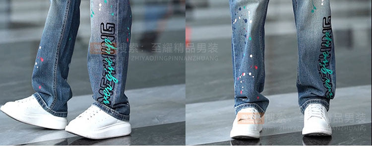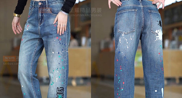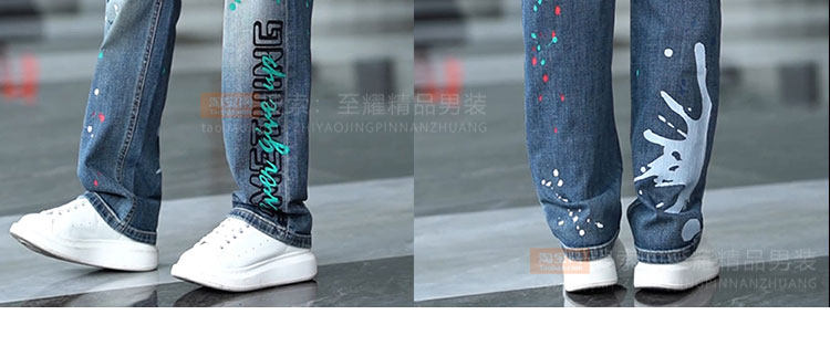 Splash-ink design niche jeans for men 2025 new American retro personalized paint dot loose straight long pants