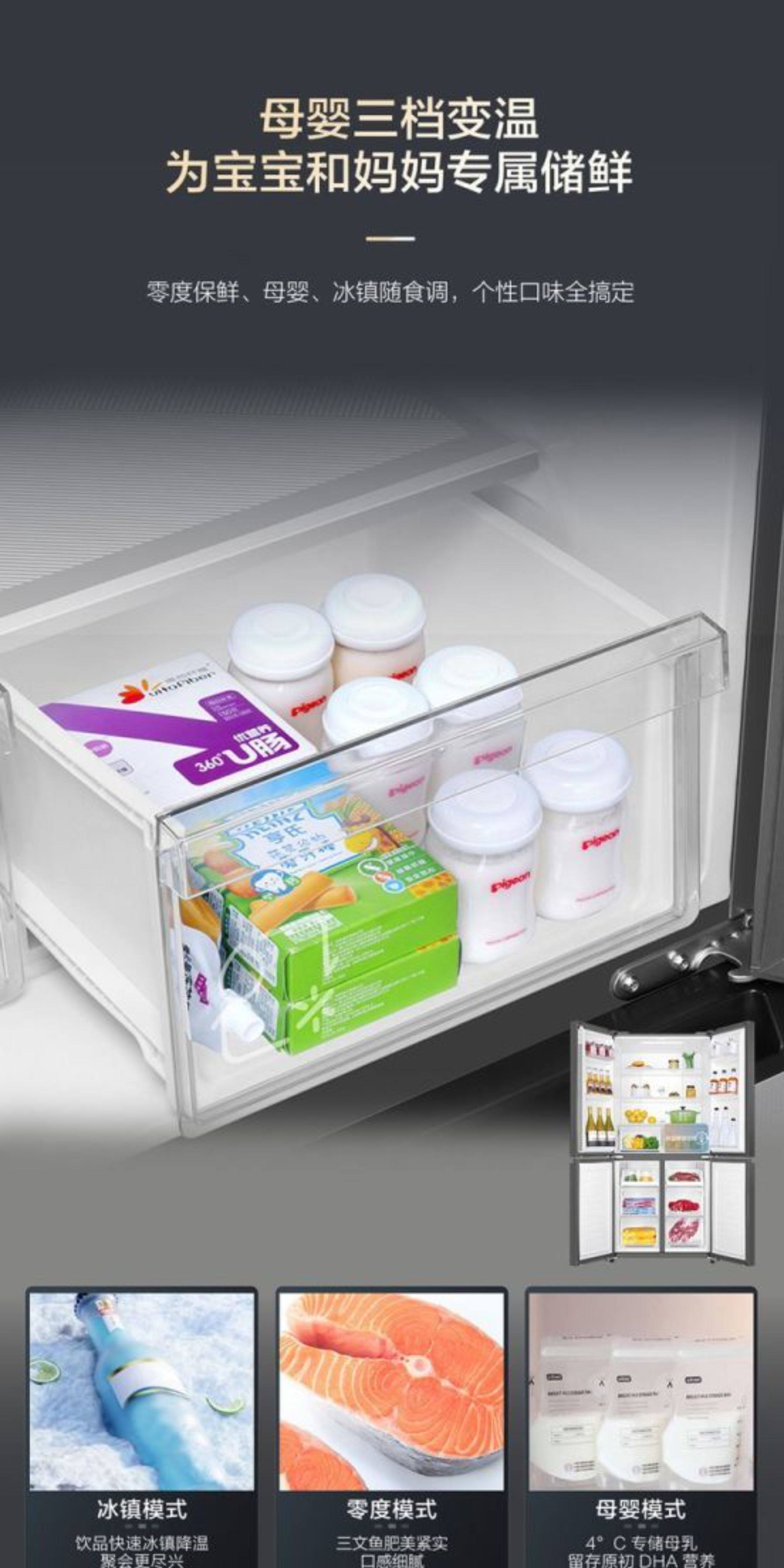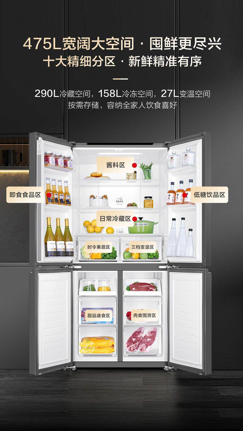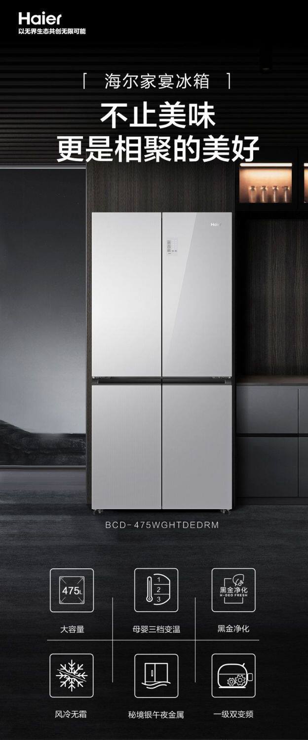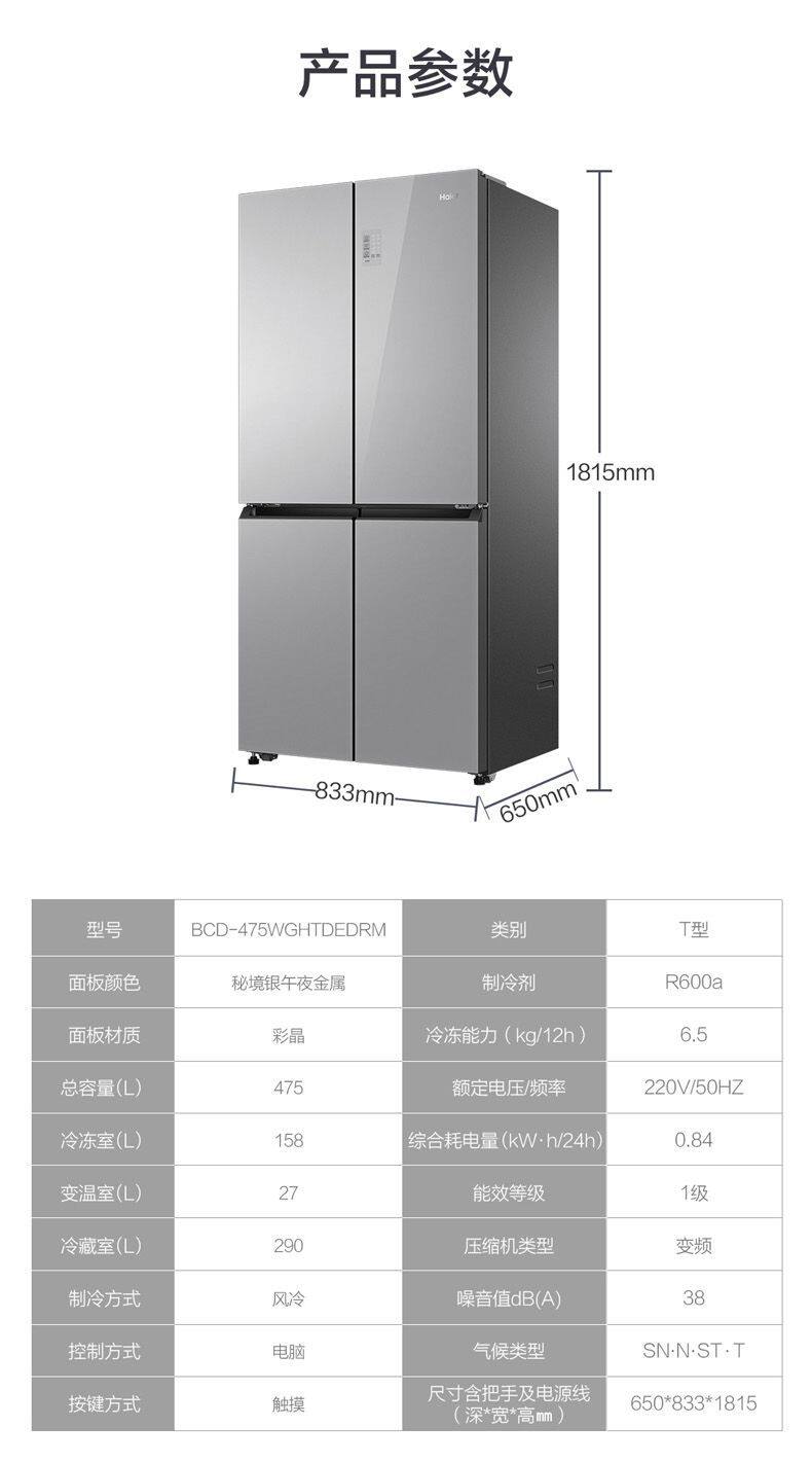 Haier Refrigerator Cross-Door Four-Door Household Color Crystal Tempered Glass First-Class Frost-Free Bcd-475Wghtdedrm